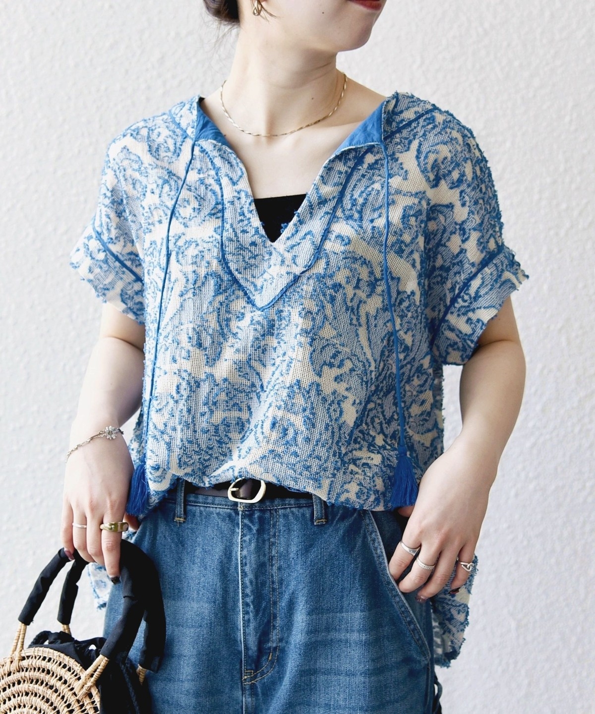 繊細なジャカード柄が特徴の、エスニックなムード漂うメッシュシリーズ。