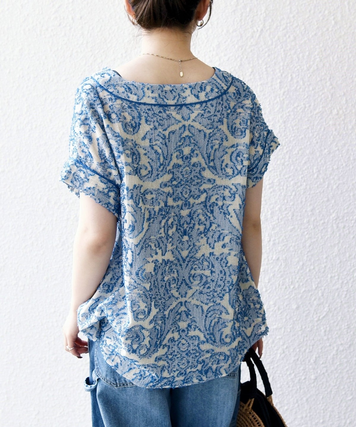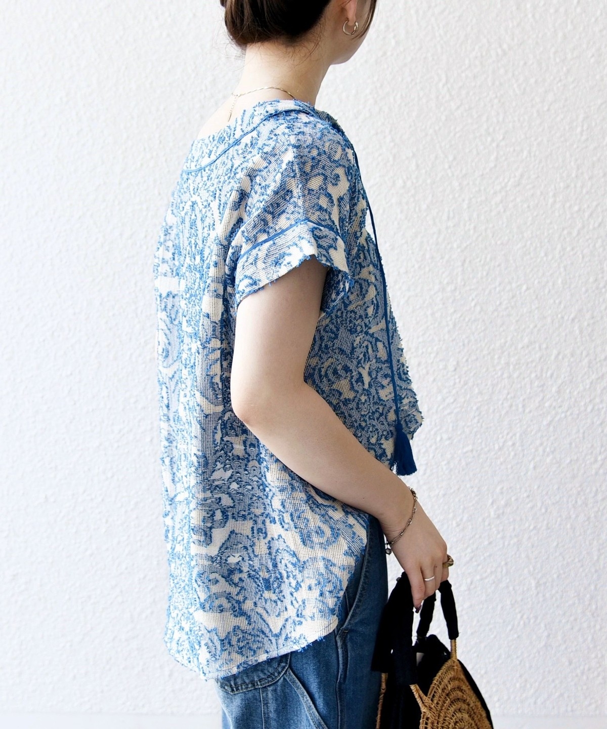 19. 《追加予約》SHIPS any:〈手洗い可能〉メッシュ ジャカード カフタン スキッパー ブラウス
