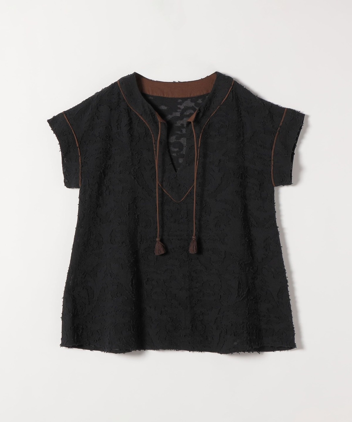 39. 《追加予約》SHIPS any:〈手洗い可能〉メッシュ ジャカード カフタン スキッパー ブラウス