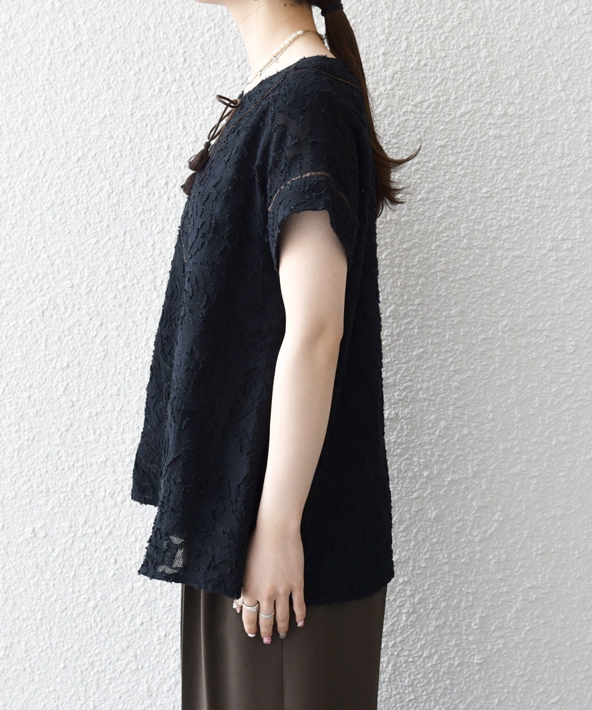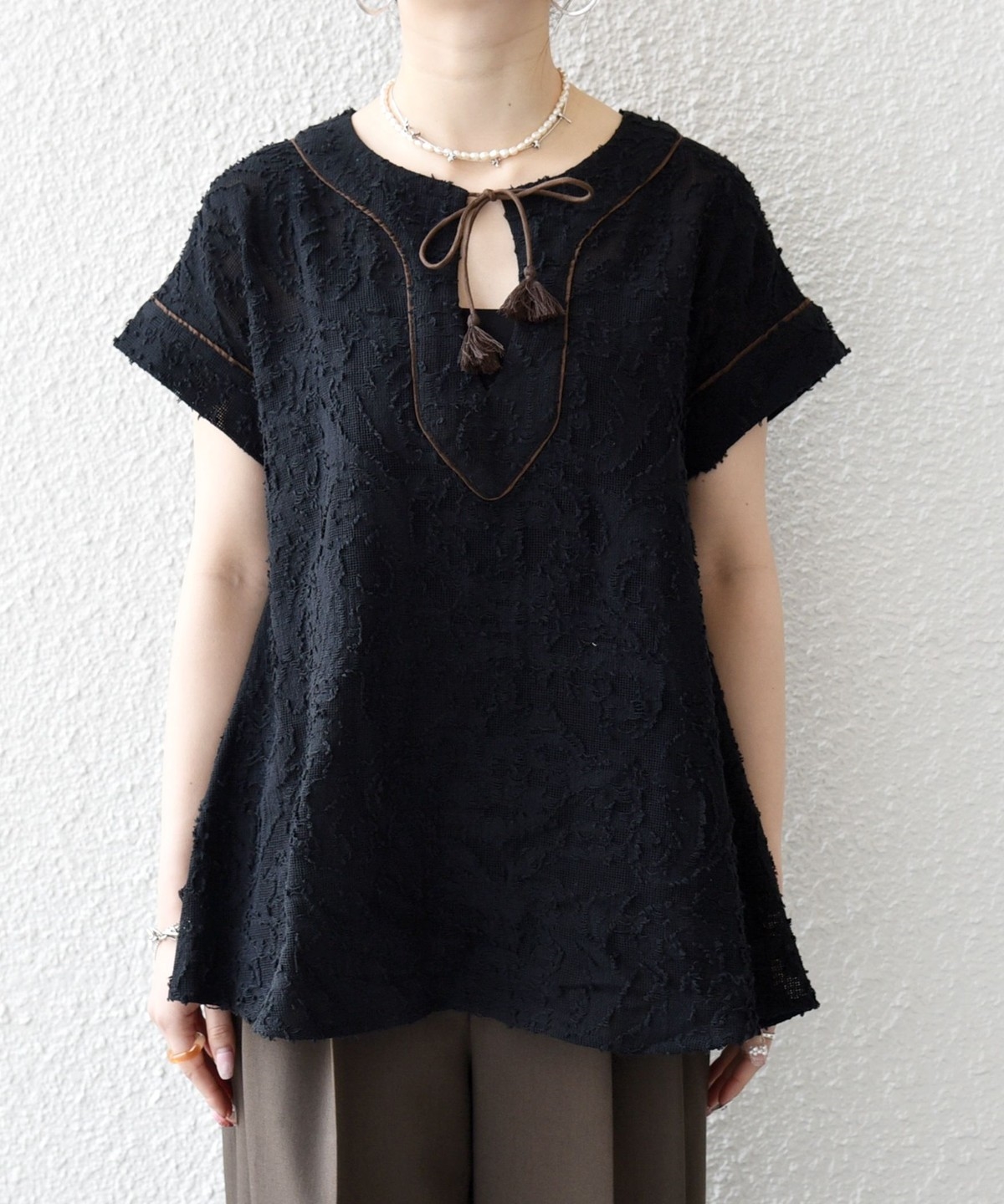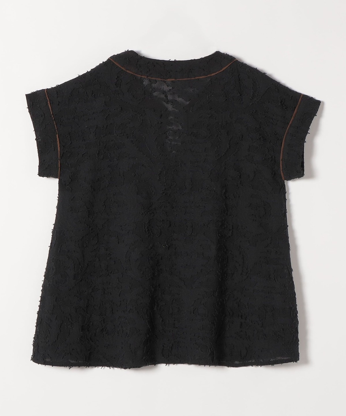 1. 《追加予約》SHIPS any:〈手洗い可能〉メッシュ ジャカード カフタン スキッパー ブラウス ブラック
