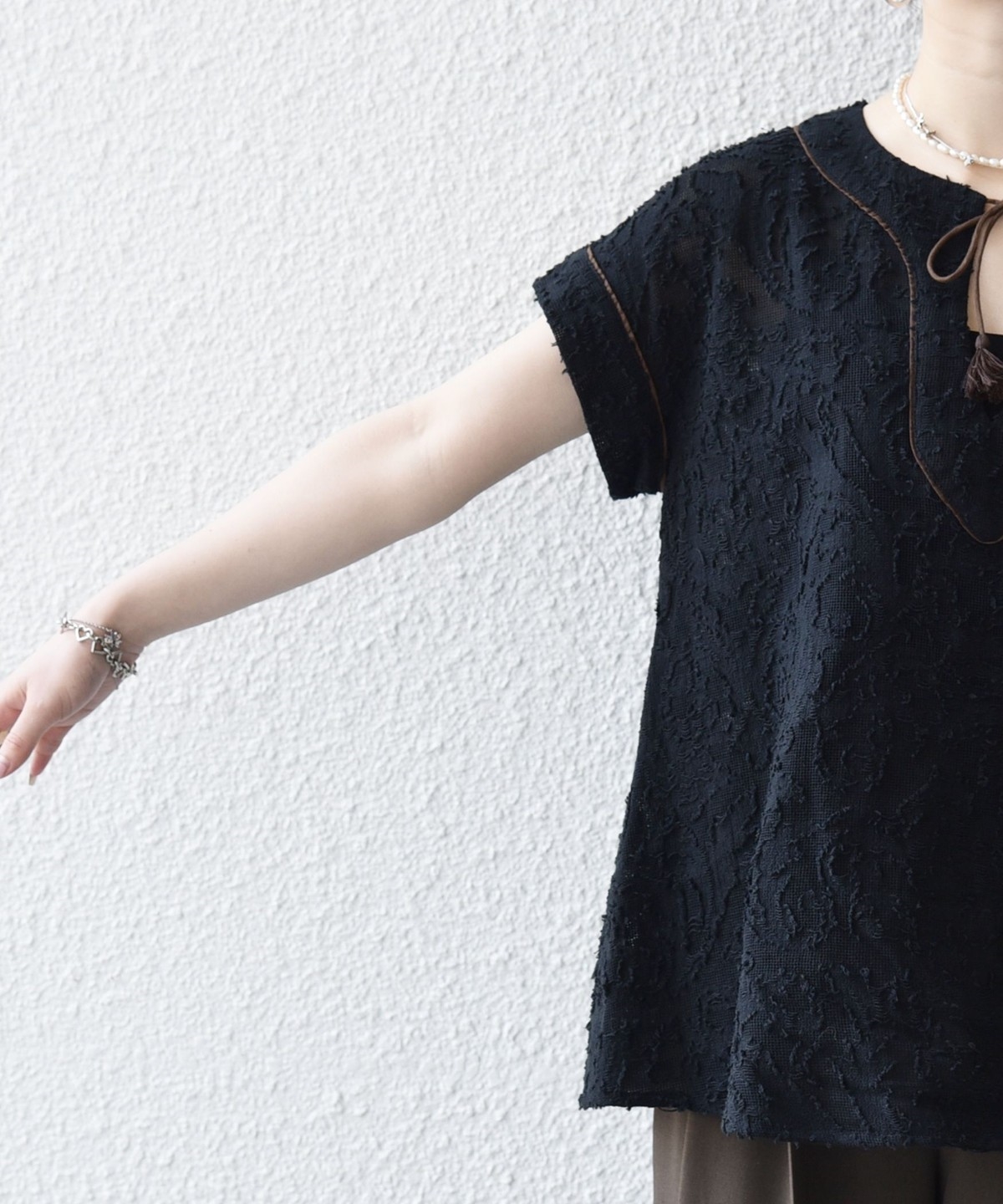 38. 《追加予約》SHIPS any:〈手洗い可能〉メッシュ ジャカード カフタン スキッパー ブラウス