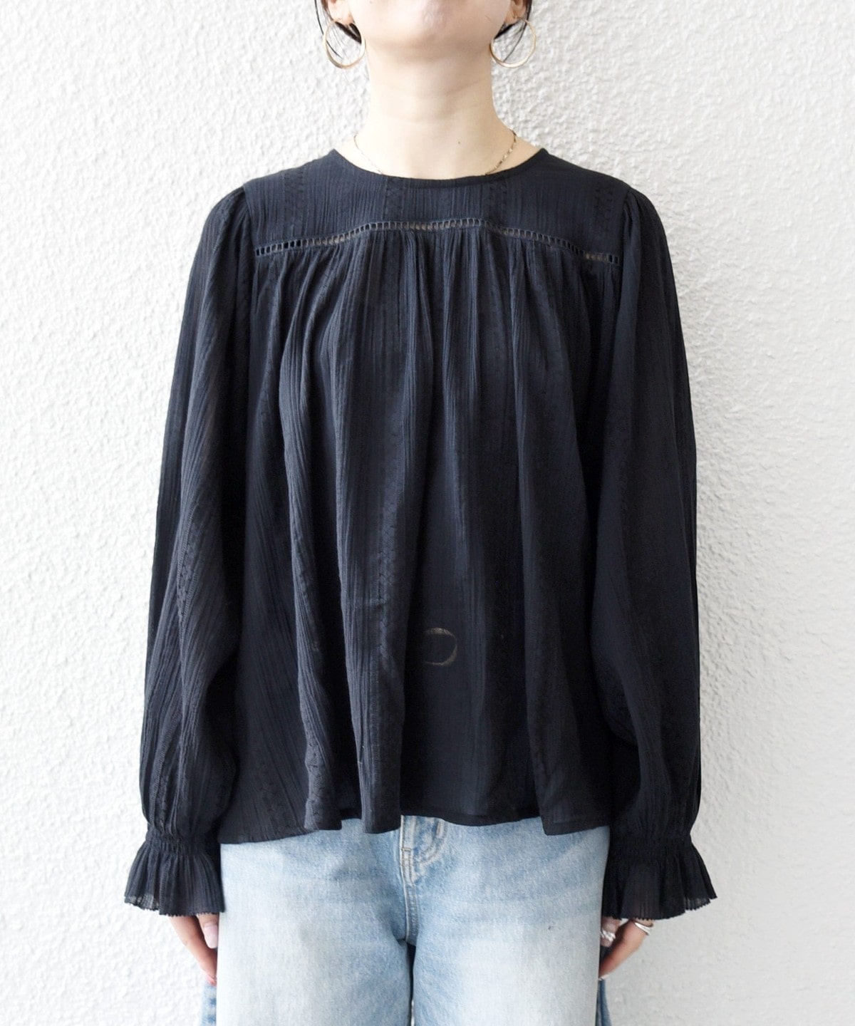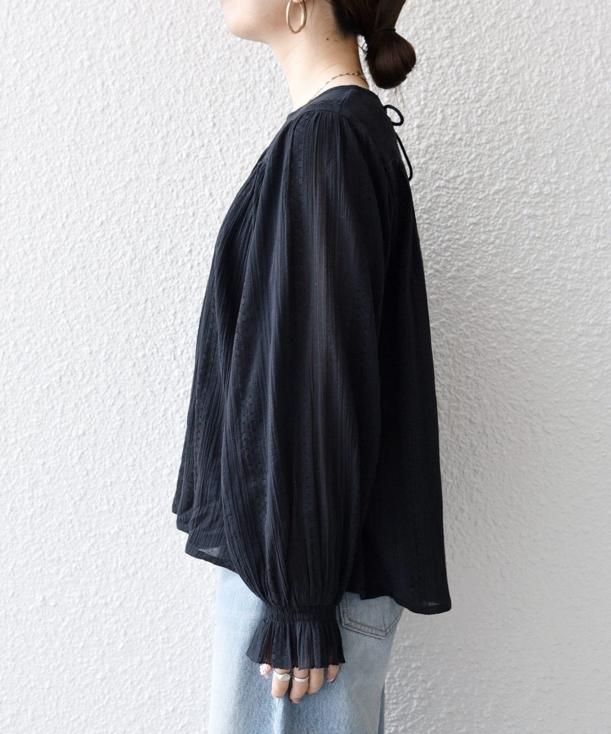 袖口はゴム仕様で、たくし上げると程よいボリュームが生まれ、女性らしい着こなしが楽しめます。