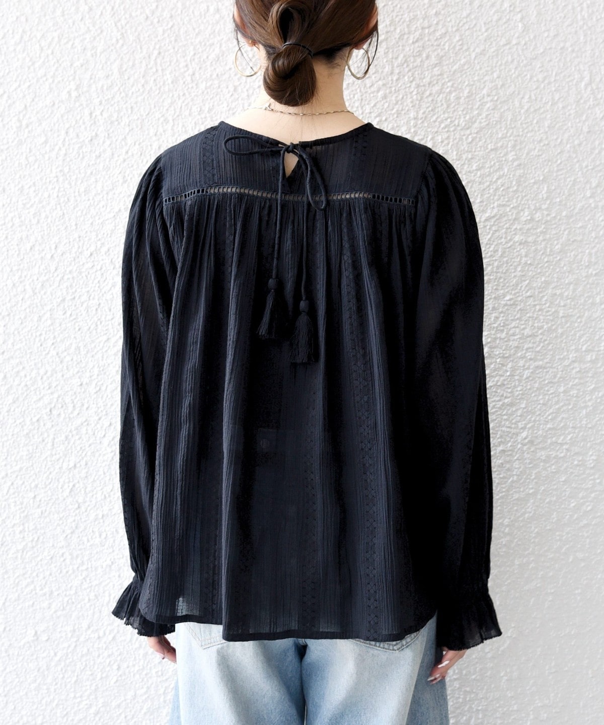 《予約》SHIPS any:〈洗濯機可能〉コットン ミックス ハシゴ レース ギャザー ブラウス