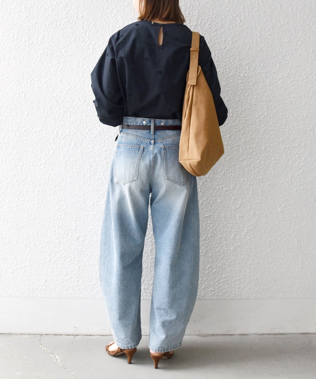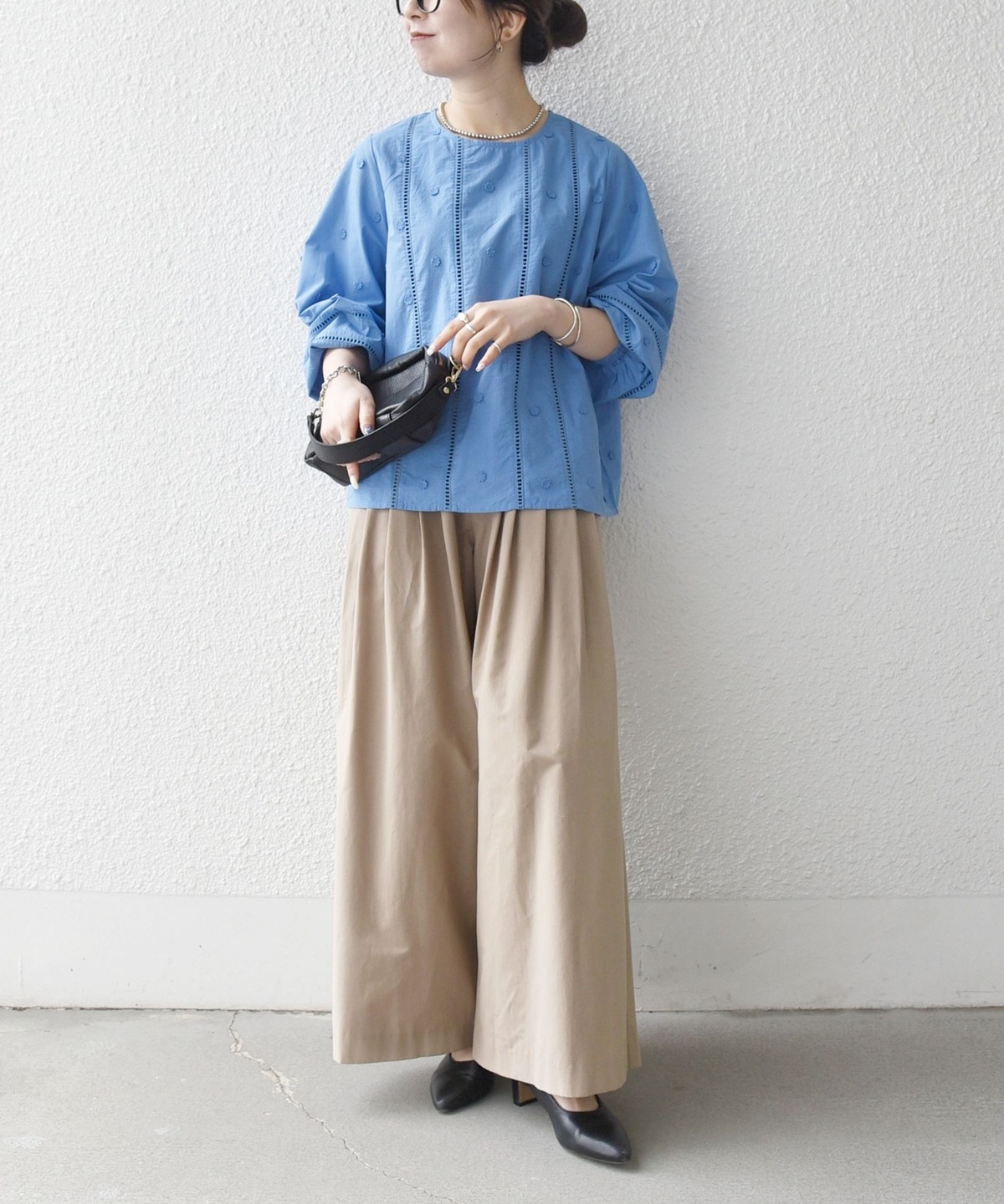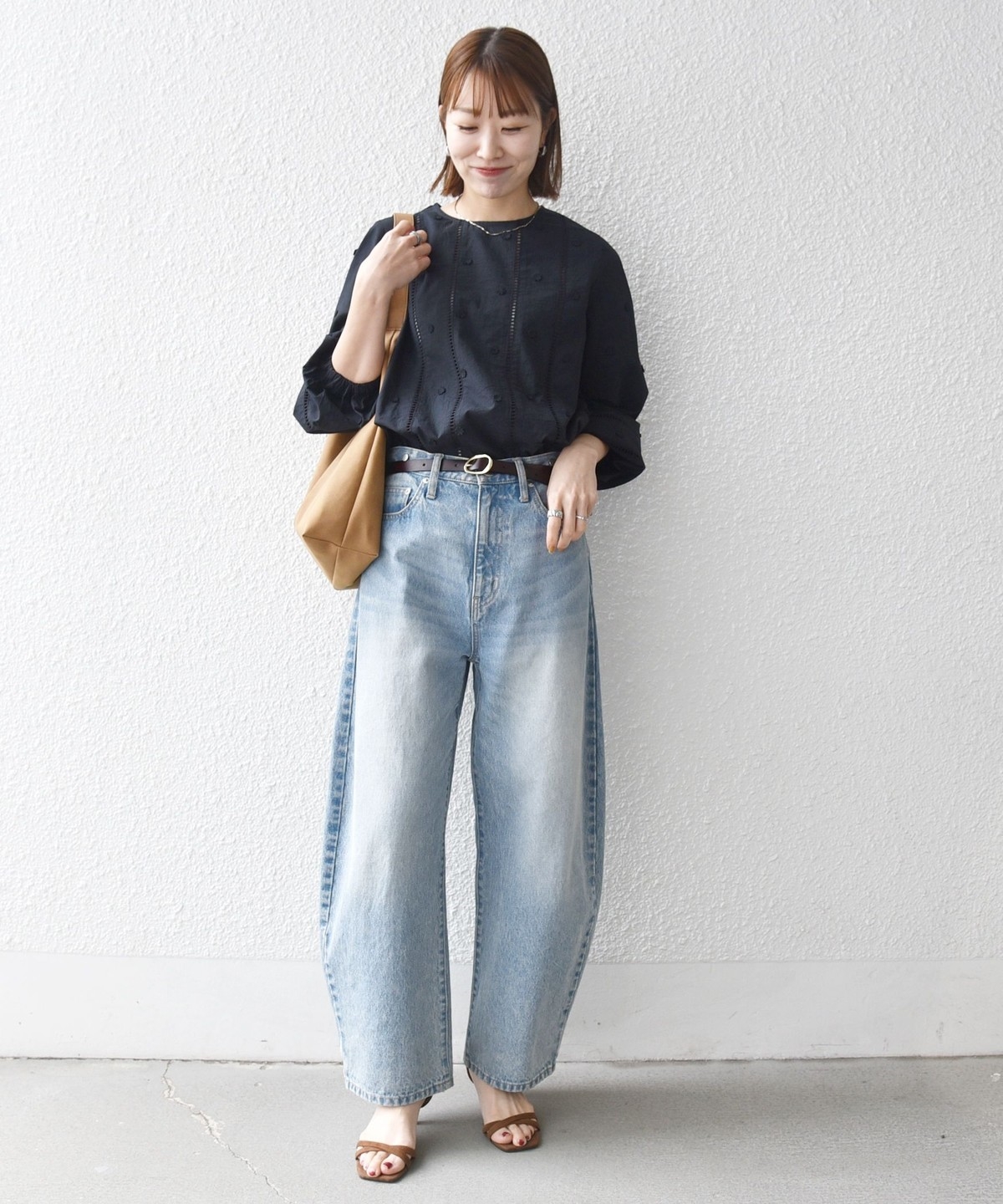 大人フェミニンな印象のアイテムなので、デニムやチノパンなどカジュアルなパンツと好相性。