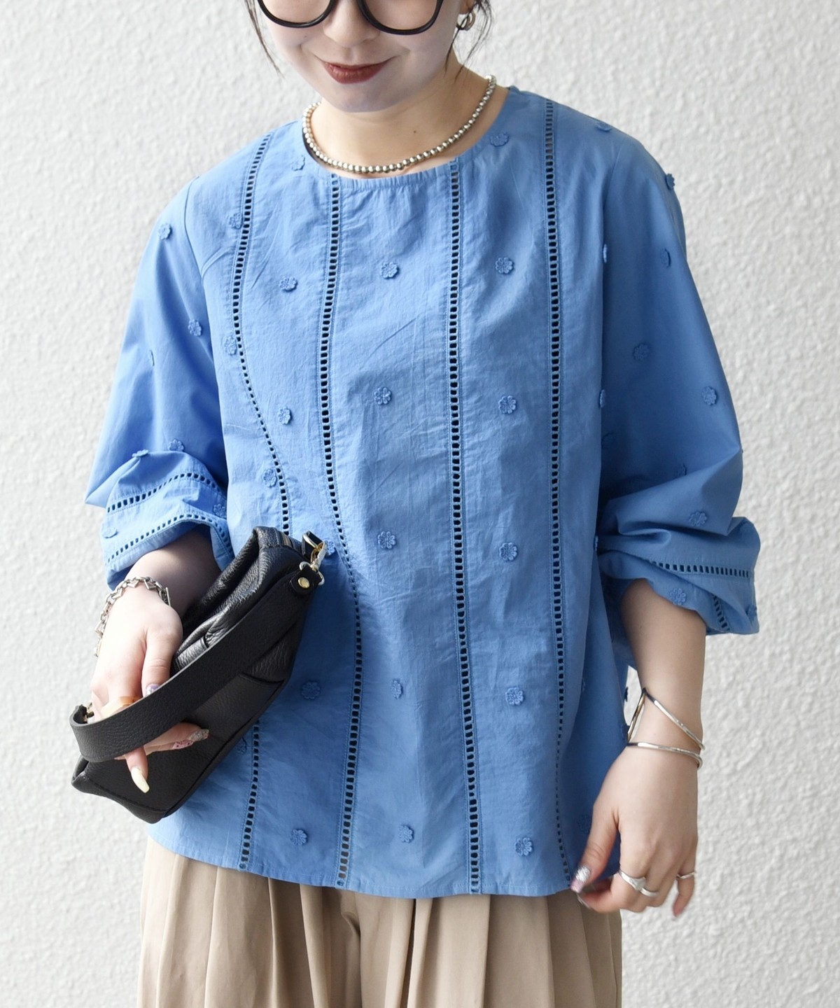 《予約》【WEB限定】SHIPS any:〈洗濯機可能〉フラワー モチーフ ハシゴレース クルーネック ブラウス 2