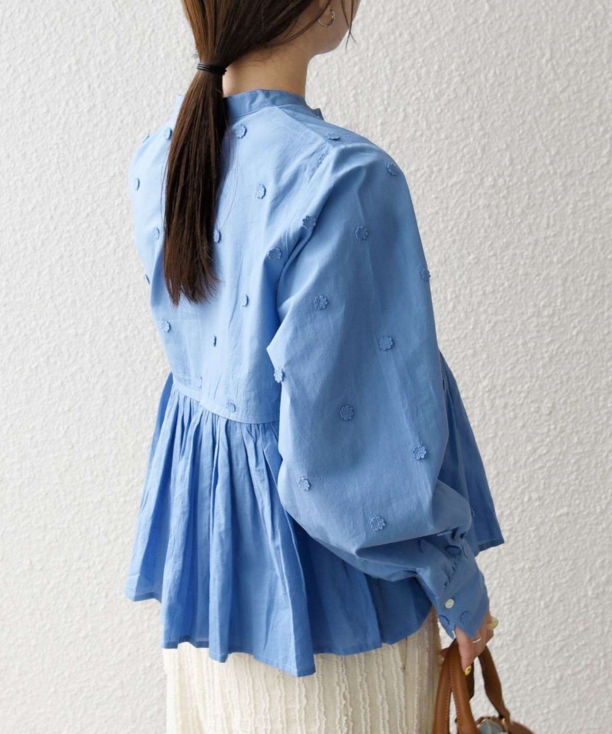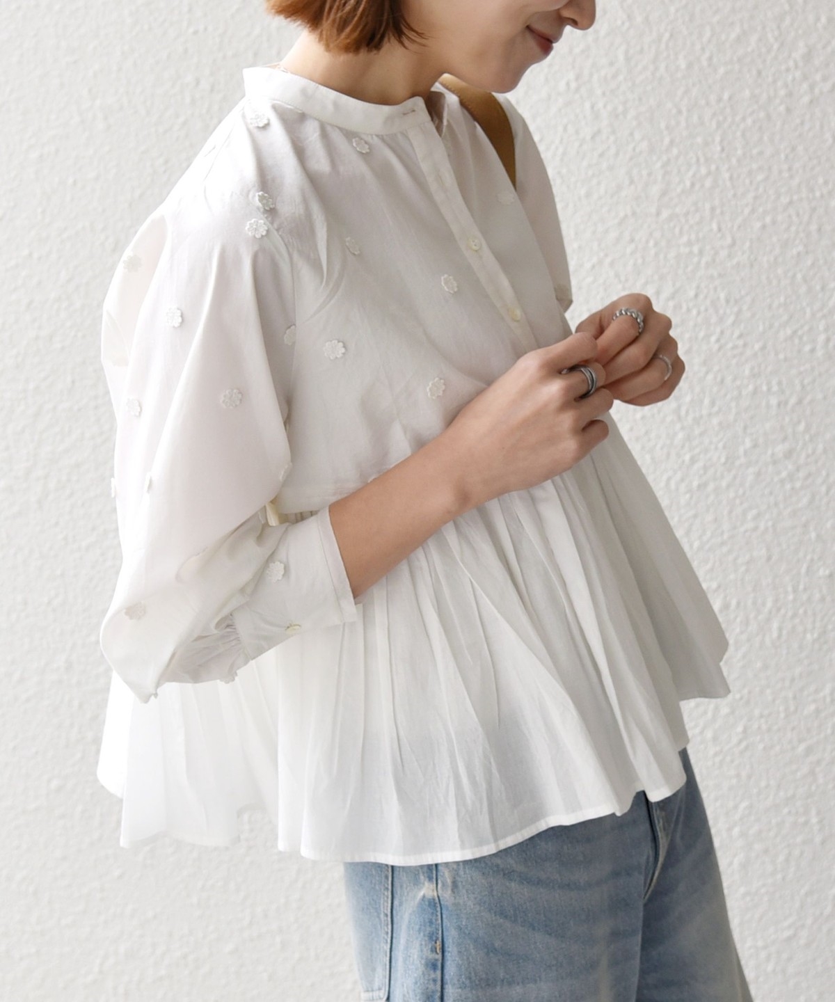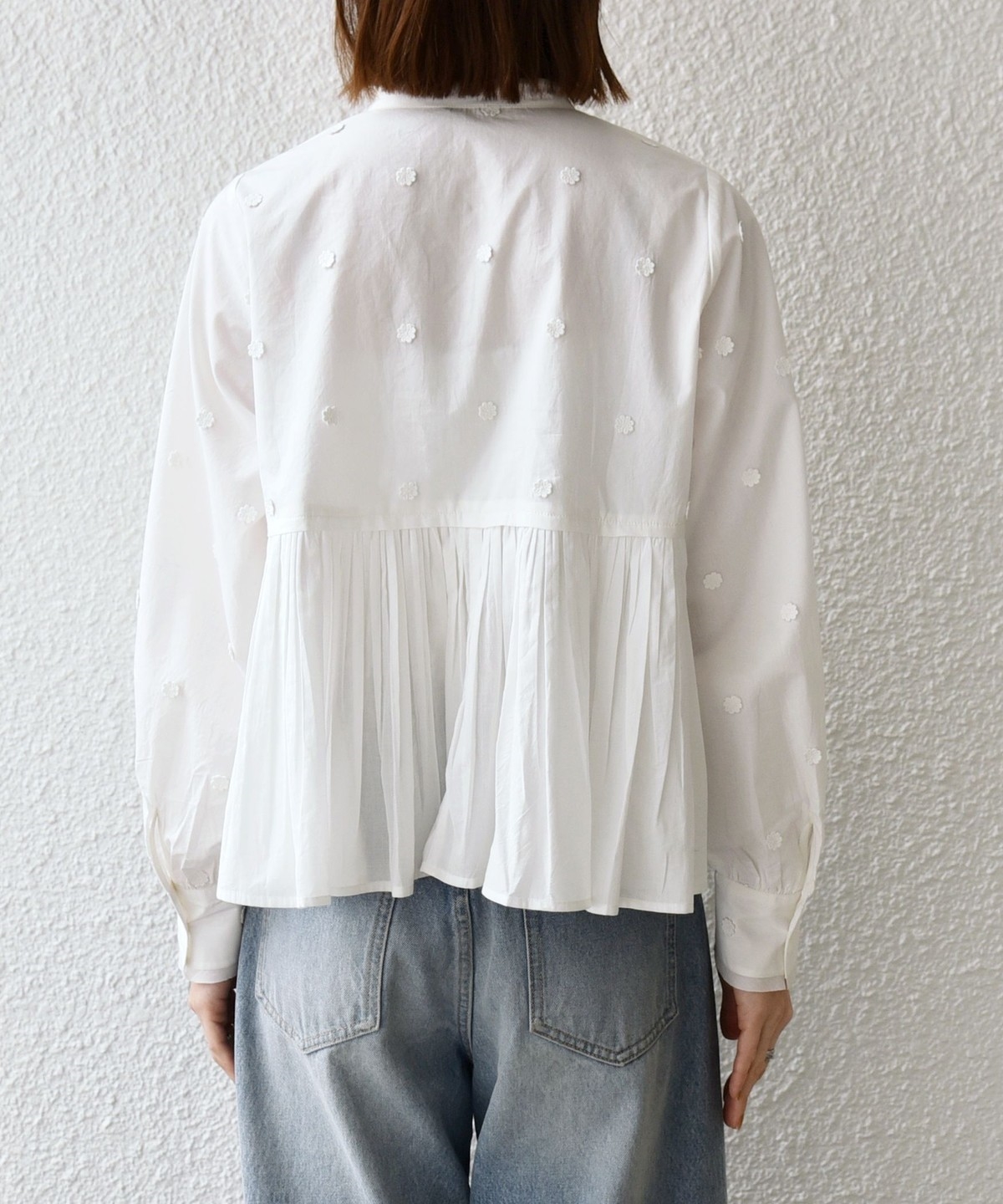《予約》【WEB限定】SHIPS any:〈洗濯機可能〉フラワー モチーフ ペプラム ギャザー シャツ ブラウス