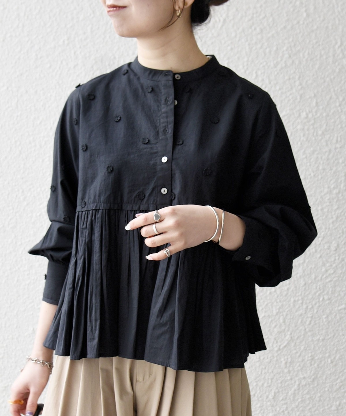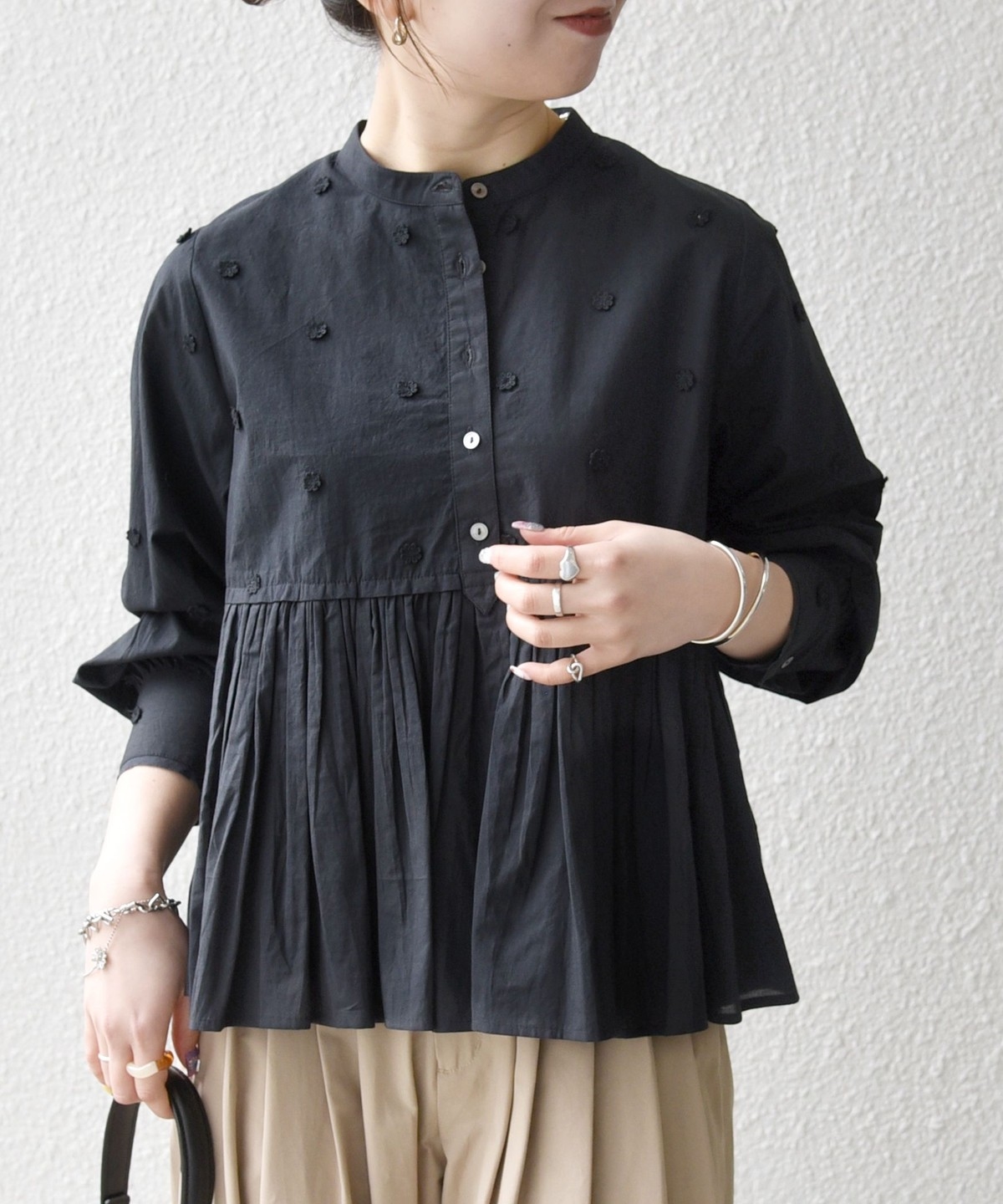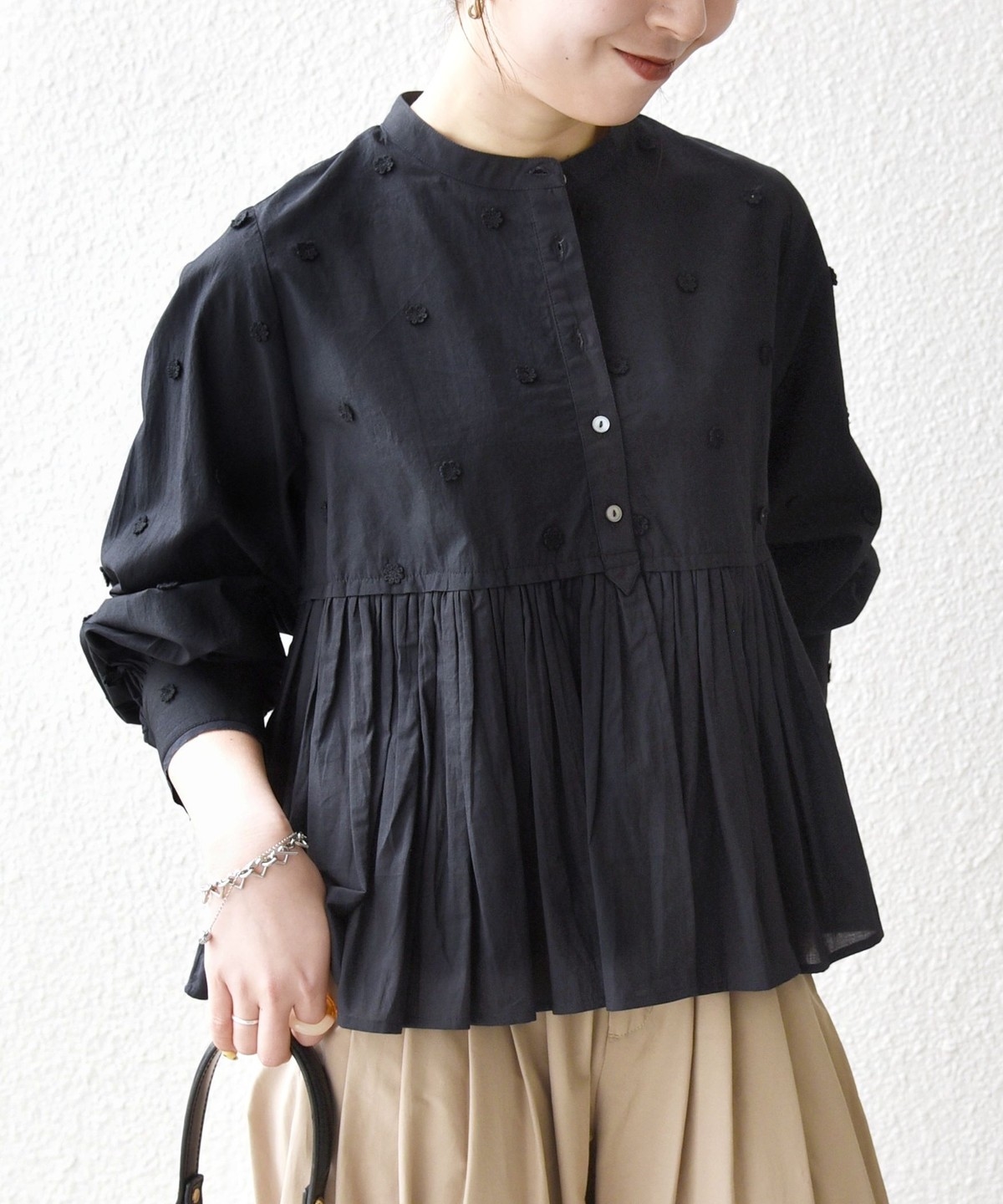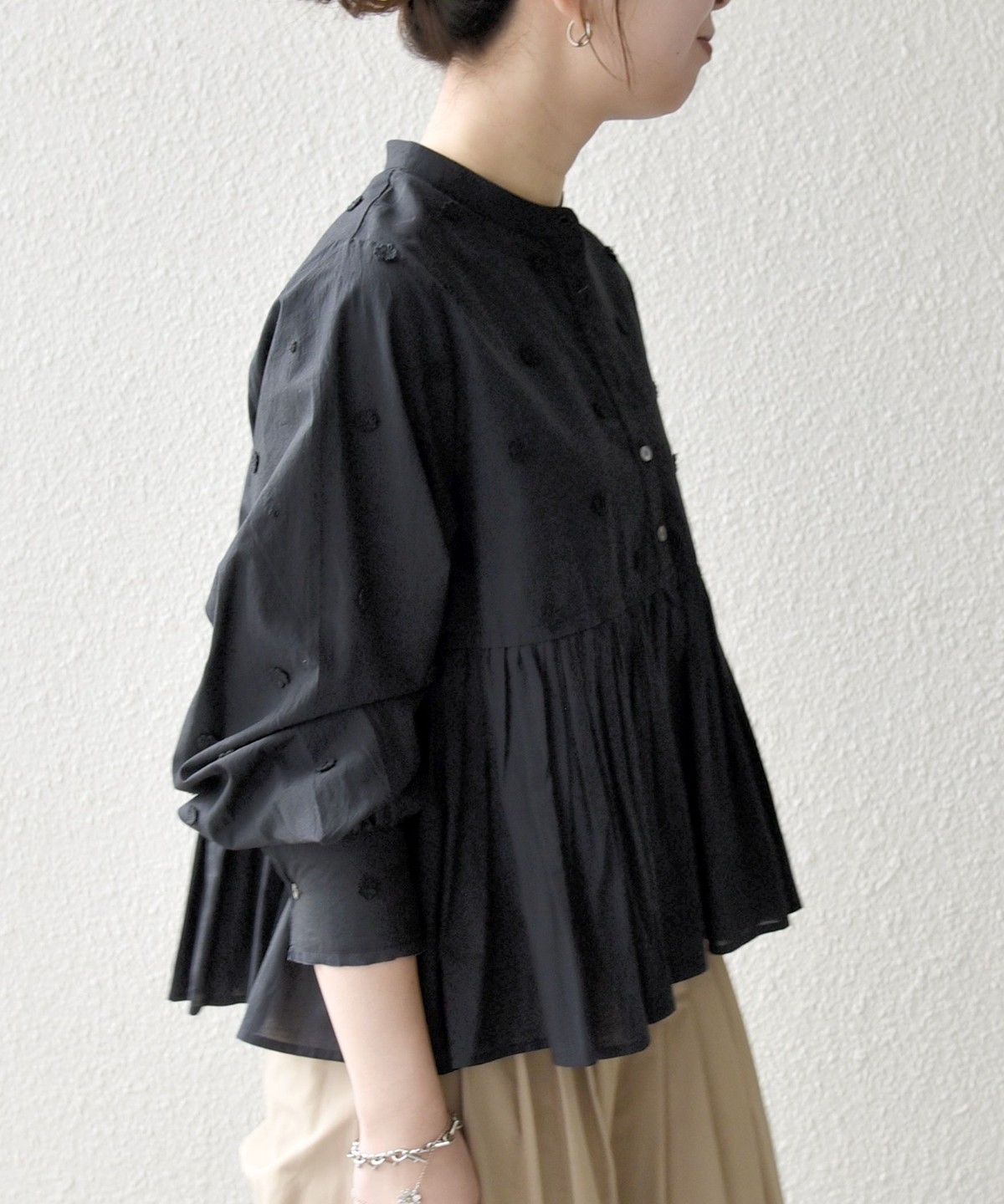 《予約》【WEB限定】SHIPS any:〈洗濯機可能〉フラワー モチーフ ペプラム ギャザー シャツ ブラウス