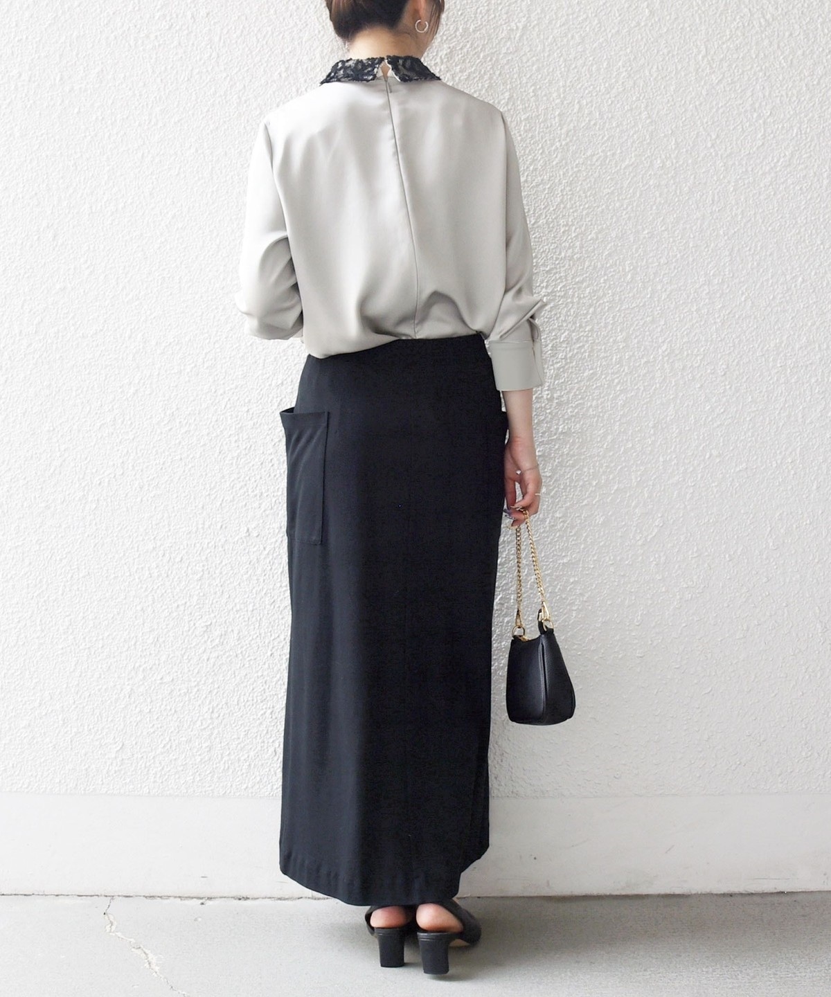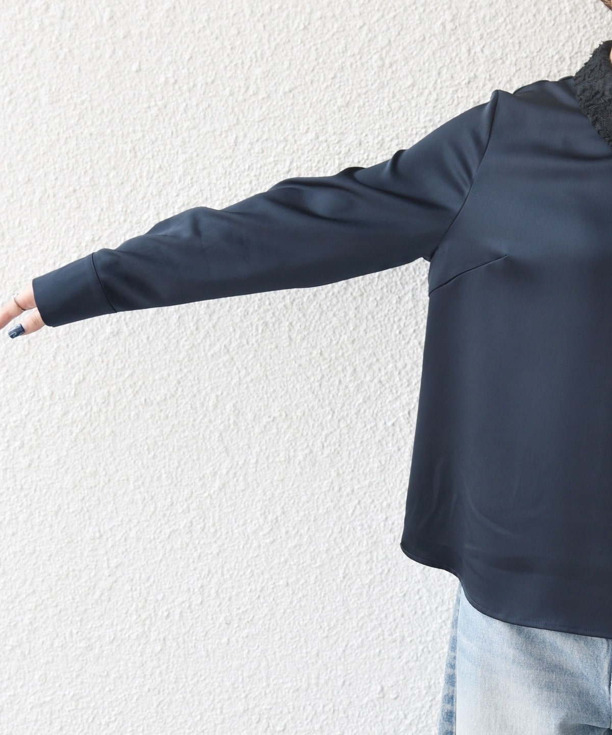 身体に張り付きすぎない、程よいハリと厚みのあるサテン素材を使用。