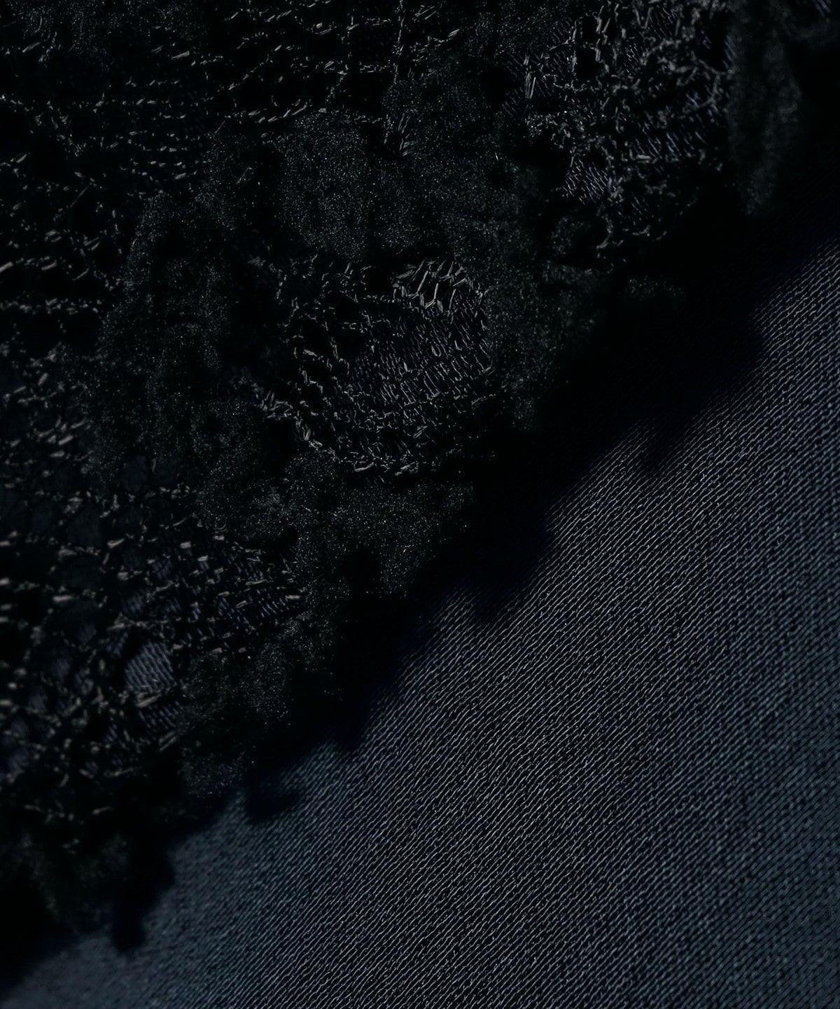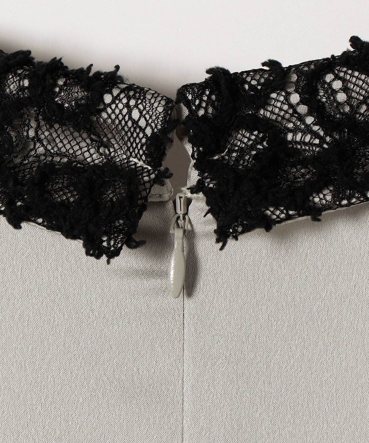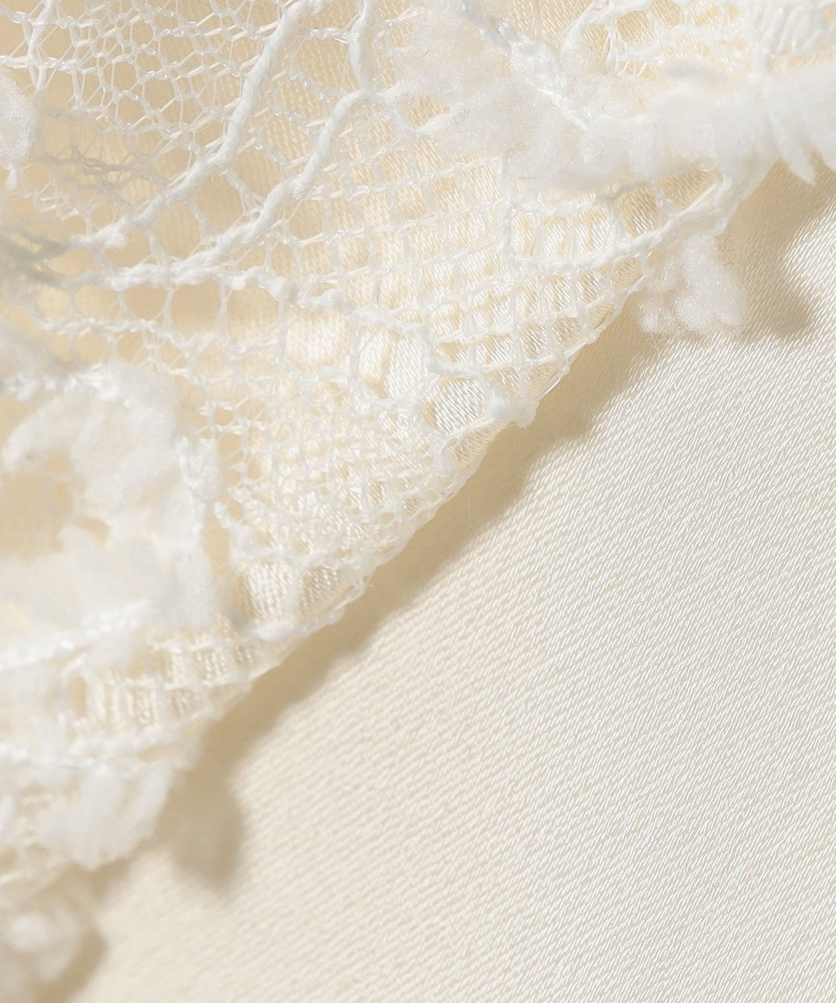 襟元にあしらったレースが顔まわりを華やかに彩り、フェミニンな印象を演出◎