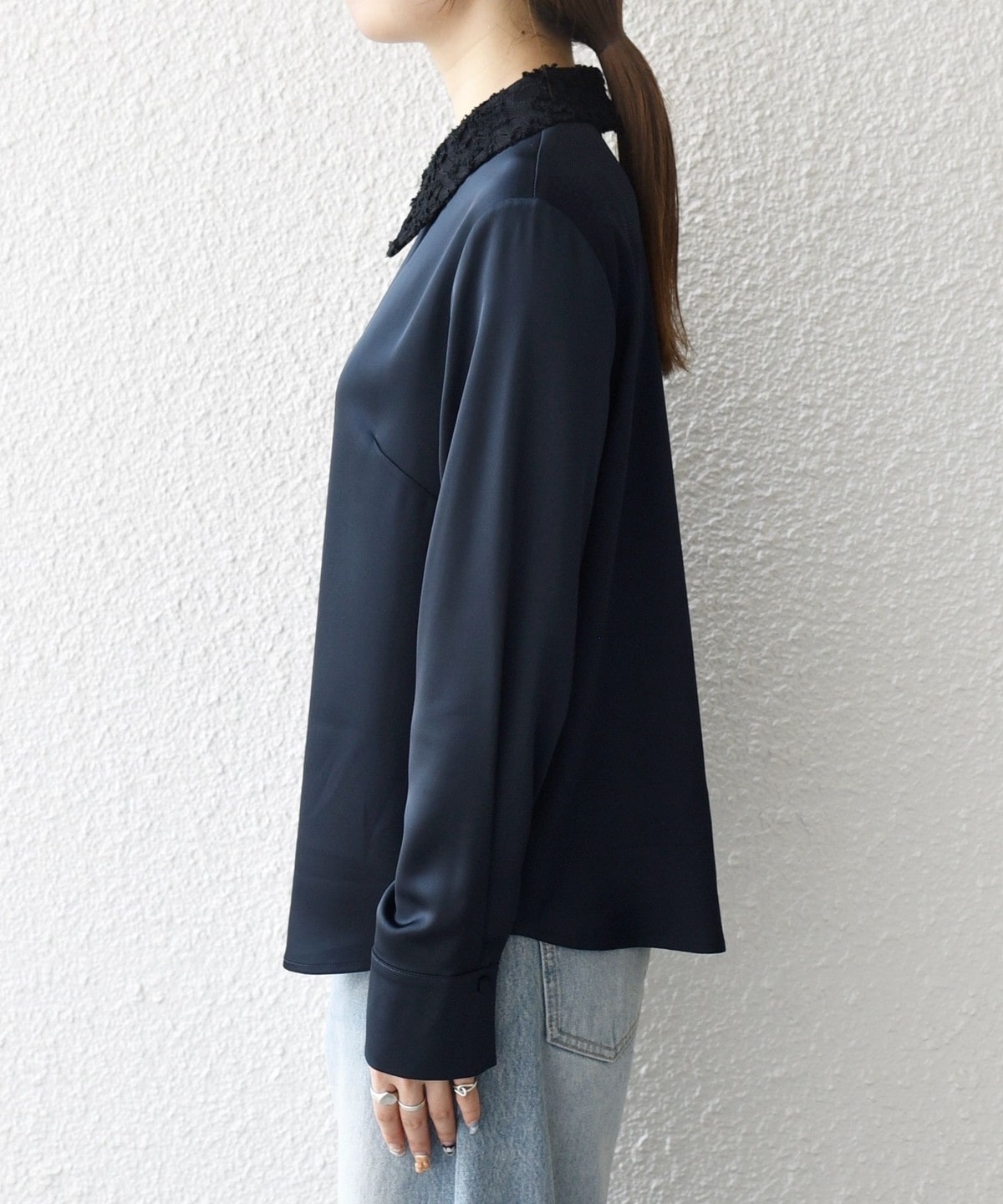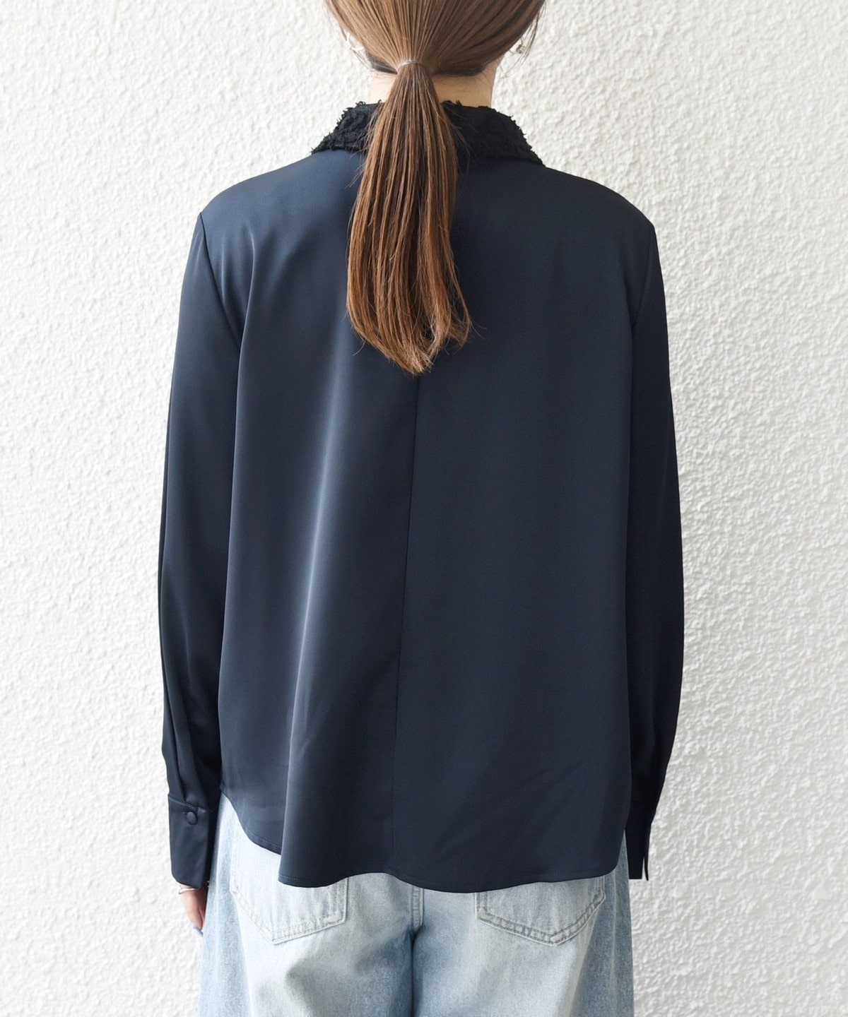 5. 《一部追加予約》SHIPS any:〈洗濯機可能〉サテン レースカラー ブラウス