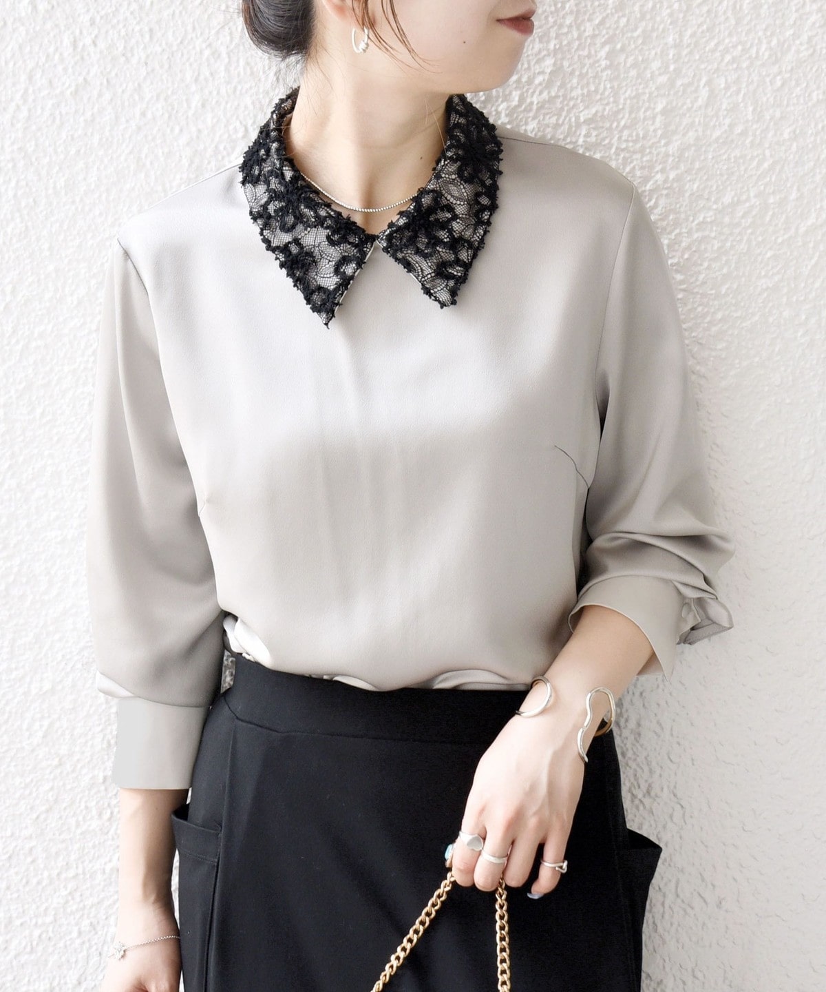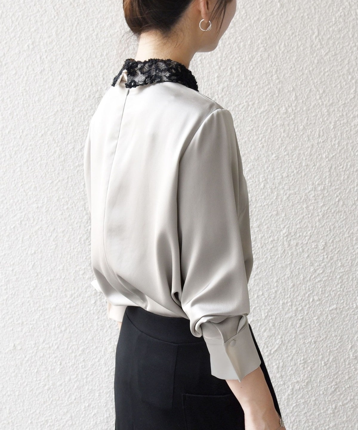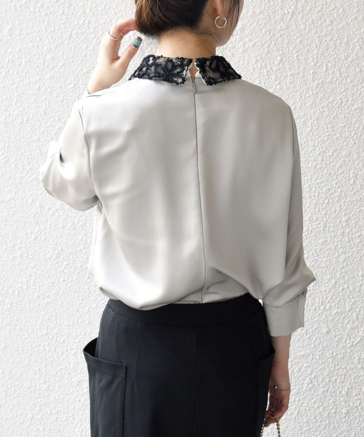 2. 《一部追加予約》SHIPS any:〈洗濯機可能〉サテン レースカラー ブラウス ライトグレー