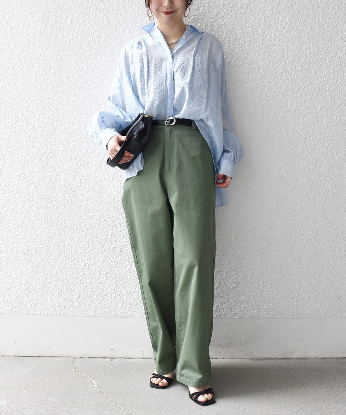 インナーにキャミソールやタンクトップを入れ、素材の透け感を活かした軽やかなスタイリングがオススメ。