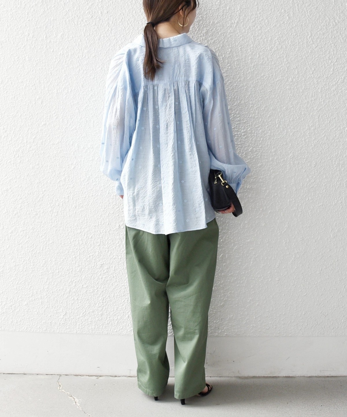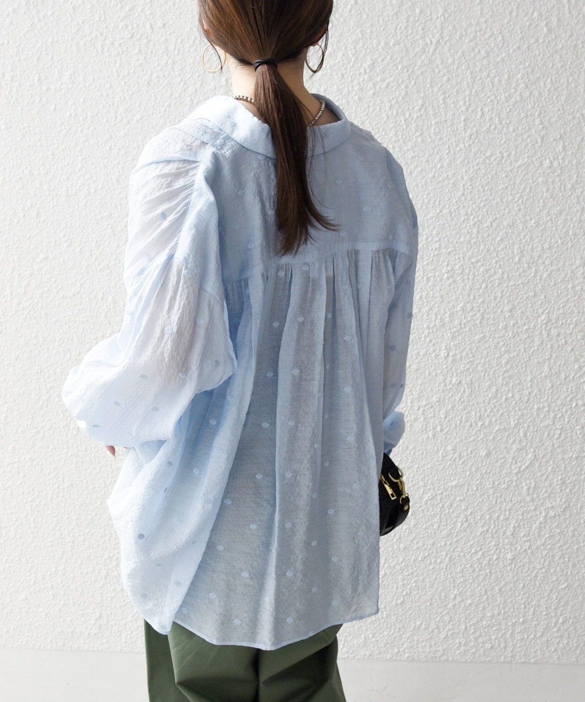 1. 《追加予約》【WEB限定】SHIPS any:〈手洗い可能〉シアー ドット レギュラーカラー ギャザー シャツ ライトブルー