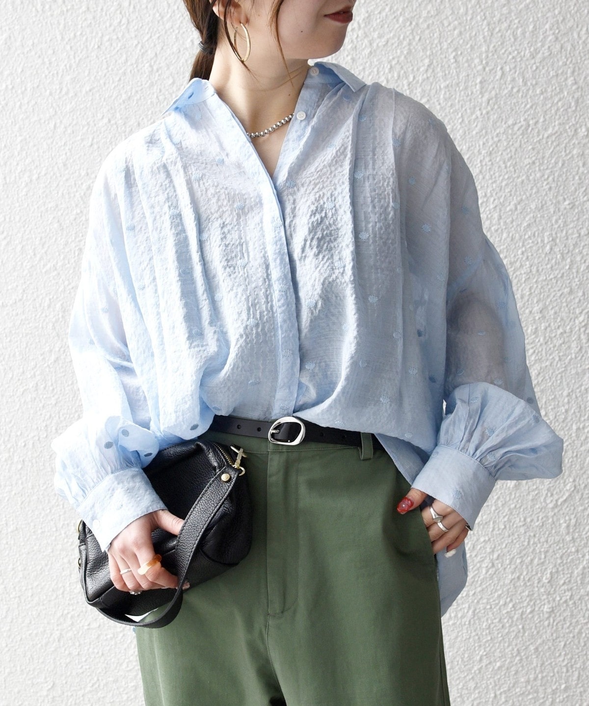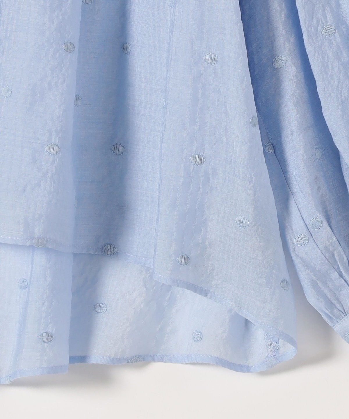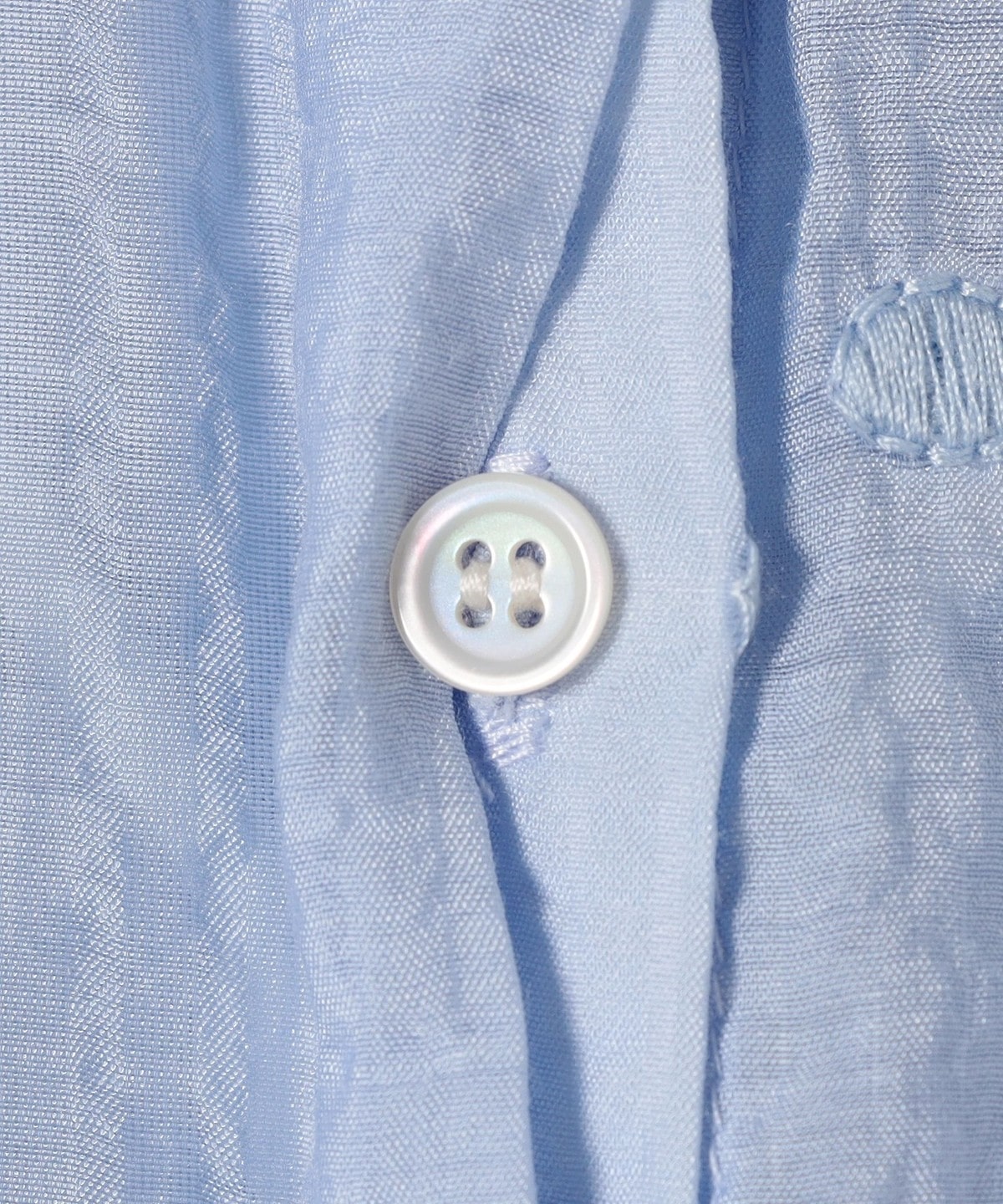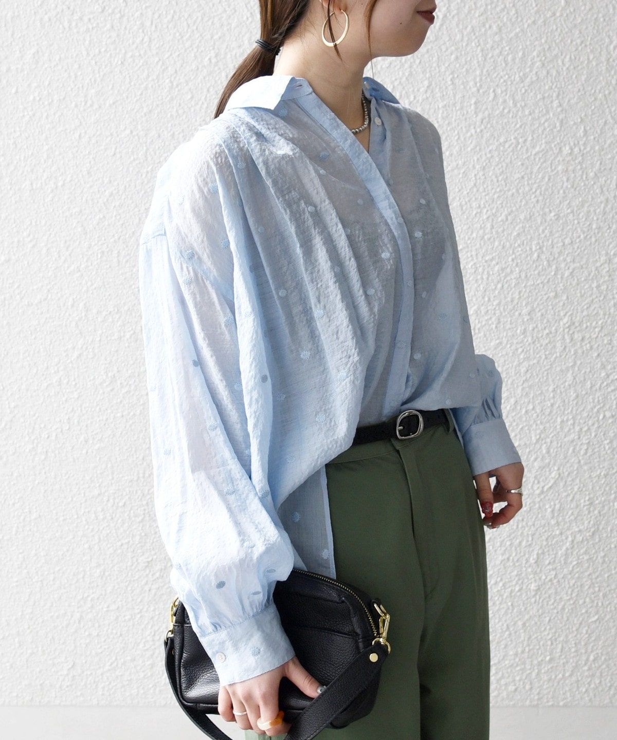 ドット柄の刺繍がポイントの生地を使用したシアーシャツ。