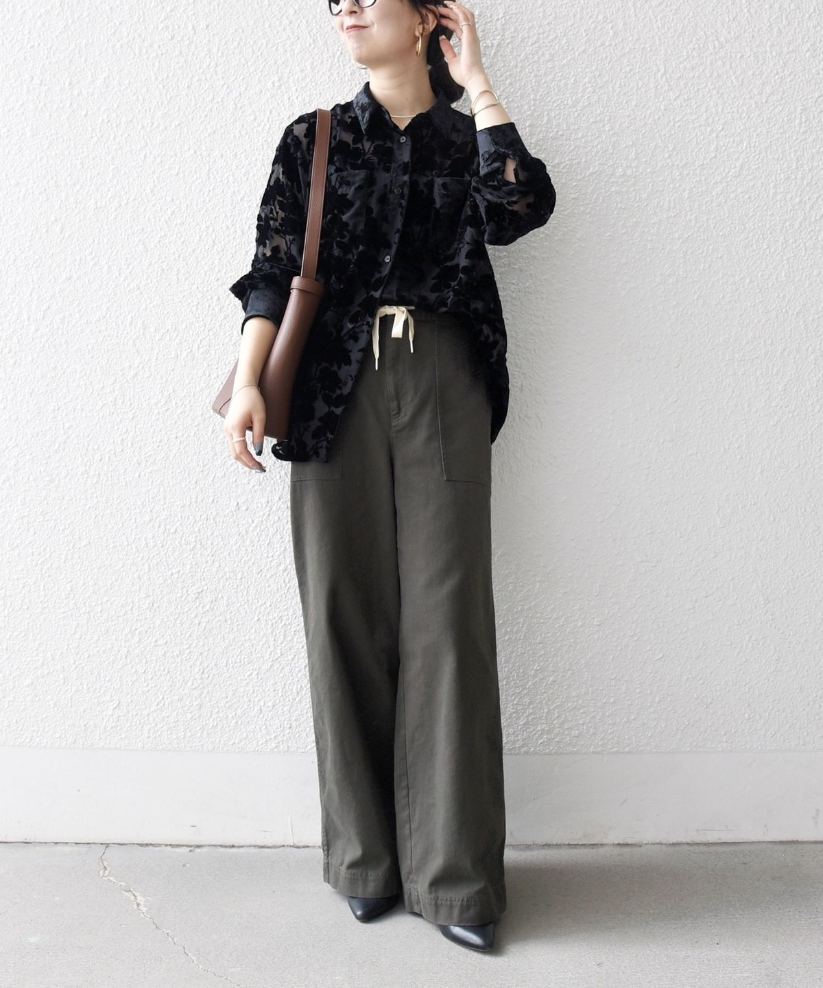 デニムやカーゴパンツなどカジュアルなボトムスとのミックススタイルもおすすめです。