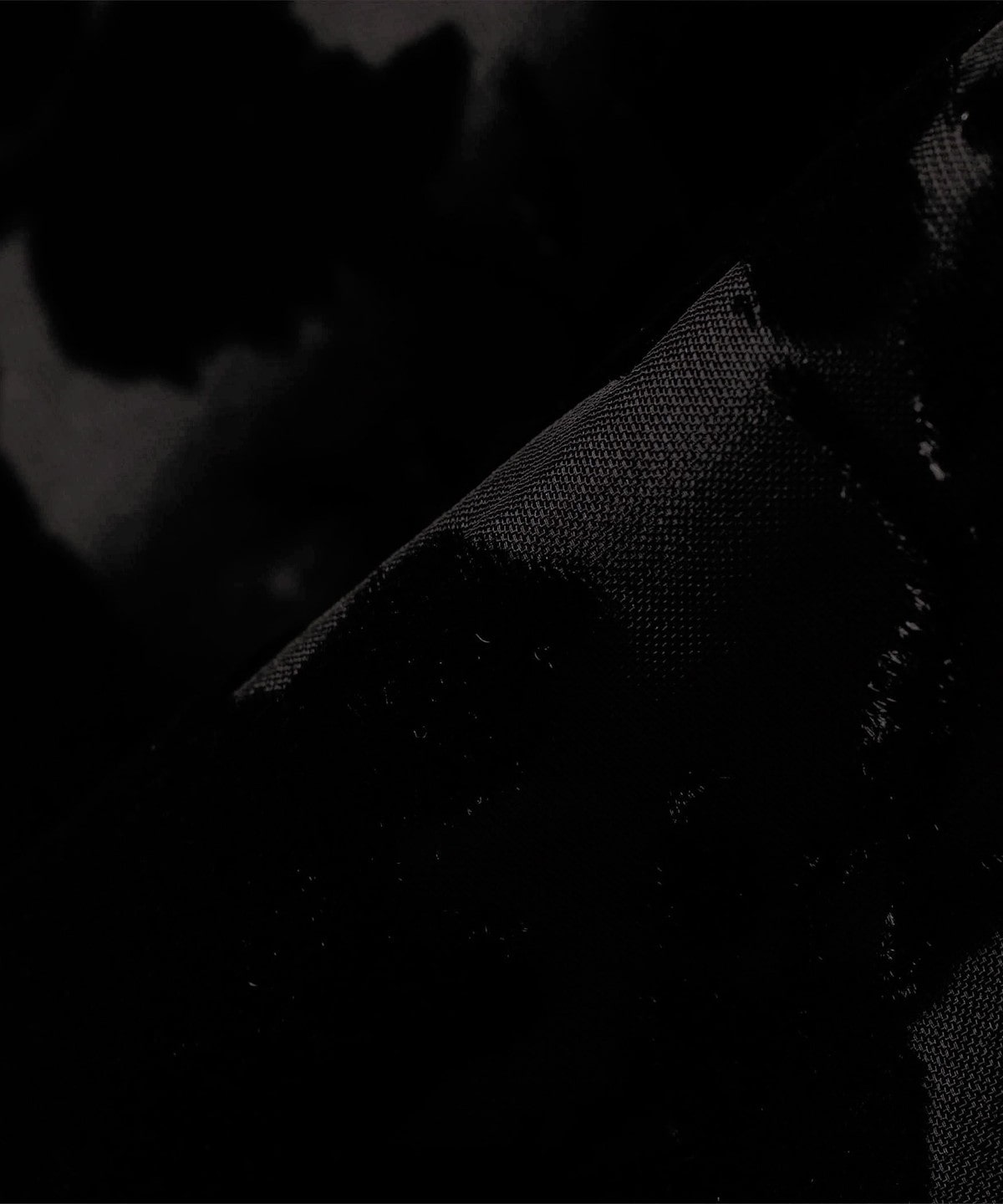 滑らかなベロア生地にオパール加工を施し、フラワー柄を浮かび上がらせた生地。