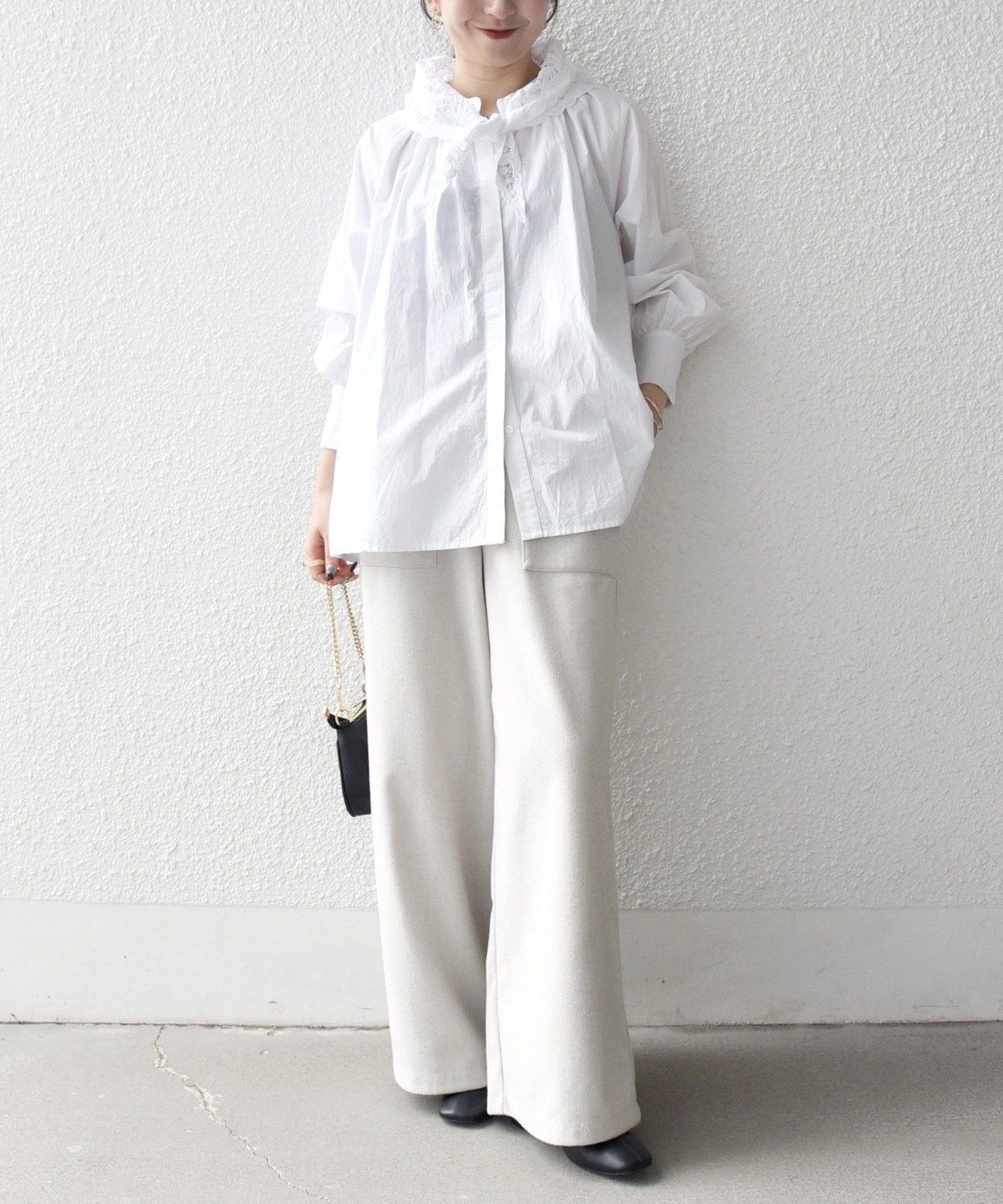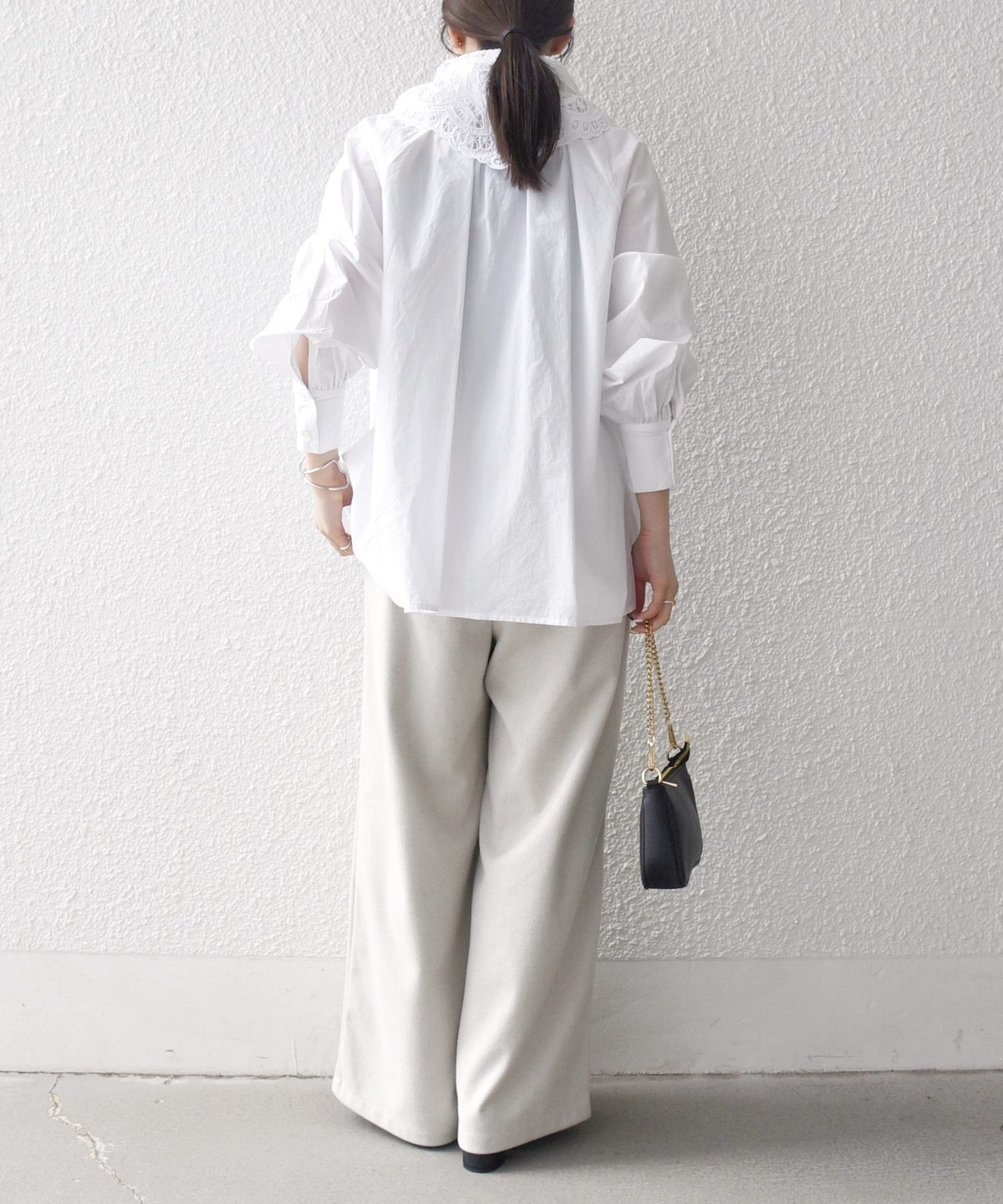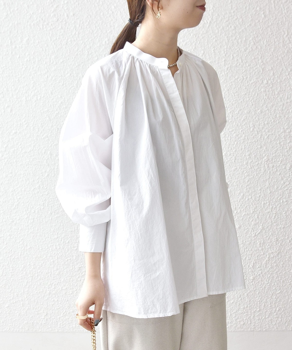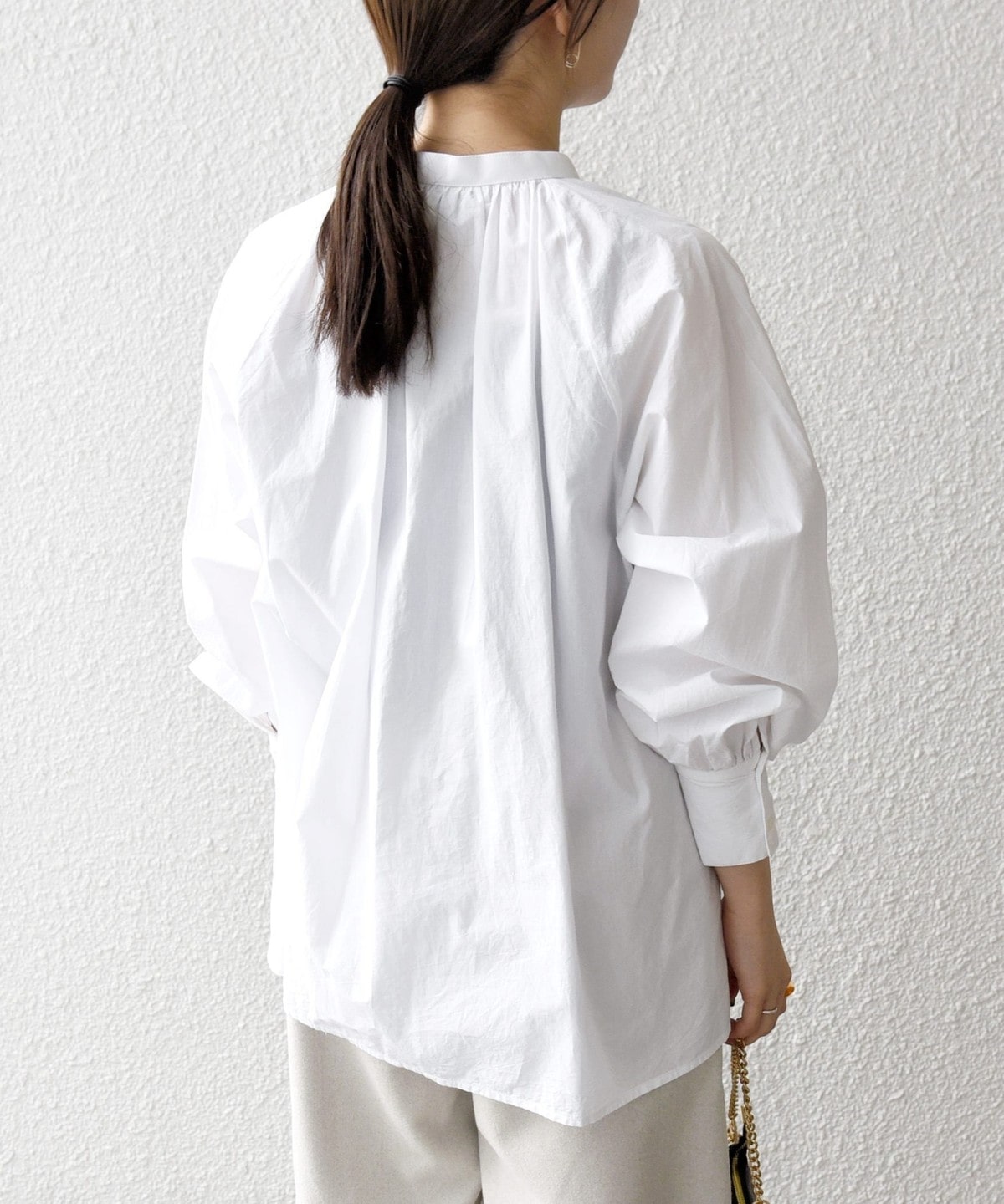 bon_meur:〈洗濯機可能〉レース スカーフ付き バンドカラー ギャザー パフ シャツ