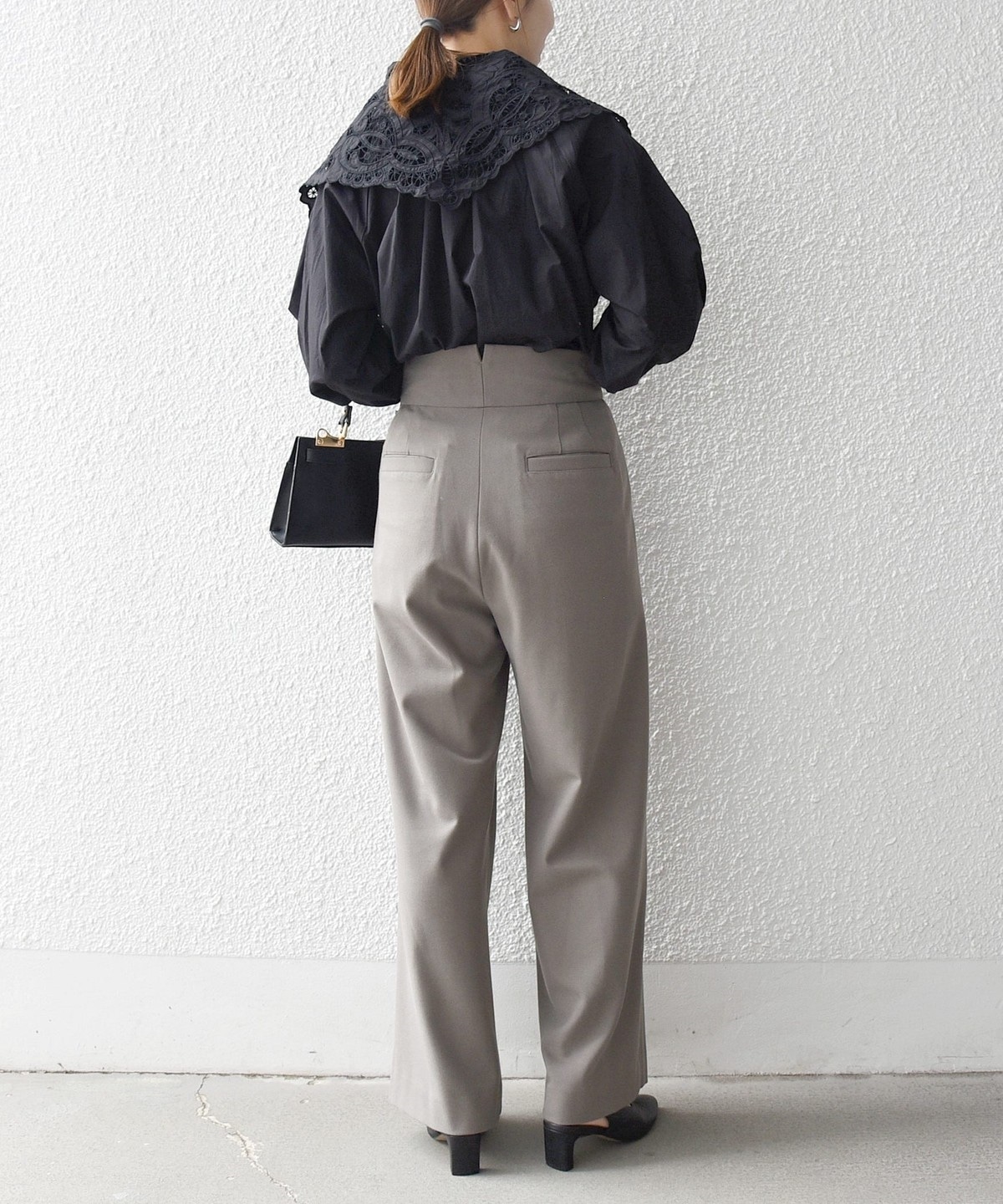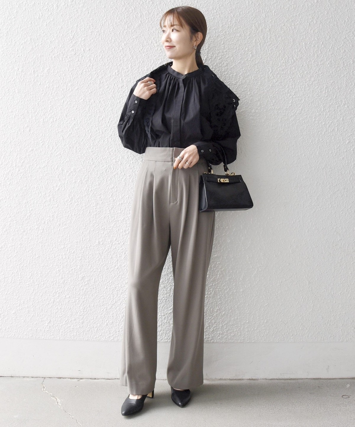 長めのカフスが手もとをすっきりと見せ、クラシカルで上品な印象に仕上げてくれる一枚です。