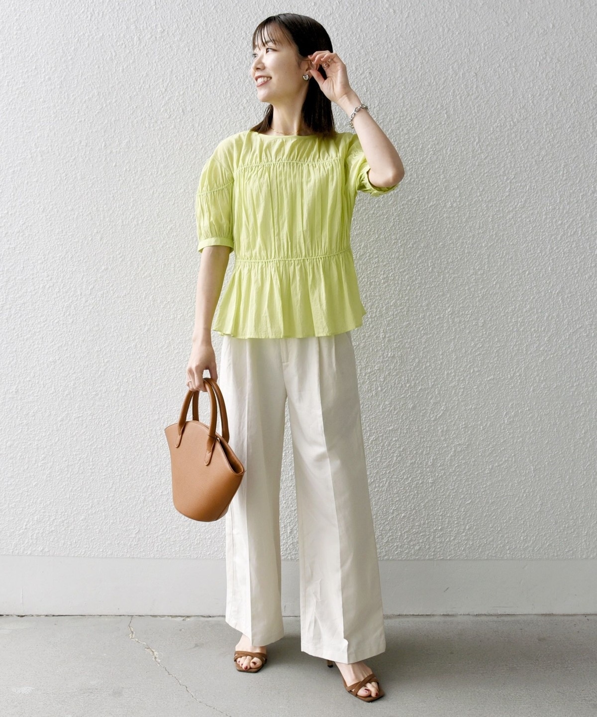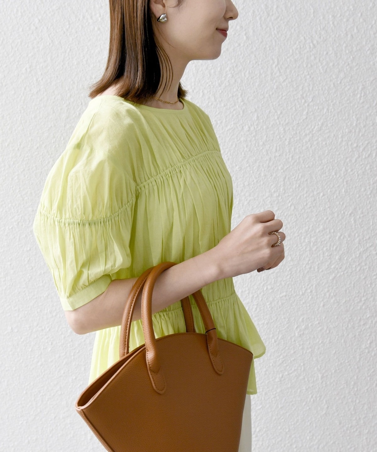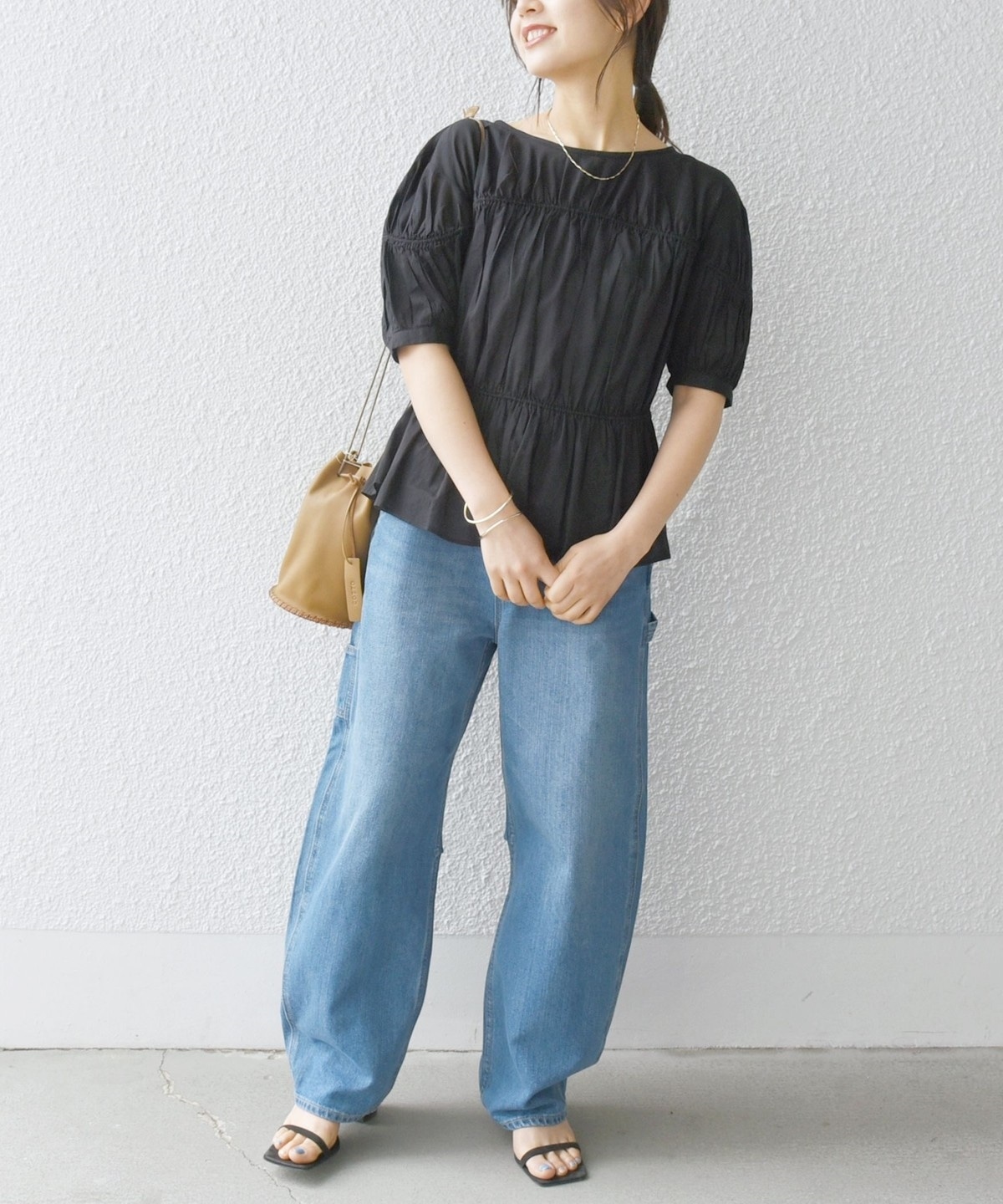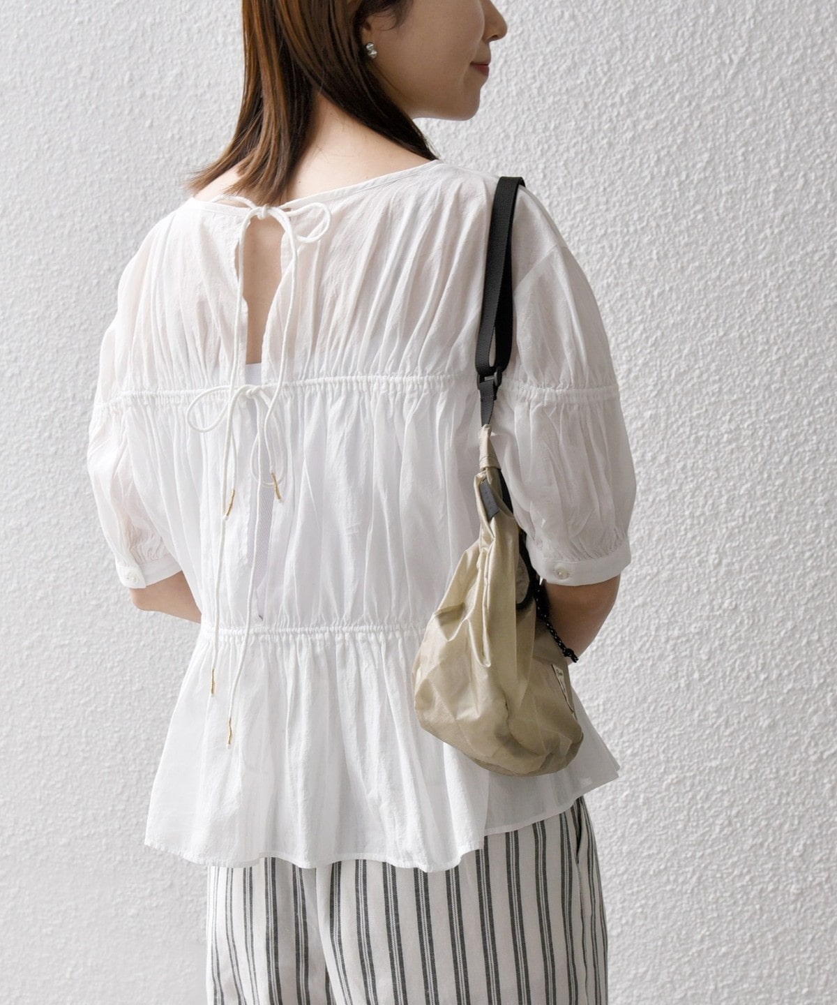 ギャザーたっぷりのパフスリーブブラウス。