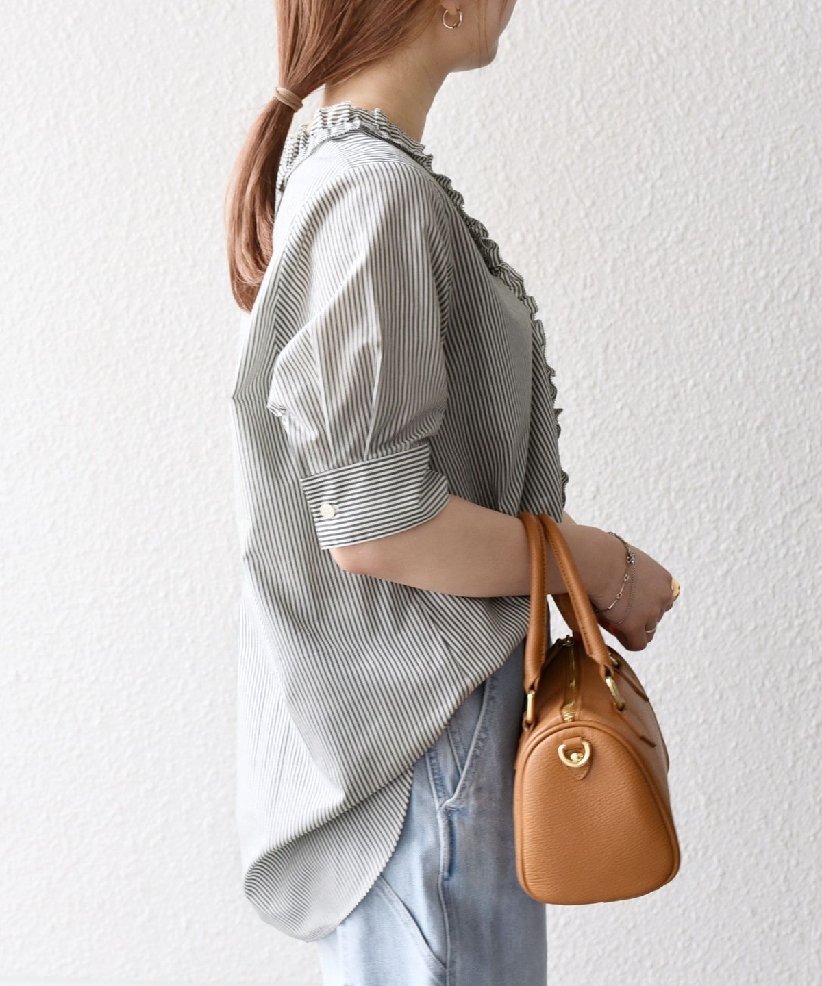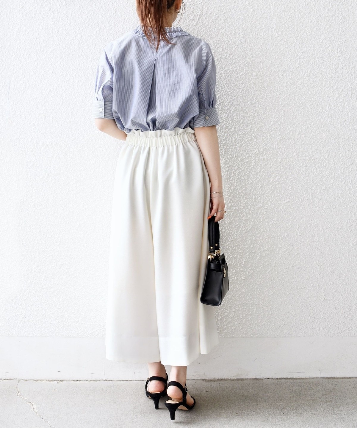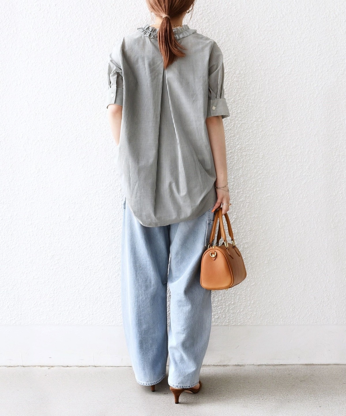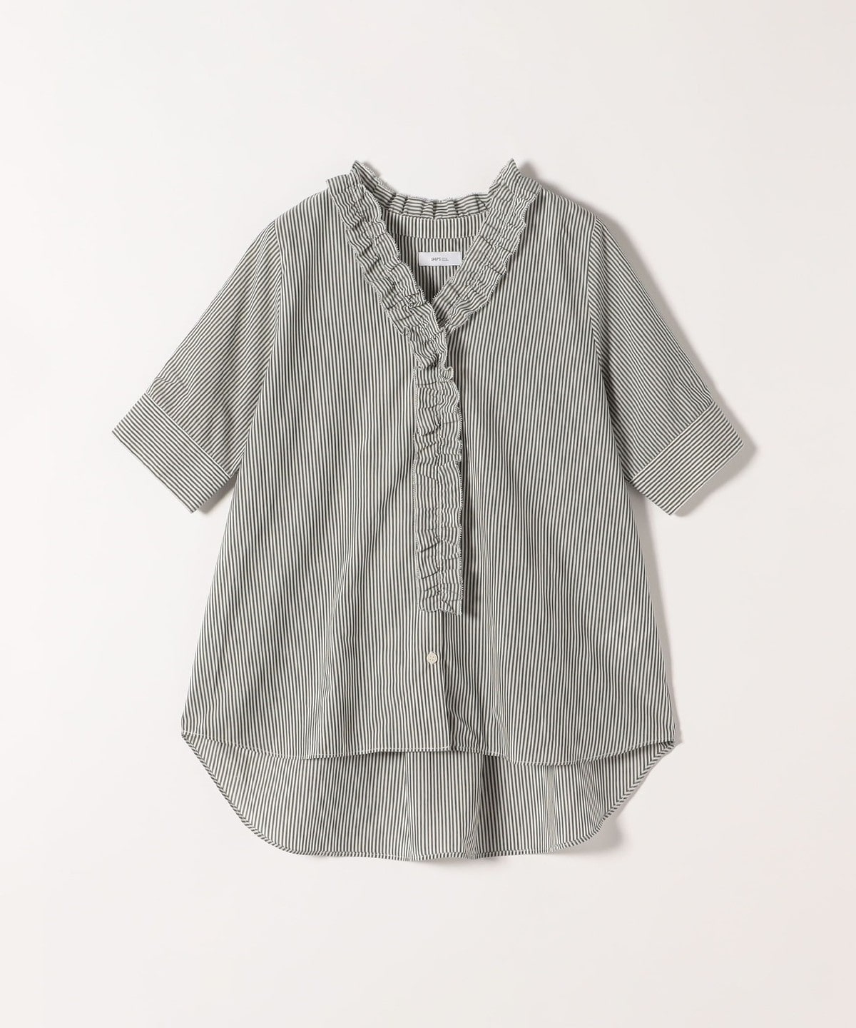 SHIPS any:〈手洗い可能〉シアー フリル バンドカラー パフ シャツ ブラウス