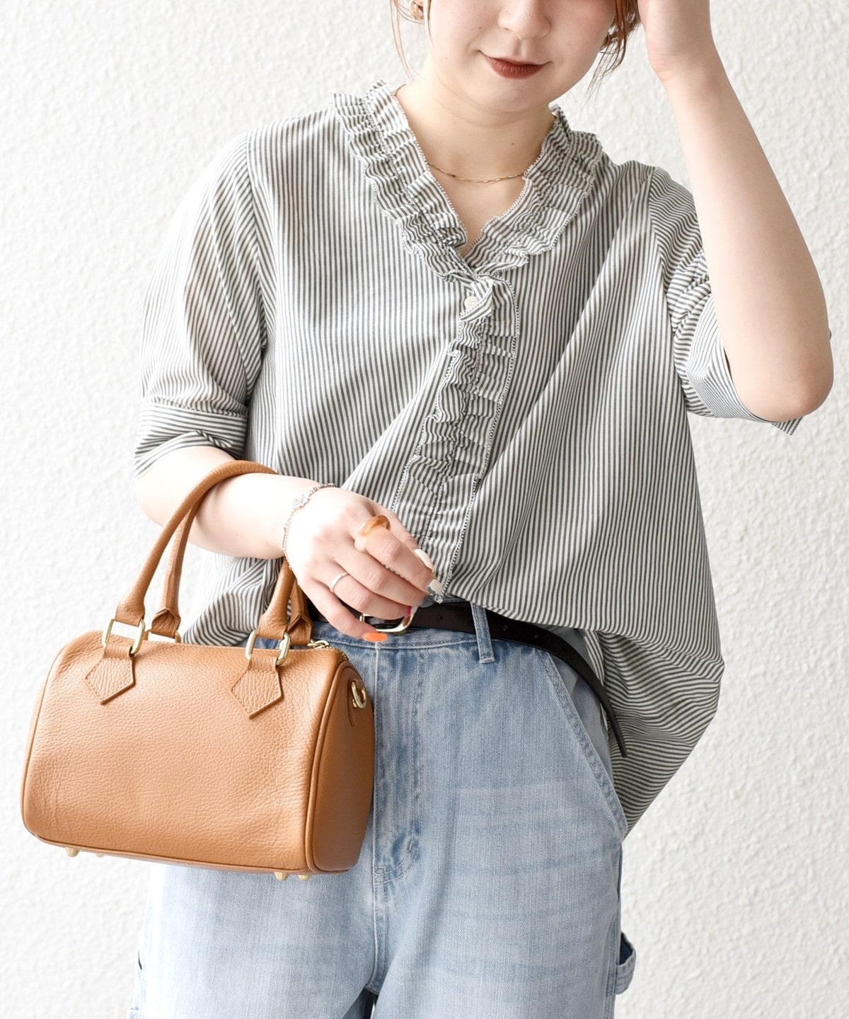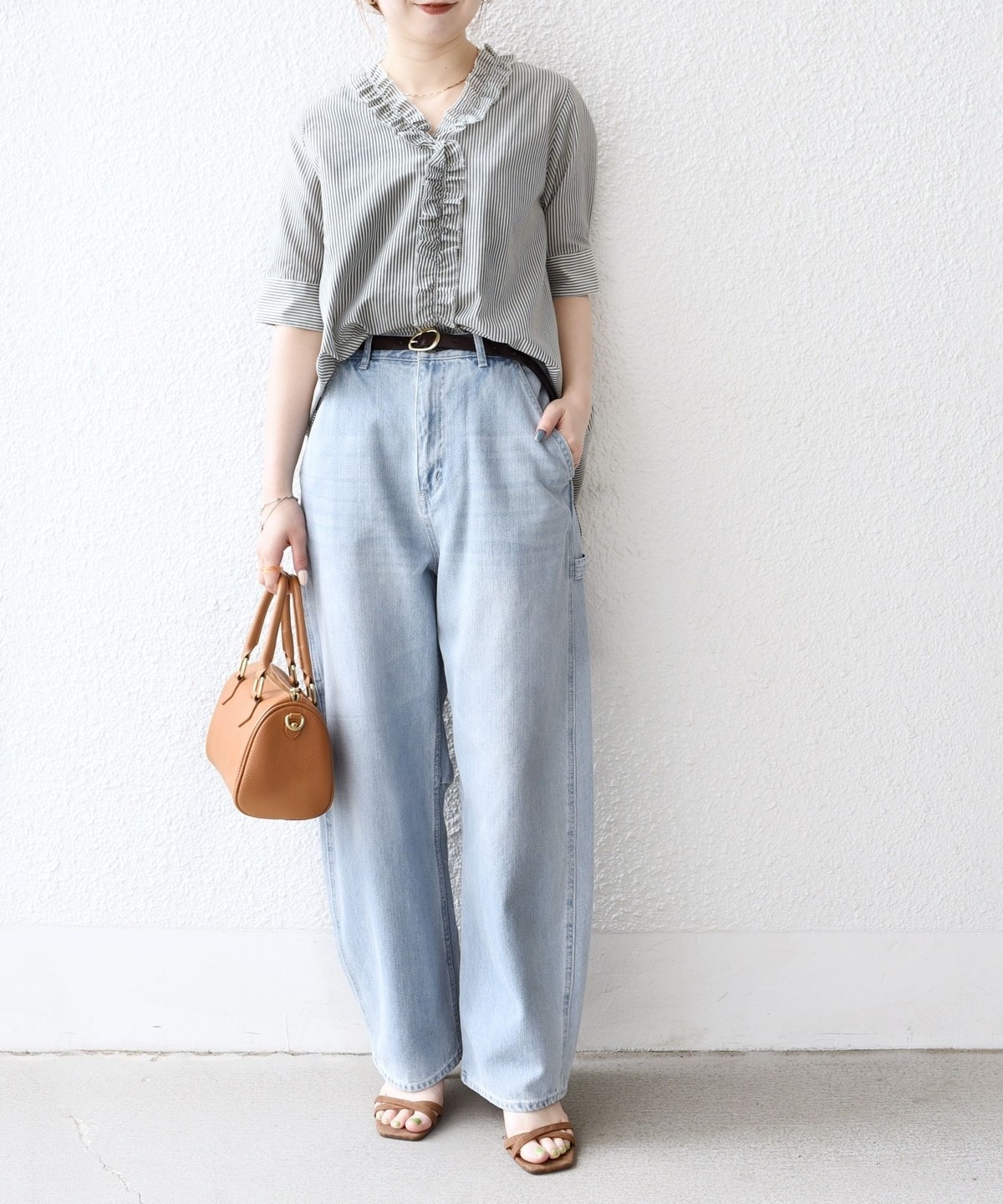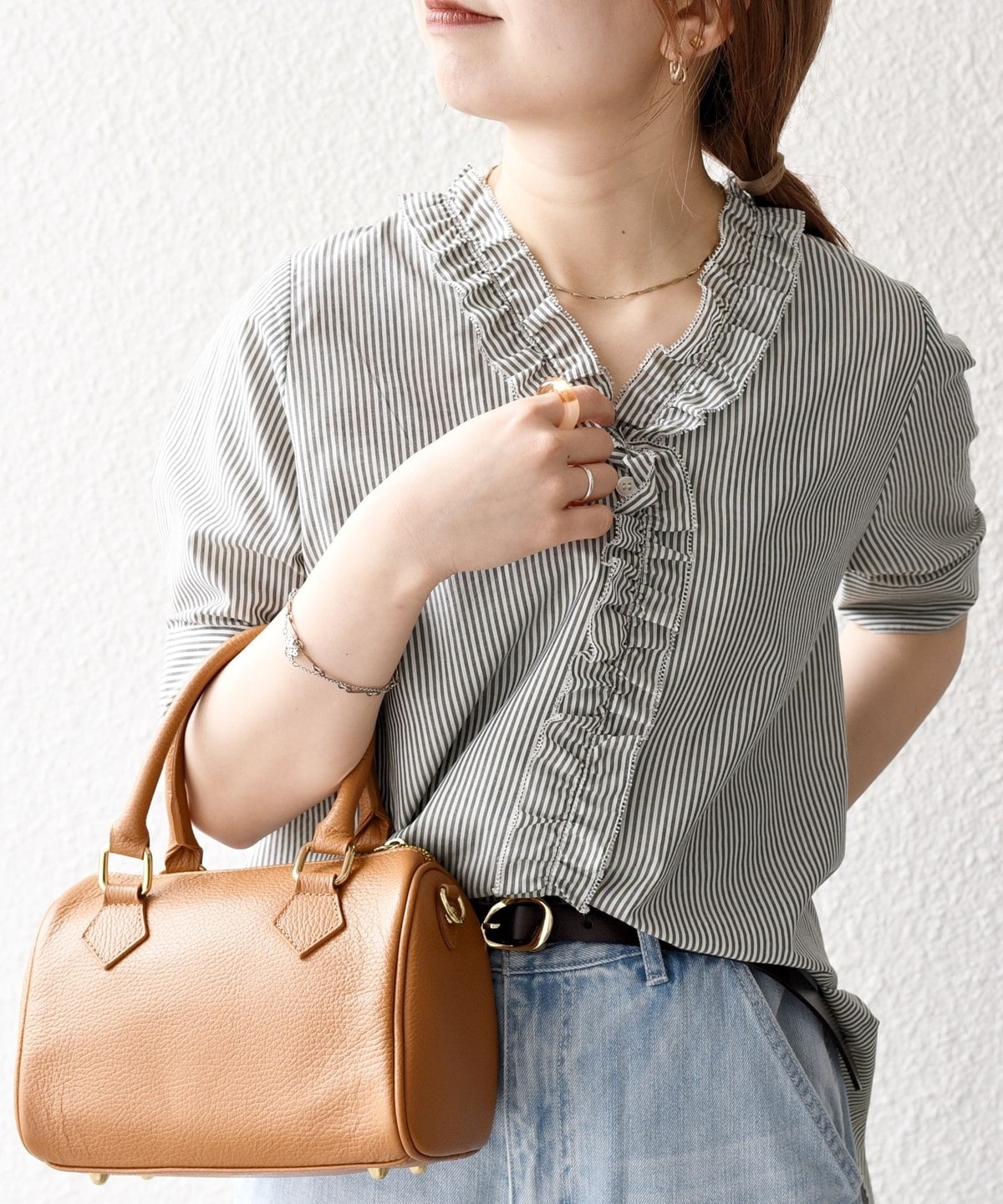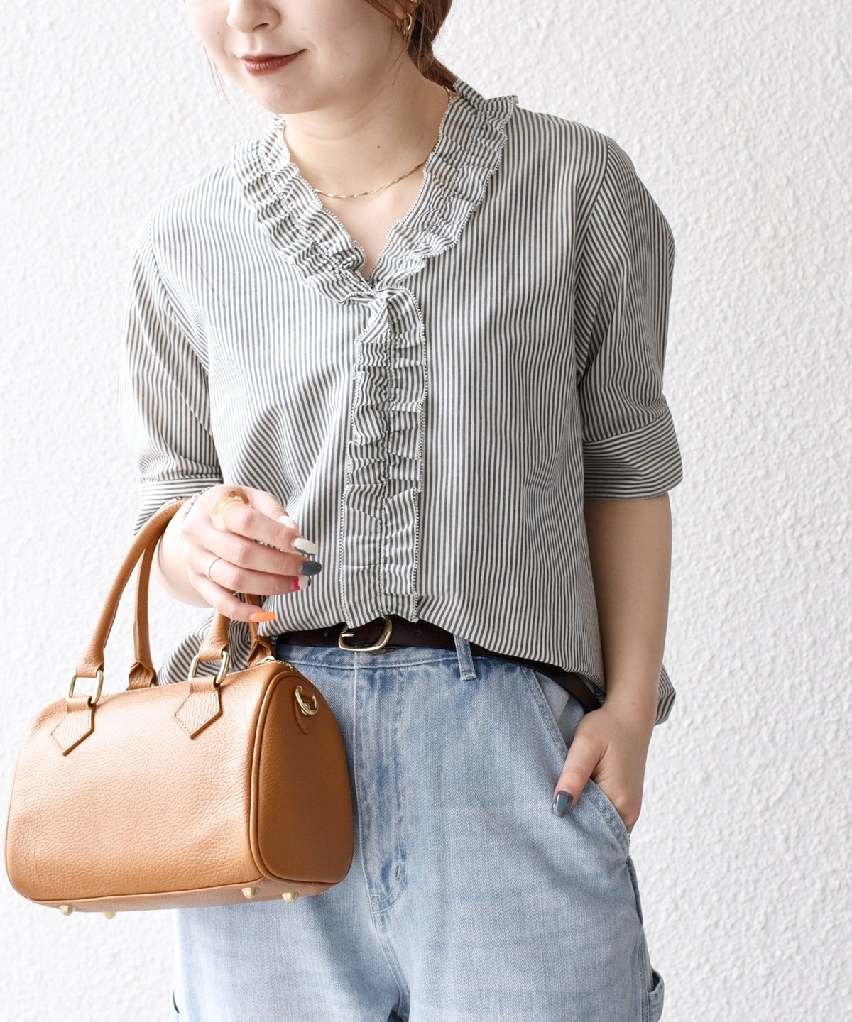 《追加予約》SHIPS any:〈手洗い可能〉ストライプ フリル Vネック シャツ ブラウス