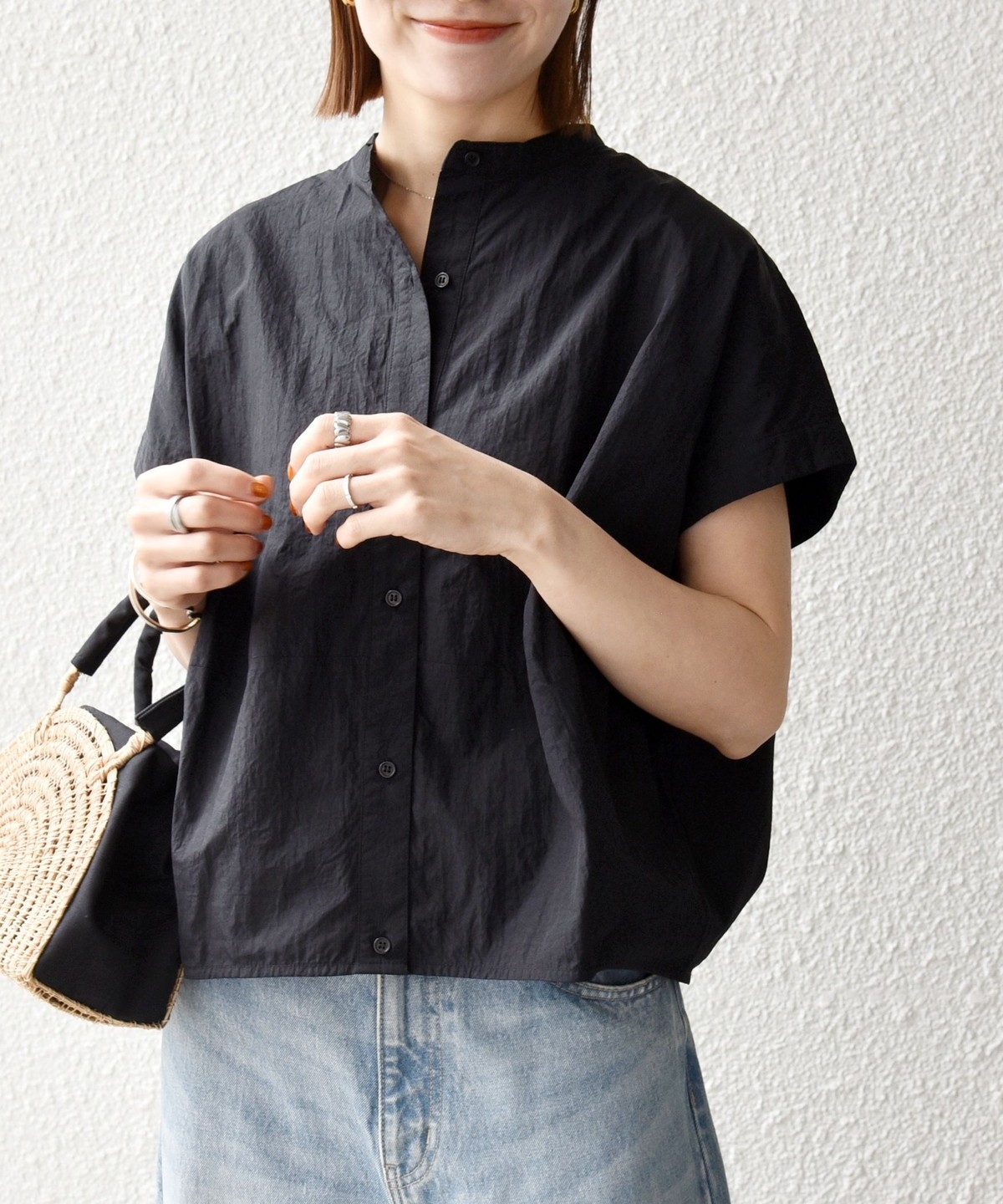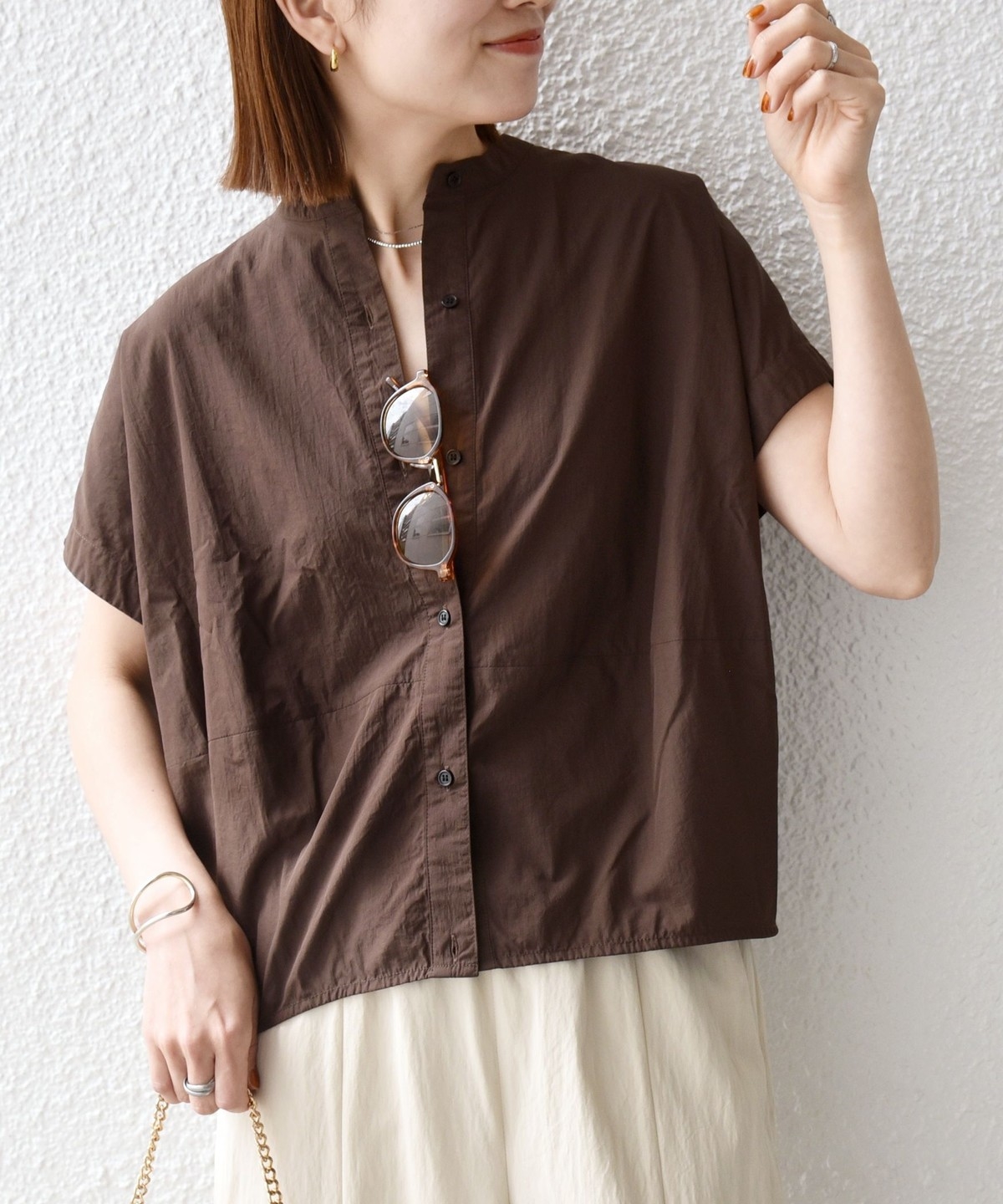 《予約》SHIPS any:〈多機能/洗濯機可能〉シェルテック ドルマン バンド カラー シャツ