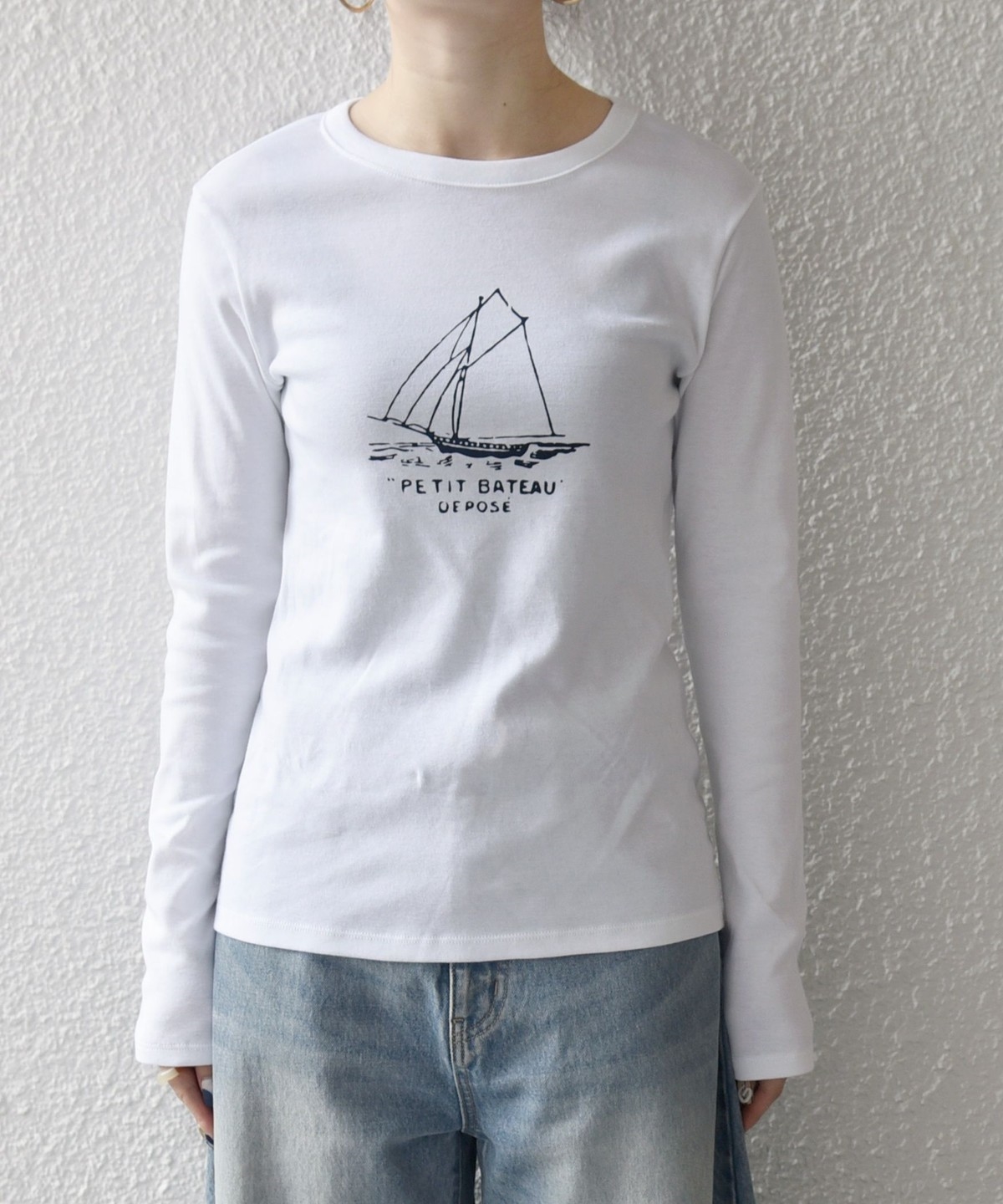 2. 《予約》【SHIPS any別注】PETIT BATEAU:〈洗濯機可能〉ロングスリーブ Tシャツ ホワイト