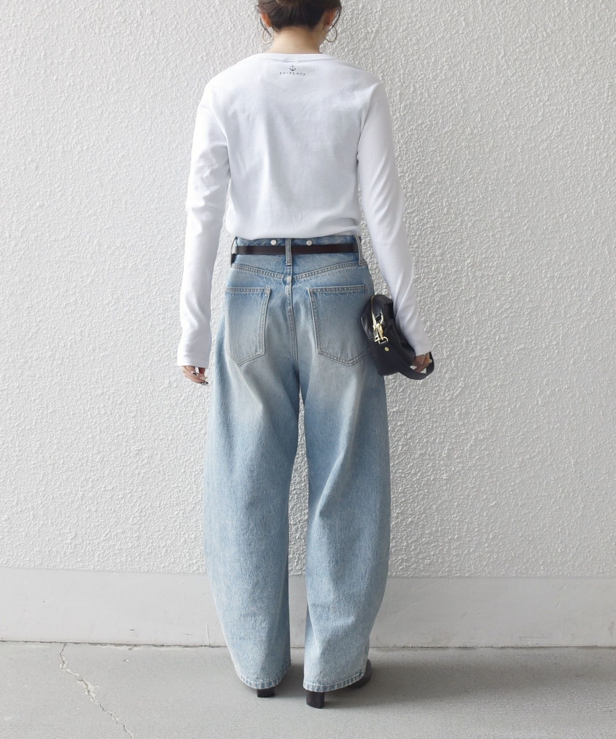 すっきりとしていてベーシックな形なので、一枚ではもちろん、ジャケットやサロペットのインナーにも最適◎