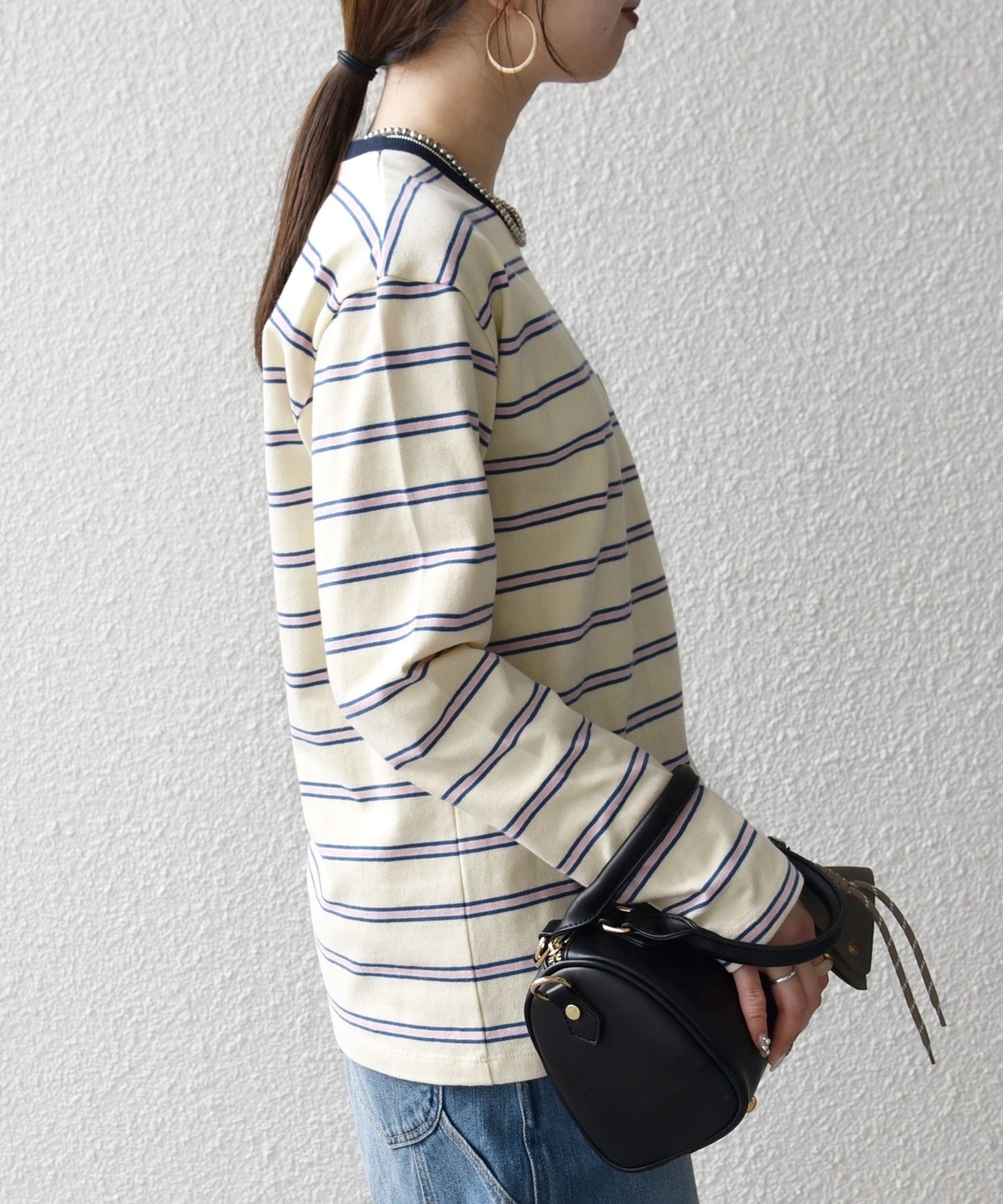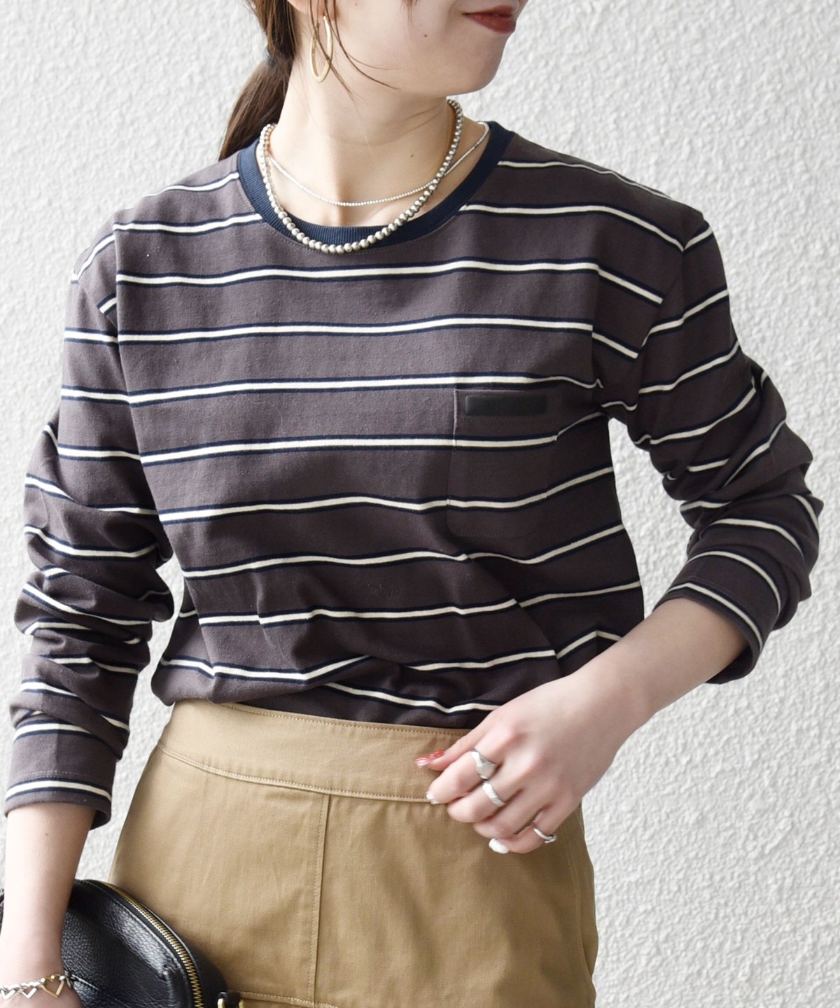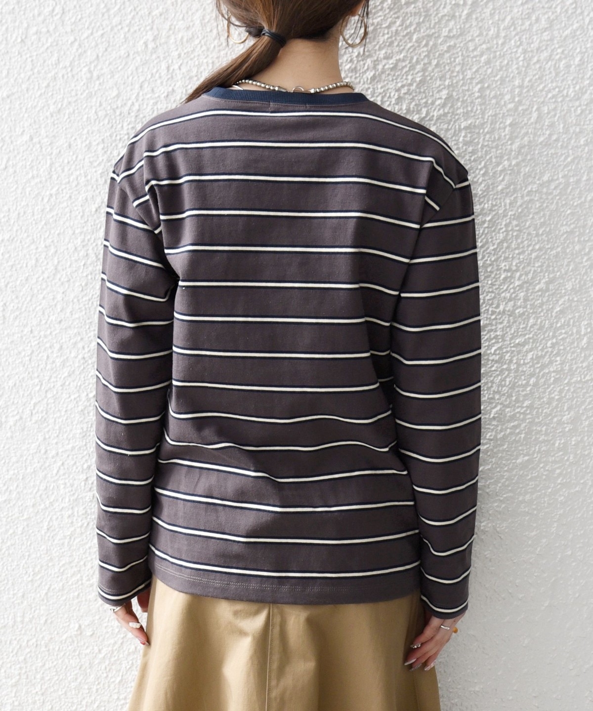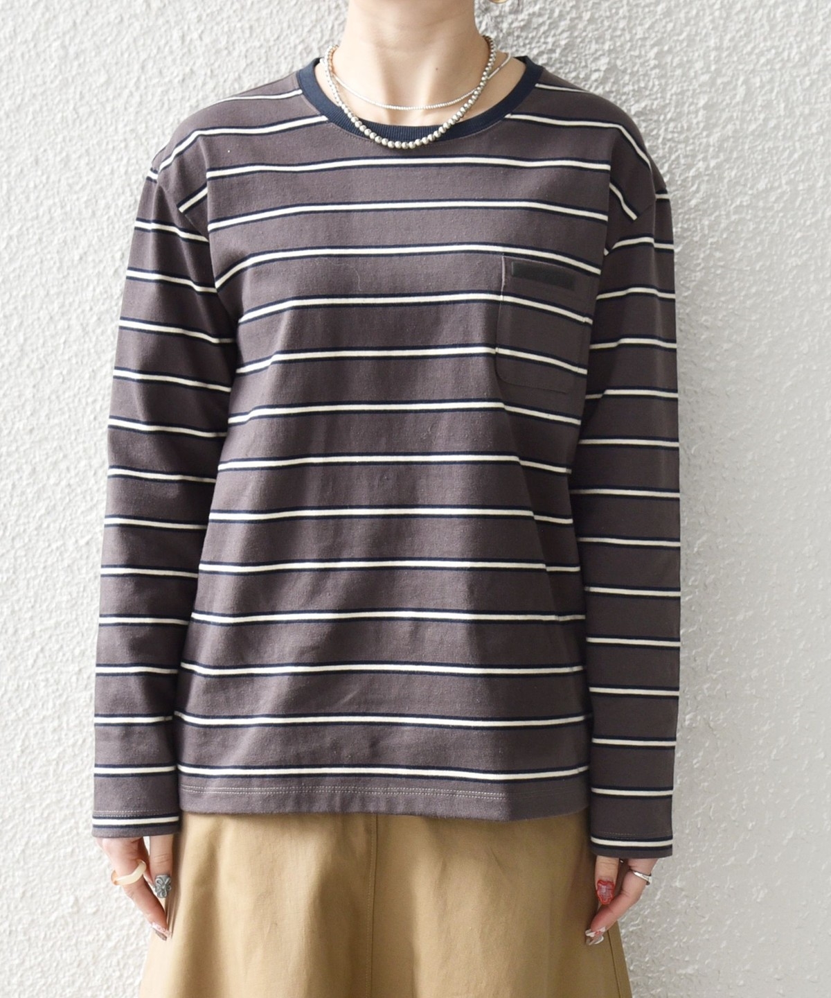 マルチボーダー柄がポイントの長袖リンガーT。