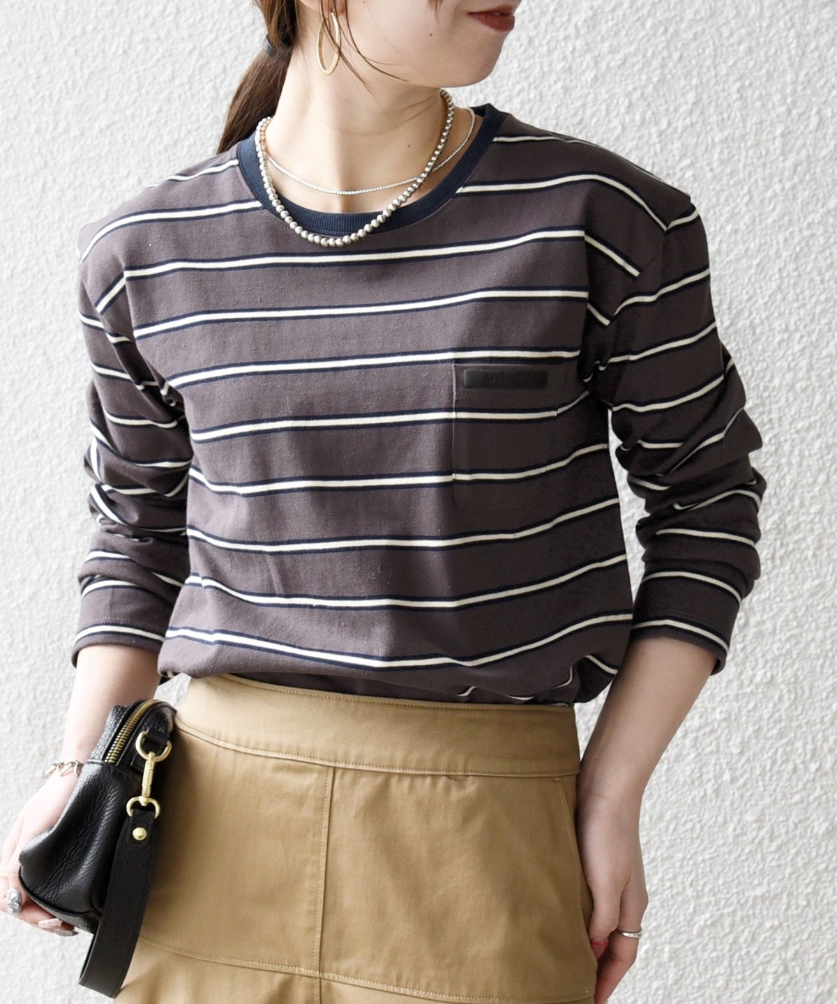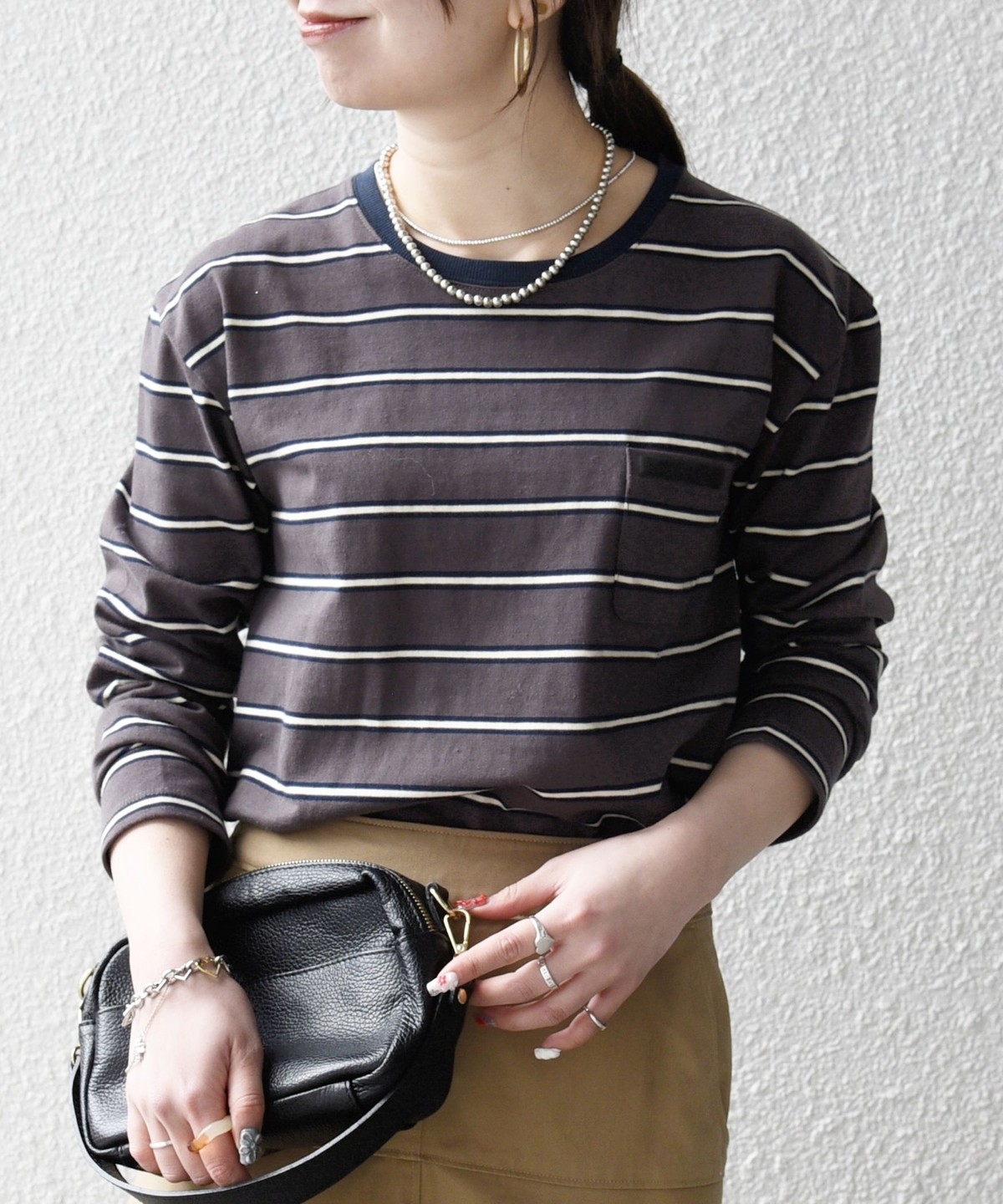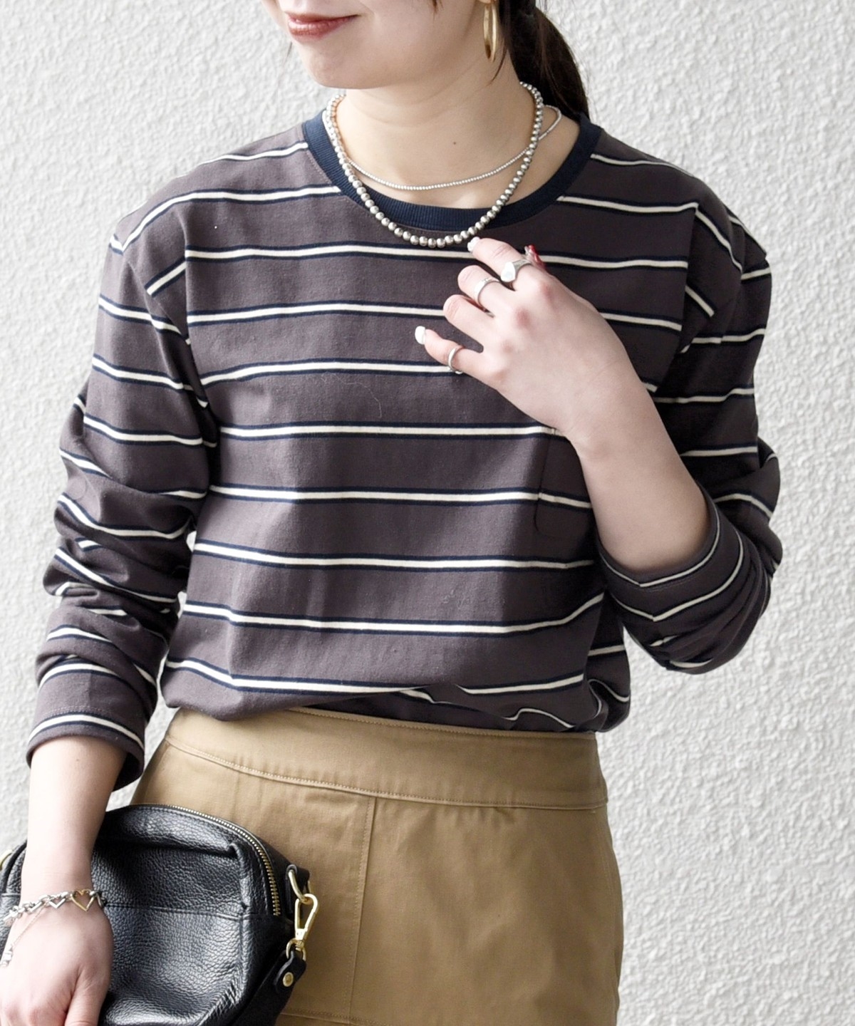 マルチボーダー柄がポイントの長袖リンガーT。