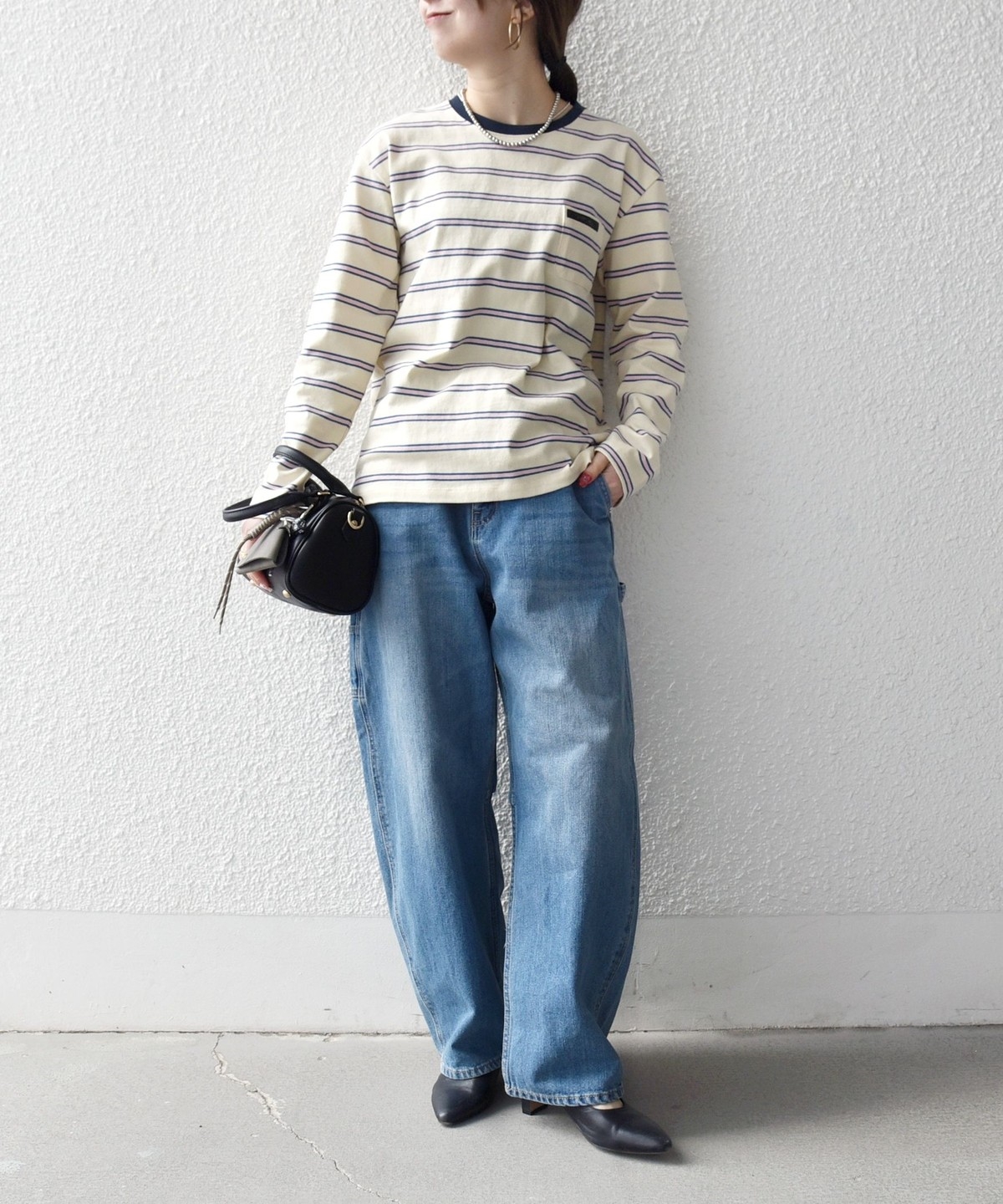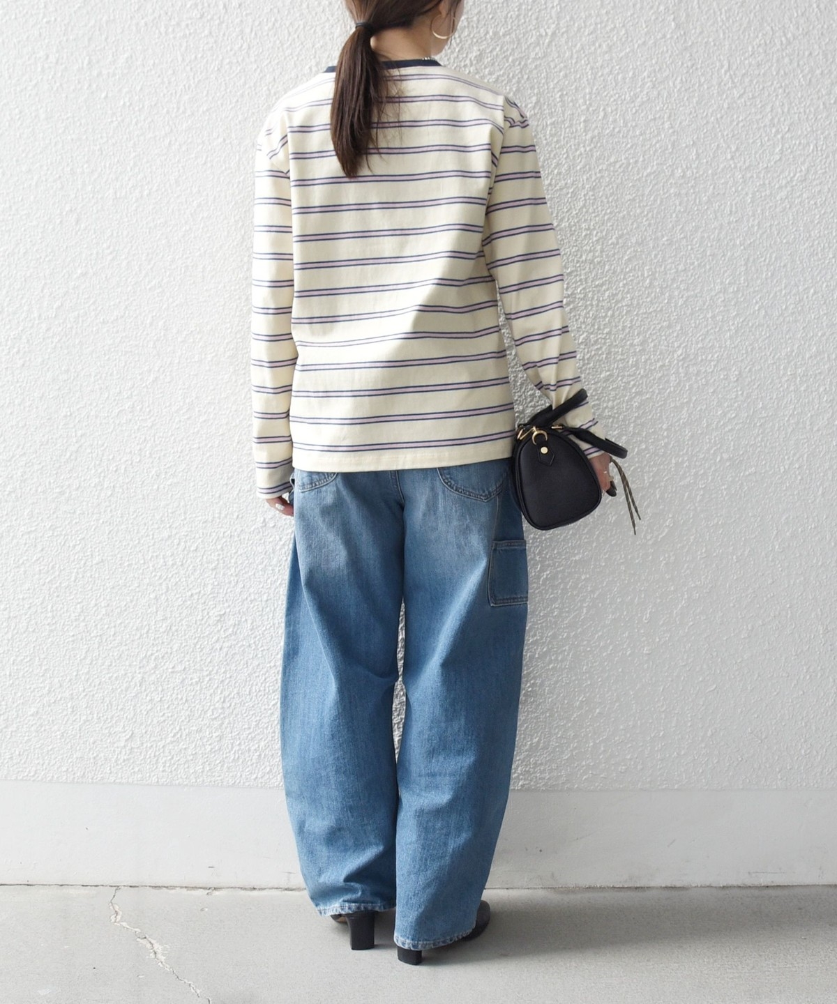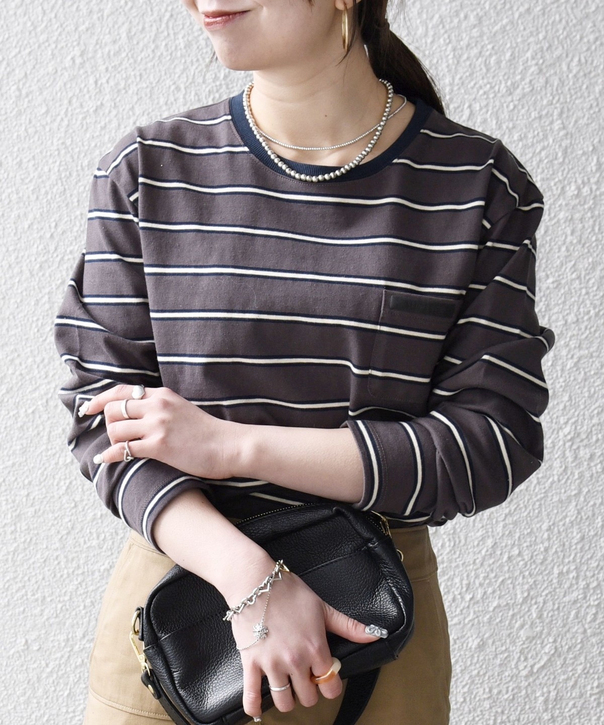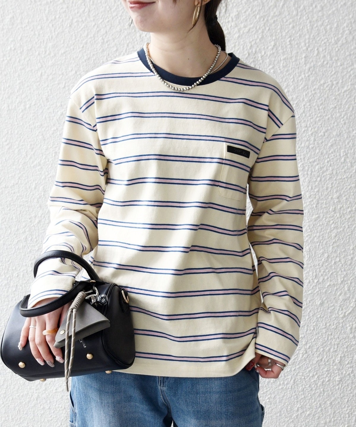 マルチボーダー柄がポイントの長袖リンガーT。