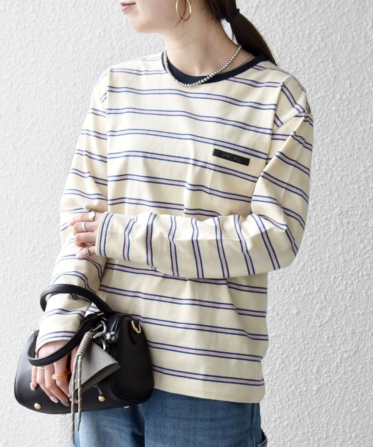 《予約》SHIPS any:〈洗濯機可能〉マルチボーダー リンガー ロンTEE