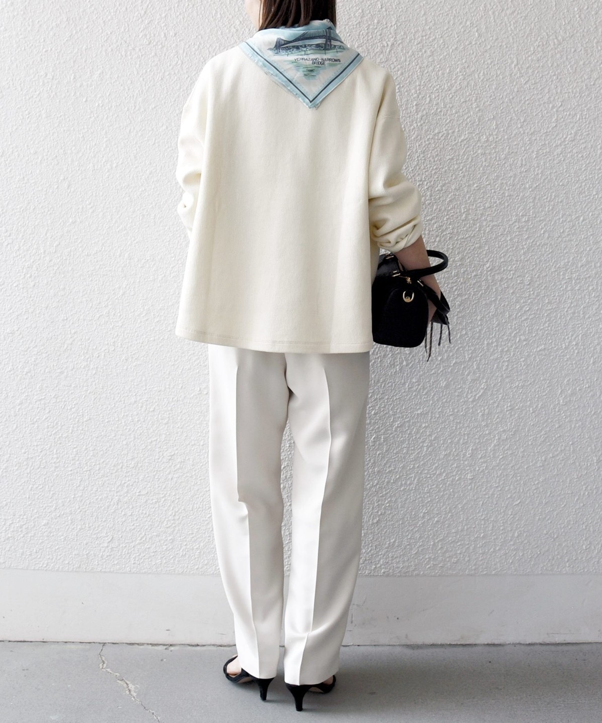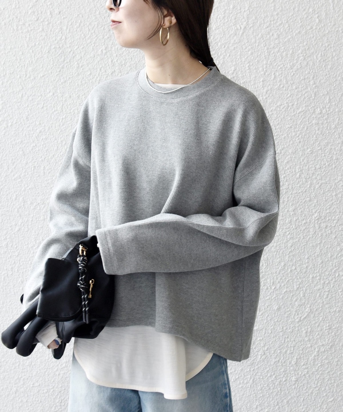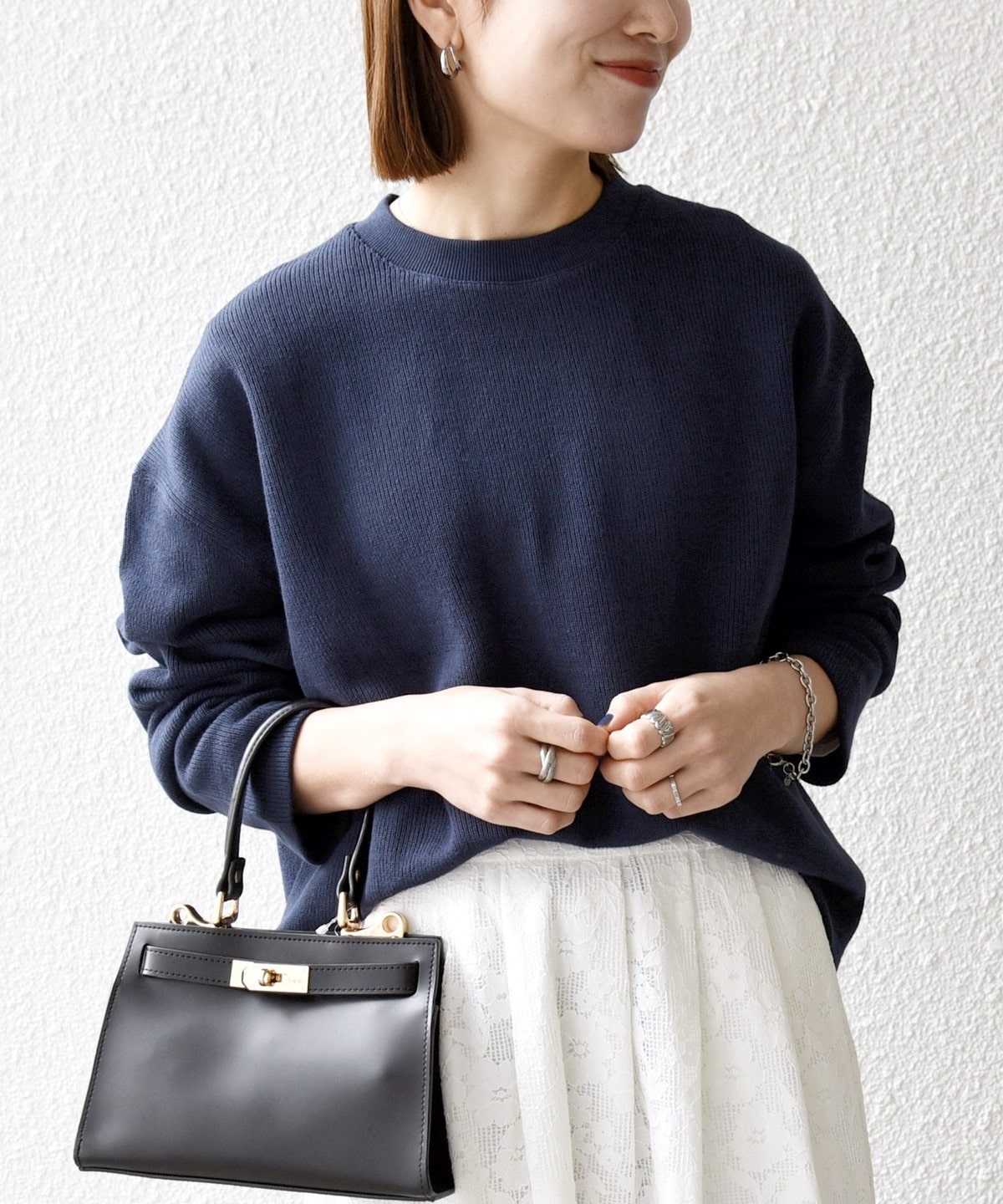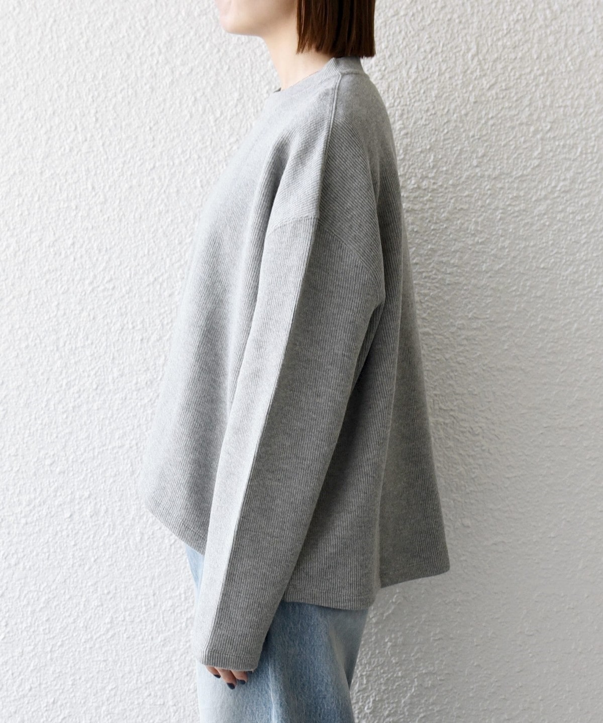 すっきりとしたクルーネックのため、ストールやスカーフを巻いた首元のアレンジも楽しめます。