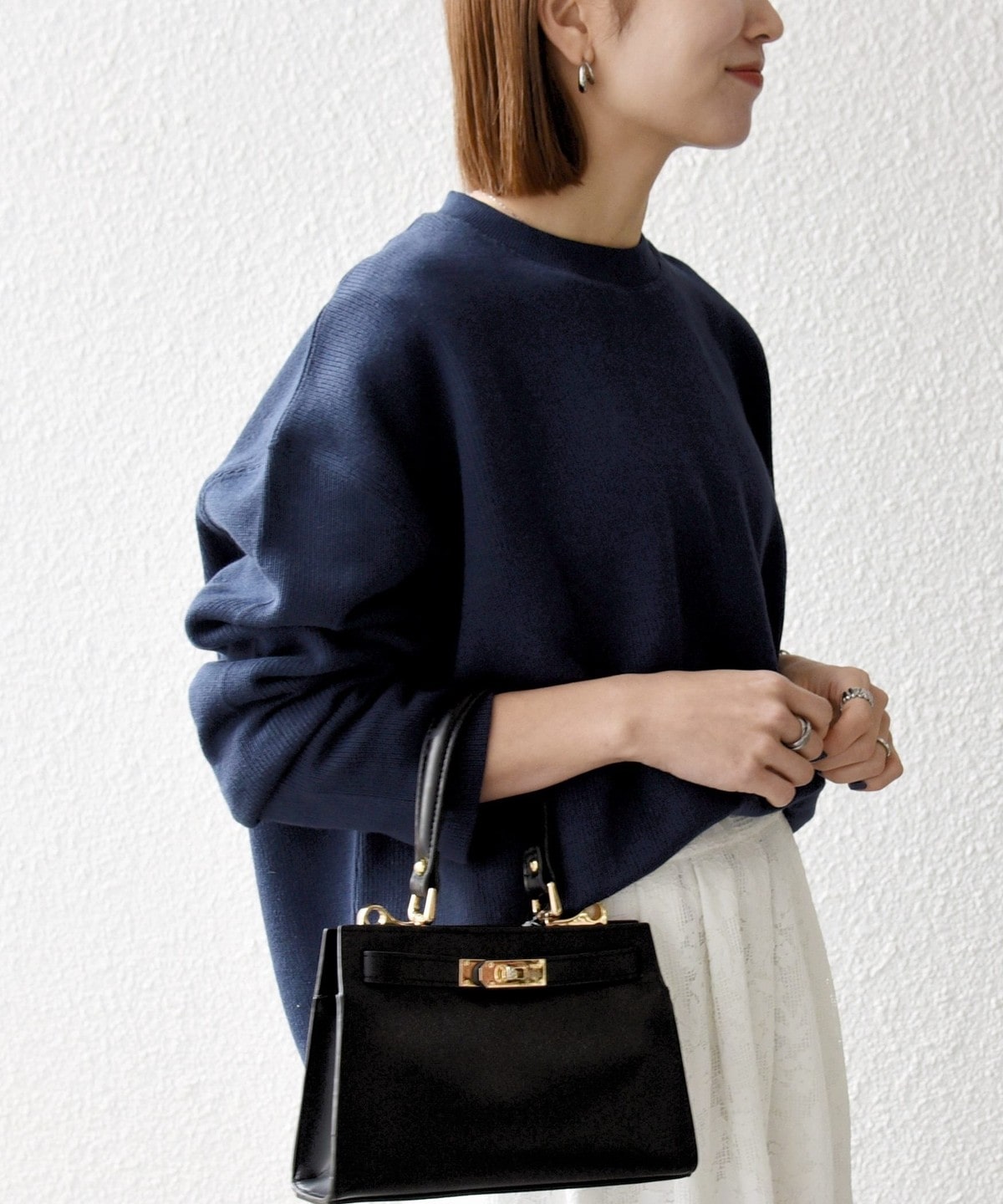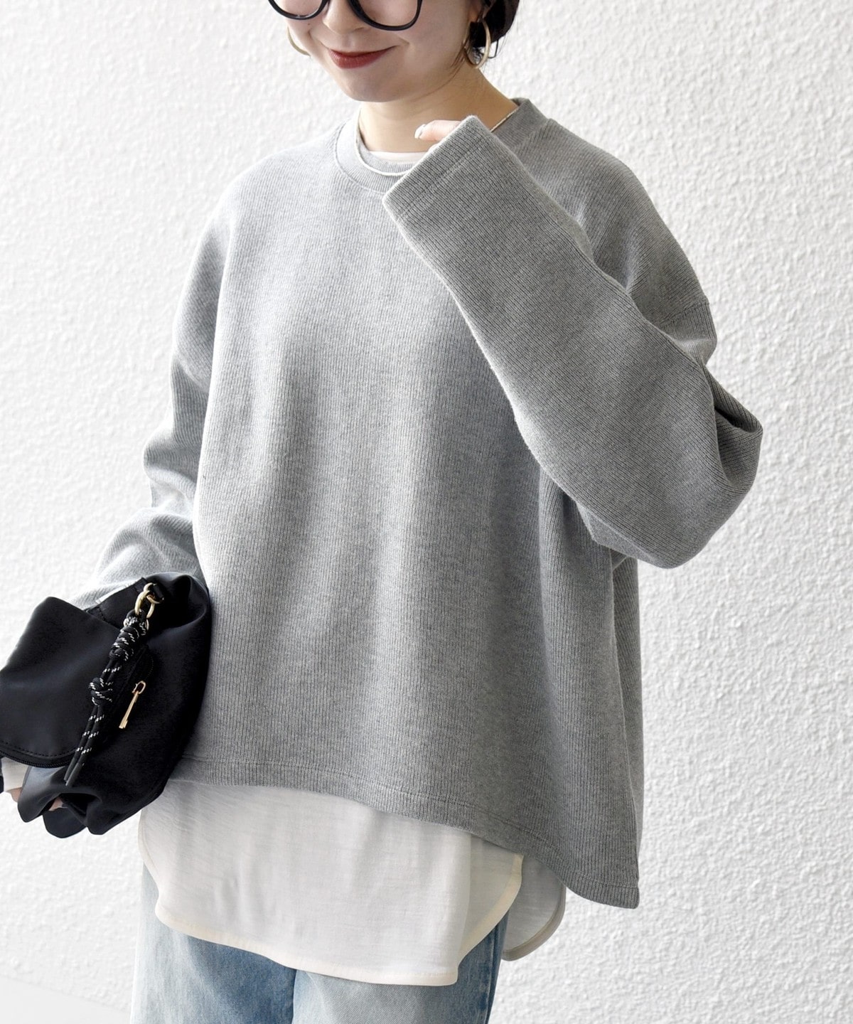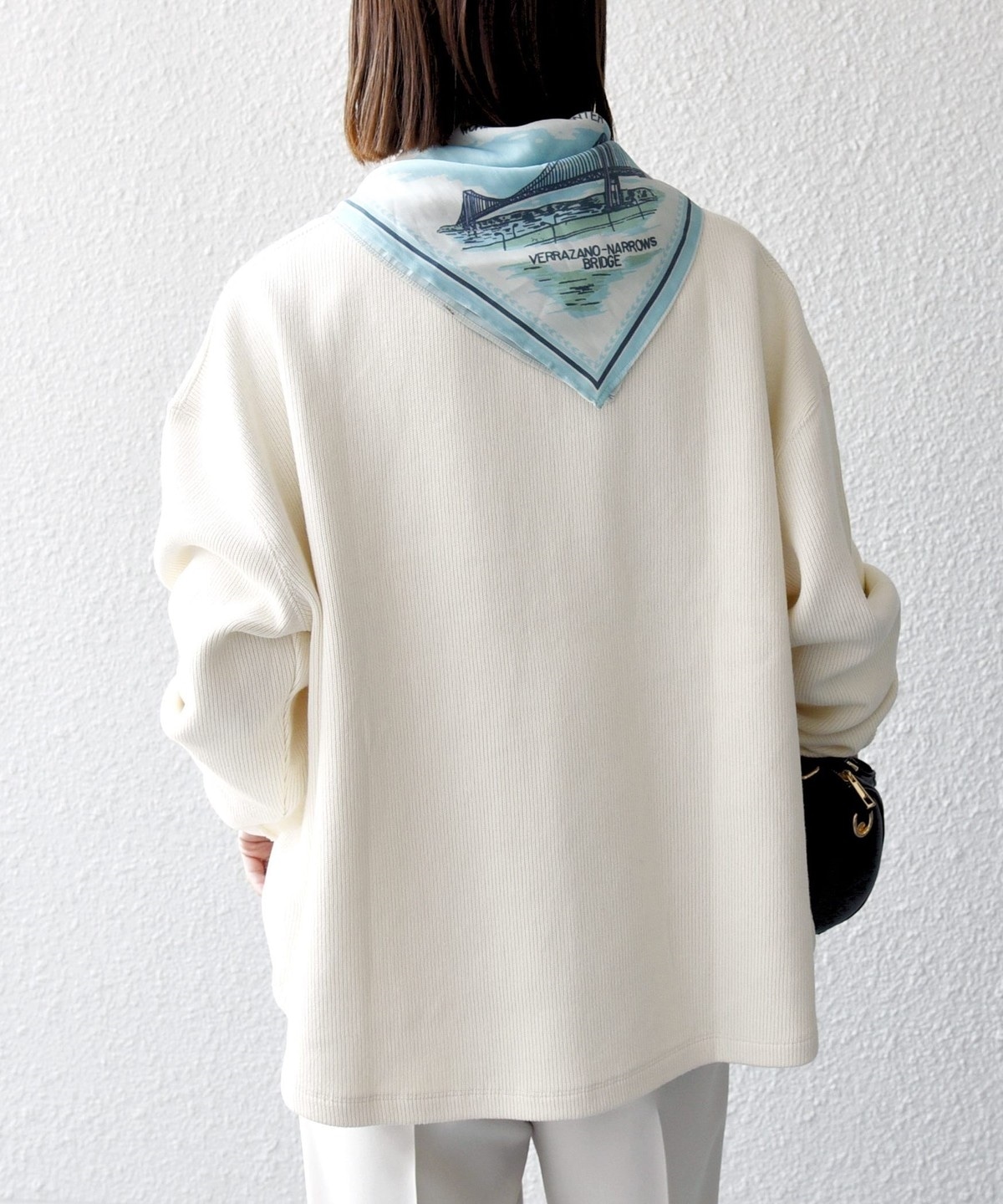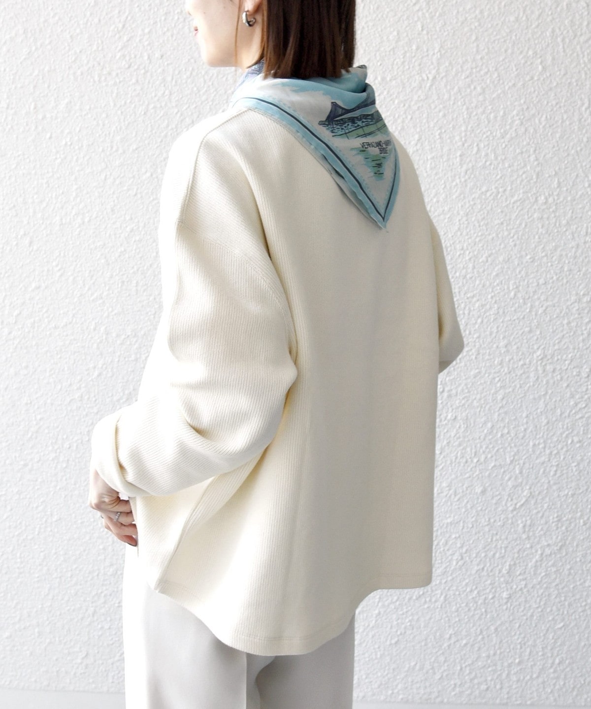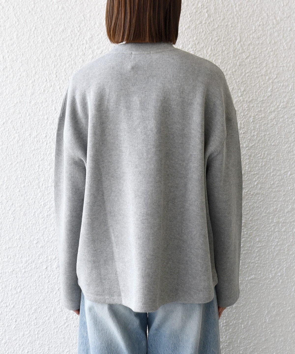 すっきりとしたクルーネックのため、ストールやスカーフを巻いた首元のアレンジも楽しめます。