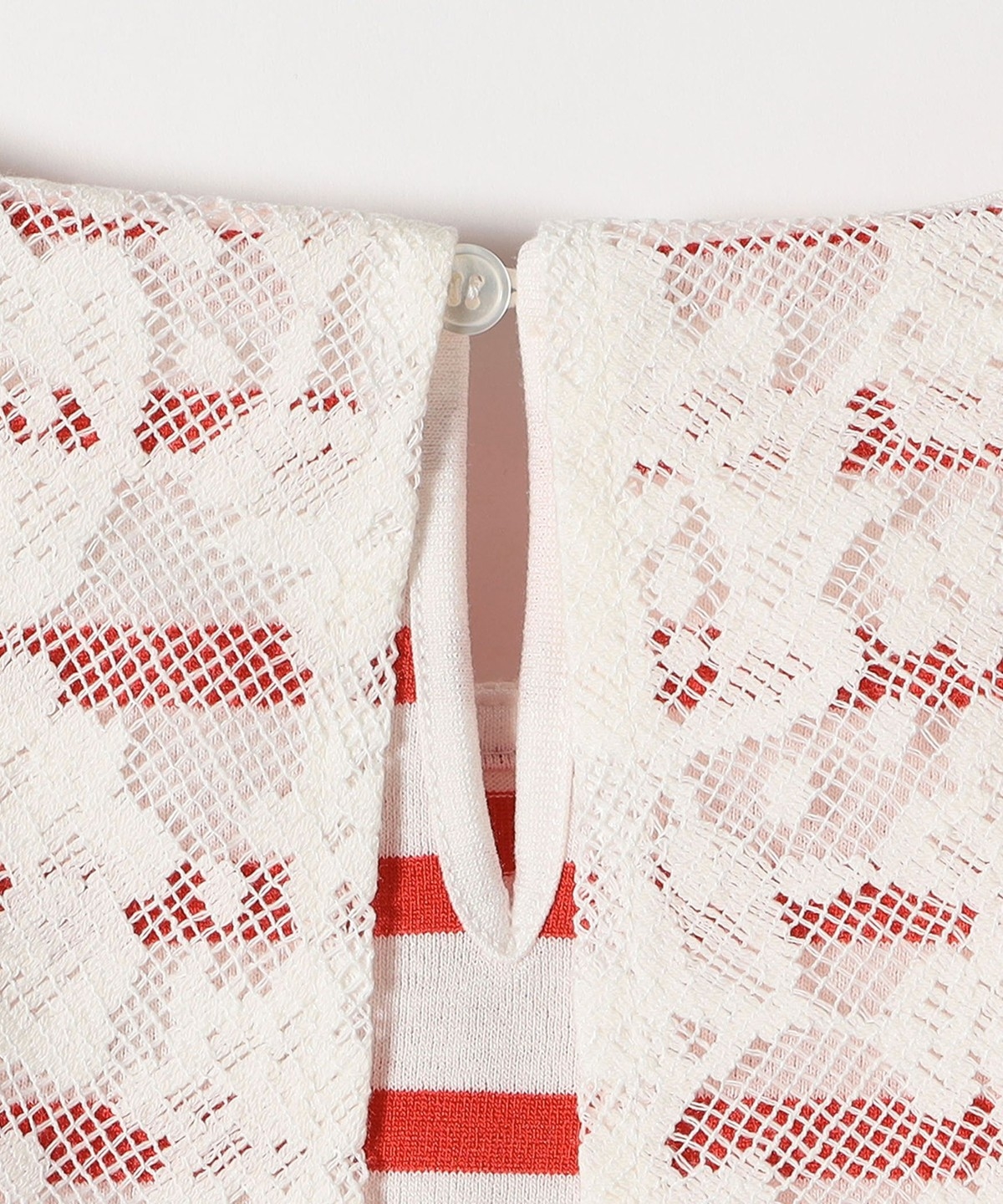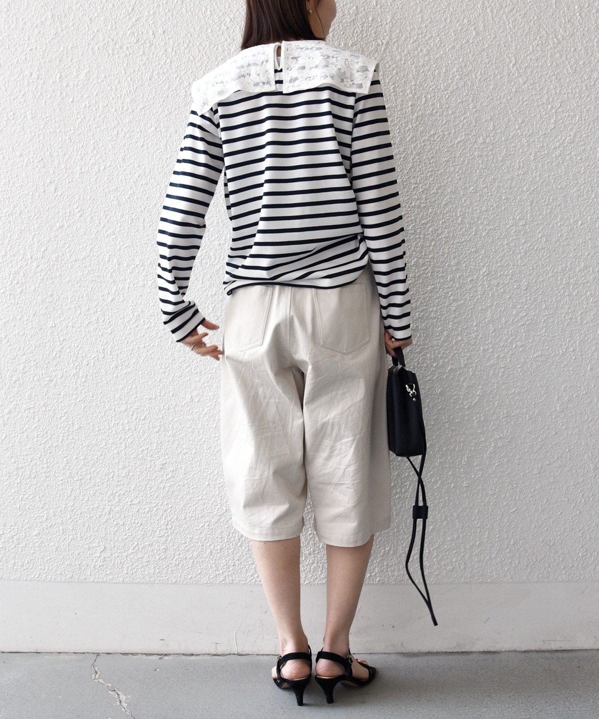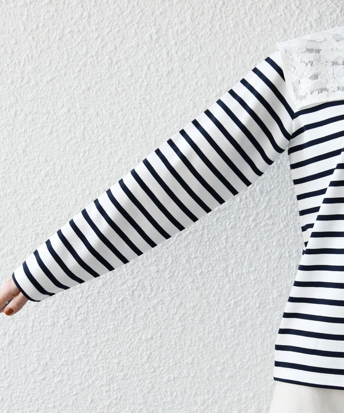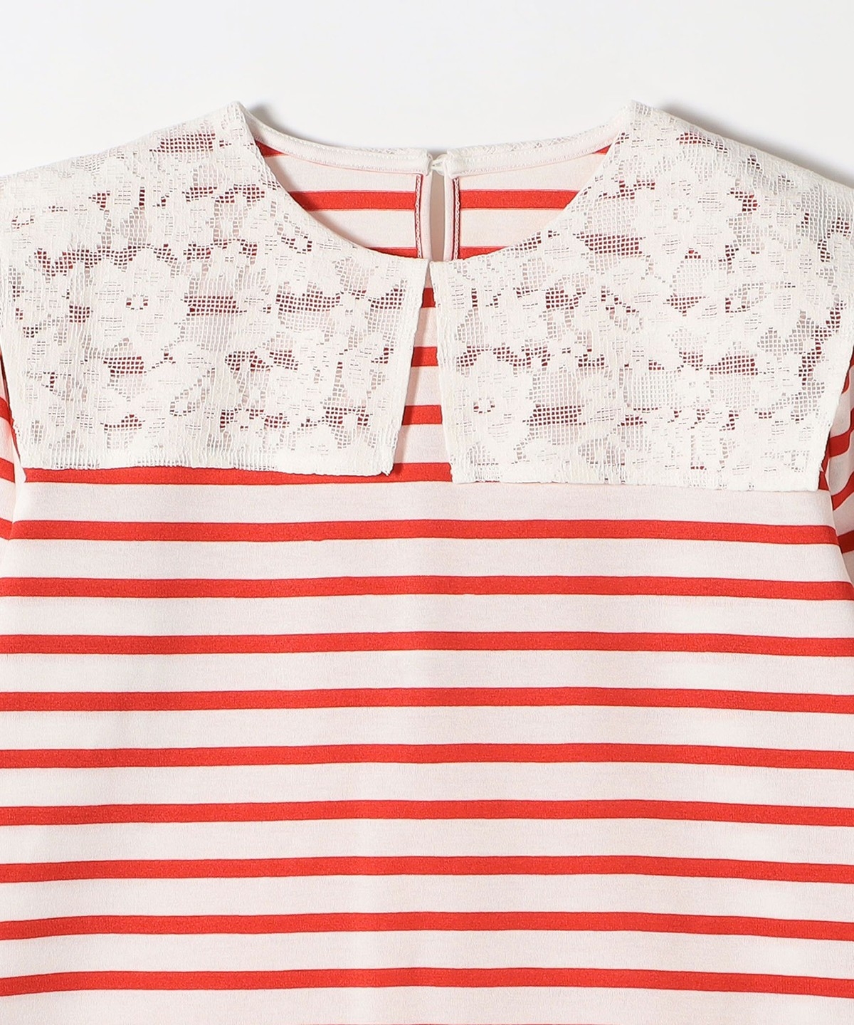 マリンボーダーにレースのセーラーカラーをあしらった、存在感のあるロンT。