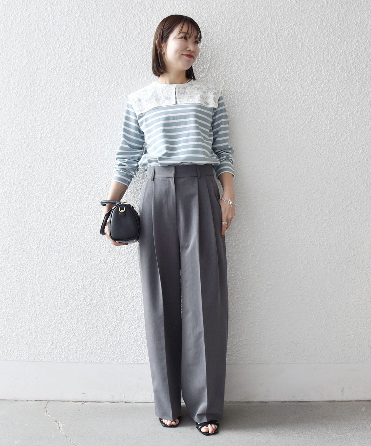 セーラーカラーデザインながら、ボディはシンプルなカットソー仕様にすることで甘さを程よく抑えたバランスに。