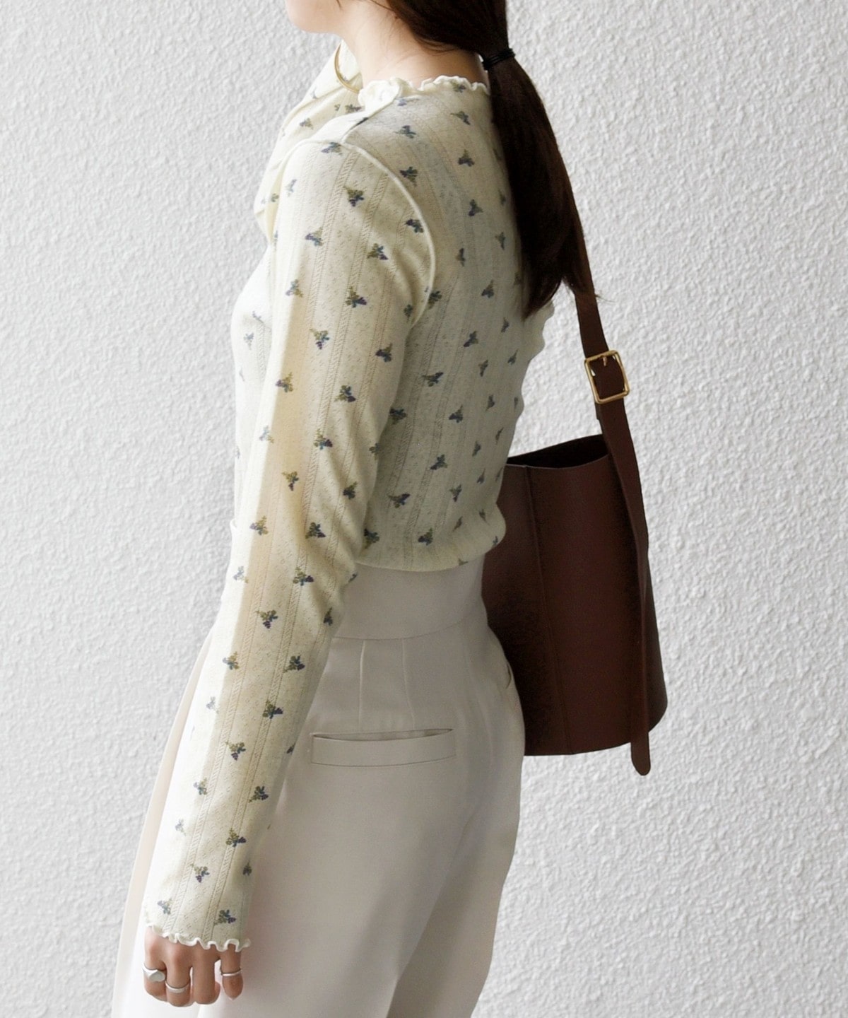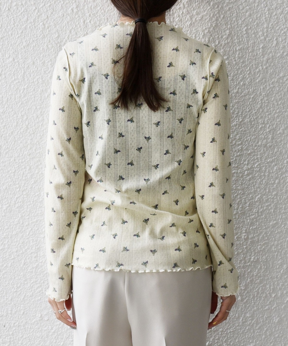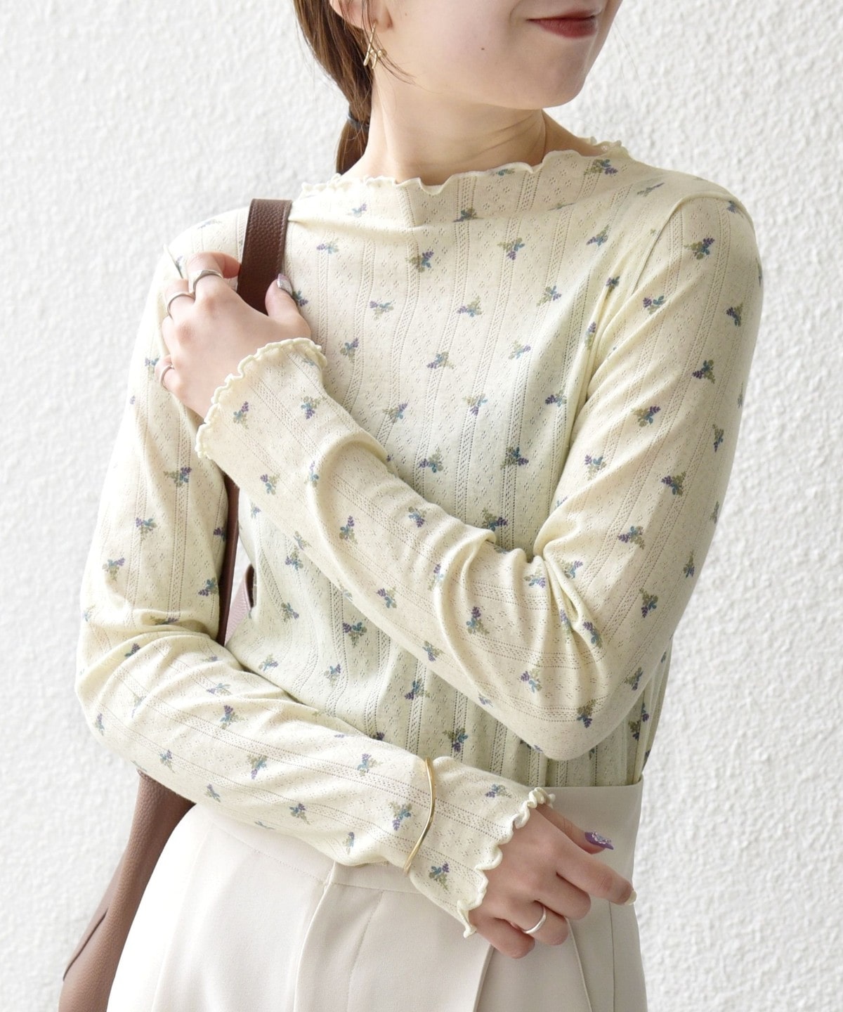 《予約》SHIPS any:〈洗濯機可能〉フラワー プリント ボトルネック ロングスリーブ TEE