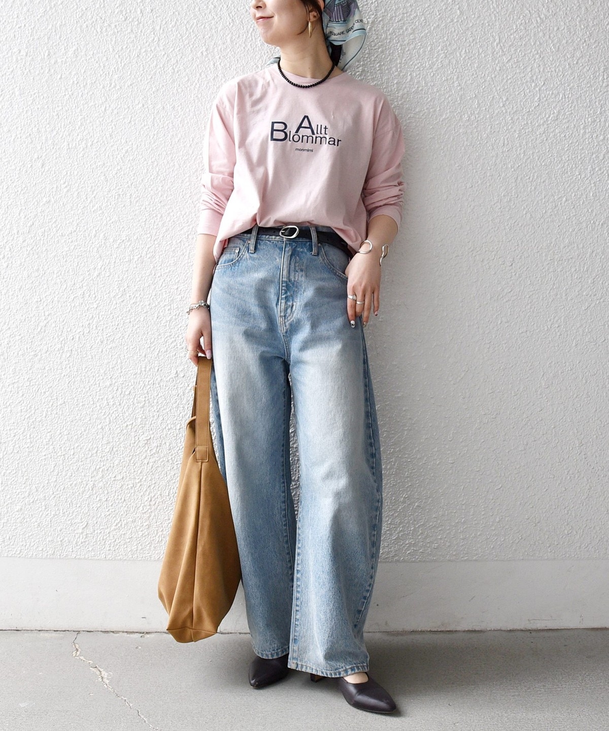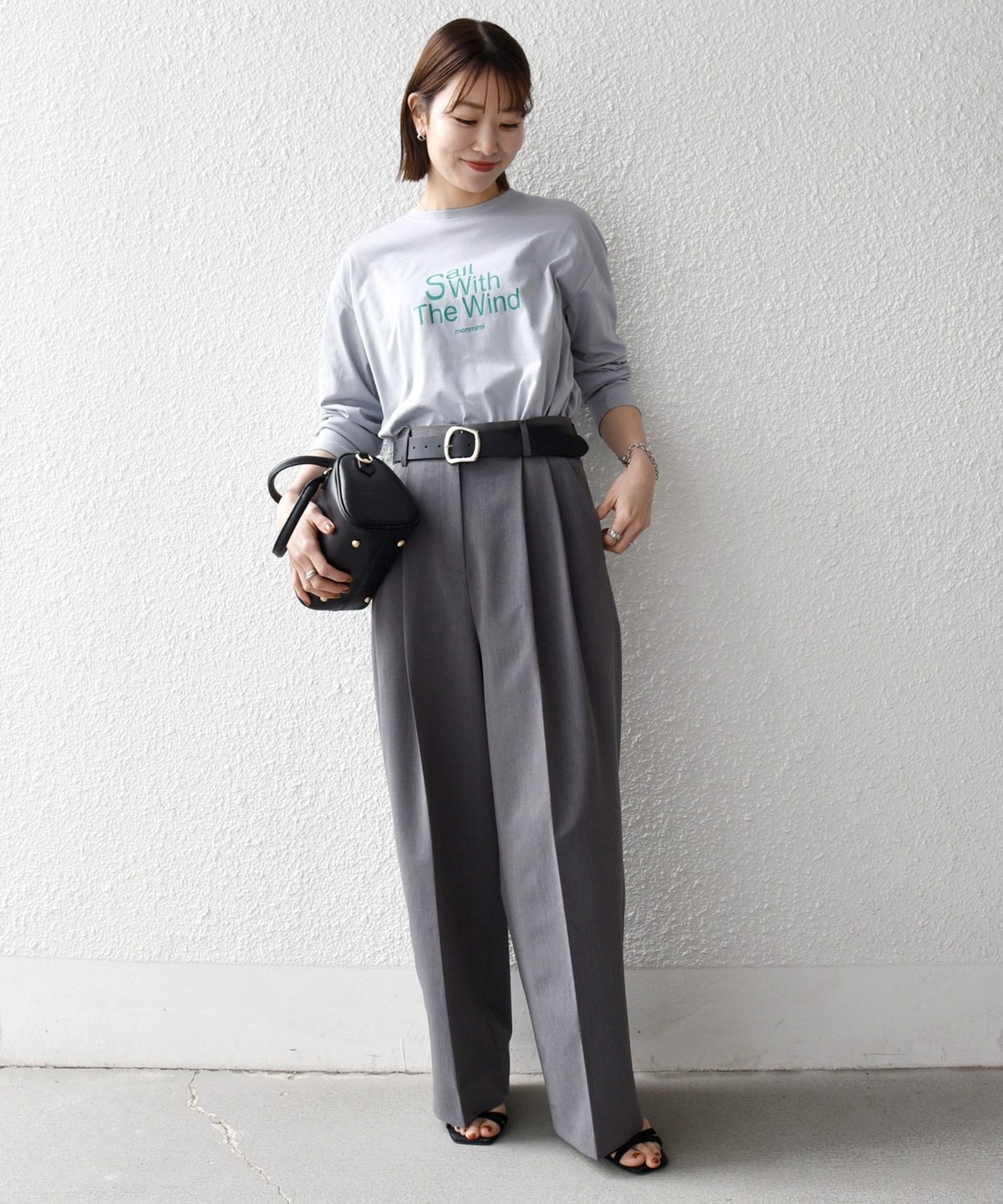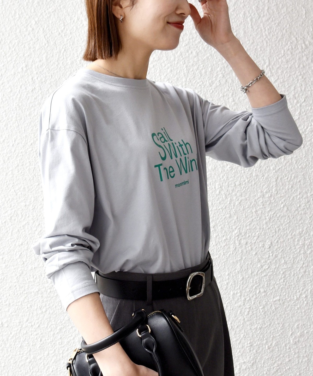 程よい厚さのアイテムなので、タックインをしたり、カーディガンやジャケットの中にも着ていただきやすいです。