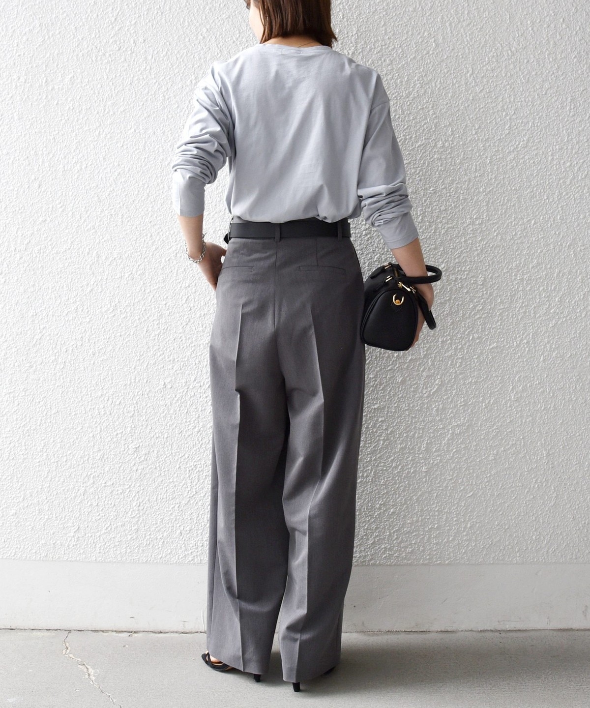 ヒップに少しかかる丈感なので、すっきりとしたパンツと合わせても◎