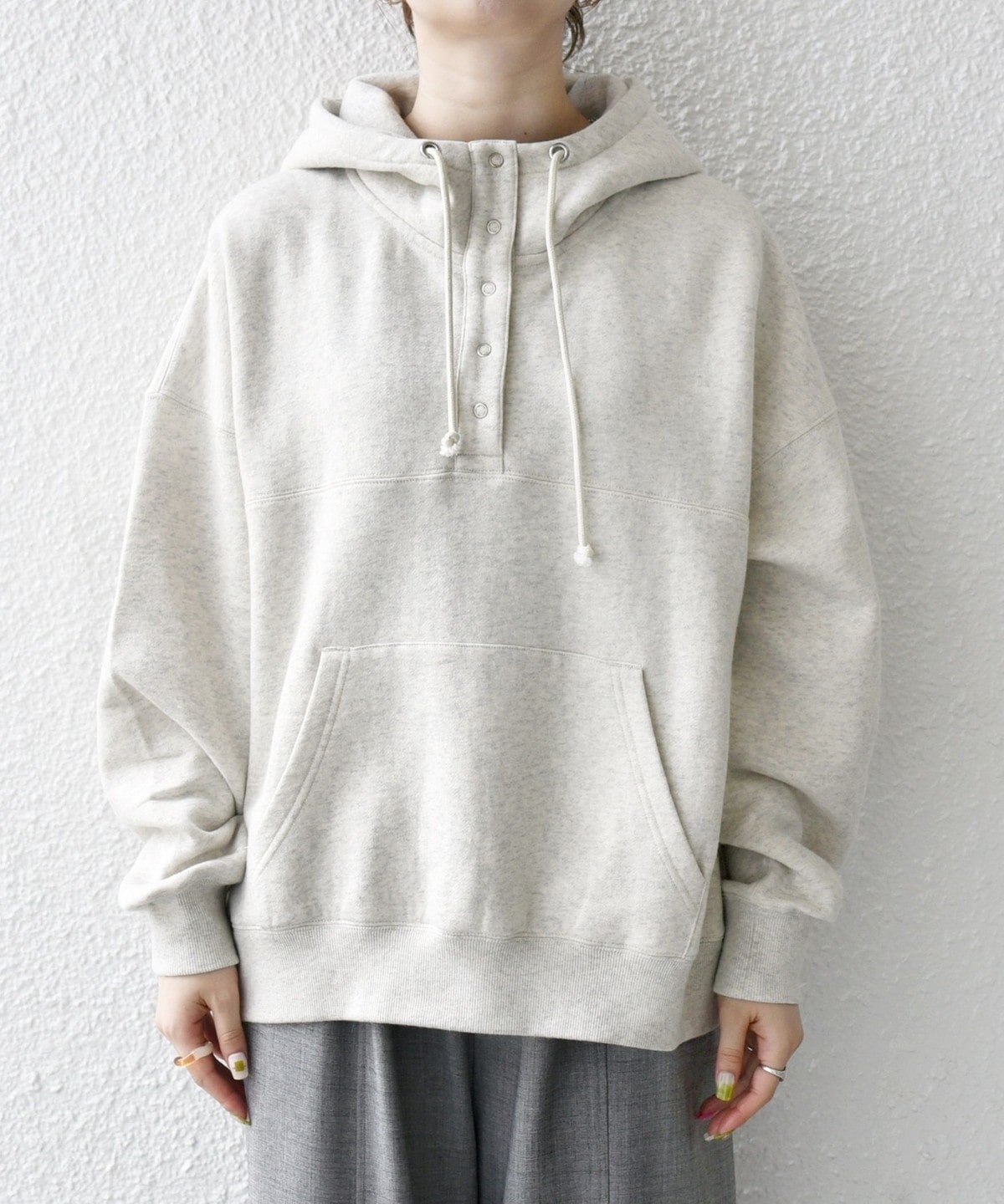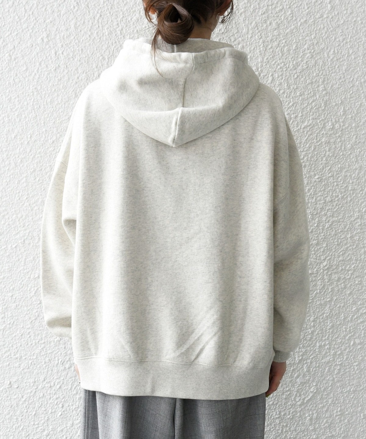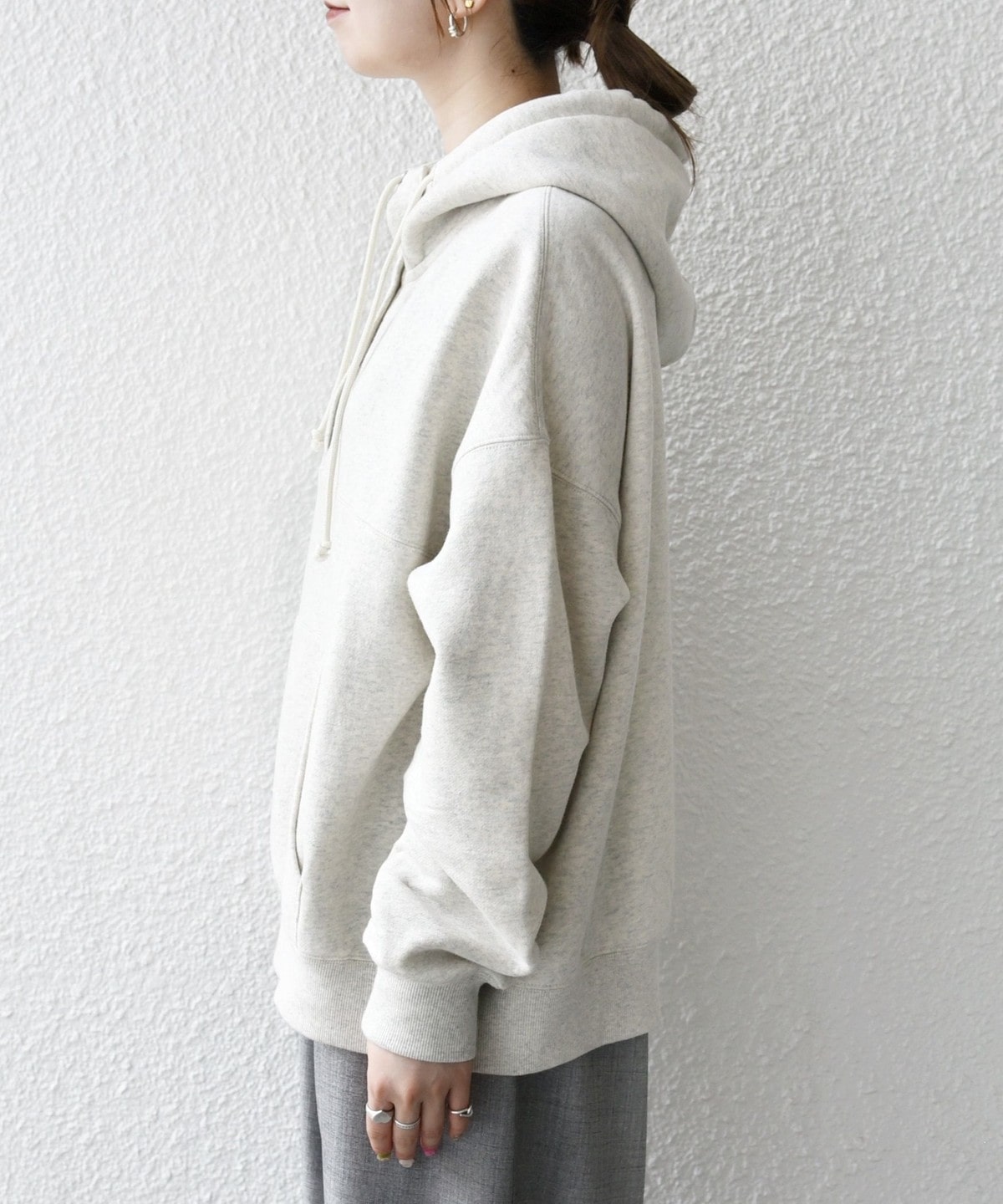 ゆったりとしたオーバーサイズのシルエットと、ソフトな肌触りが魅力のスウェットフーディー。