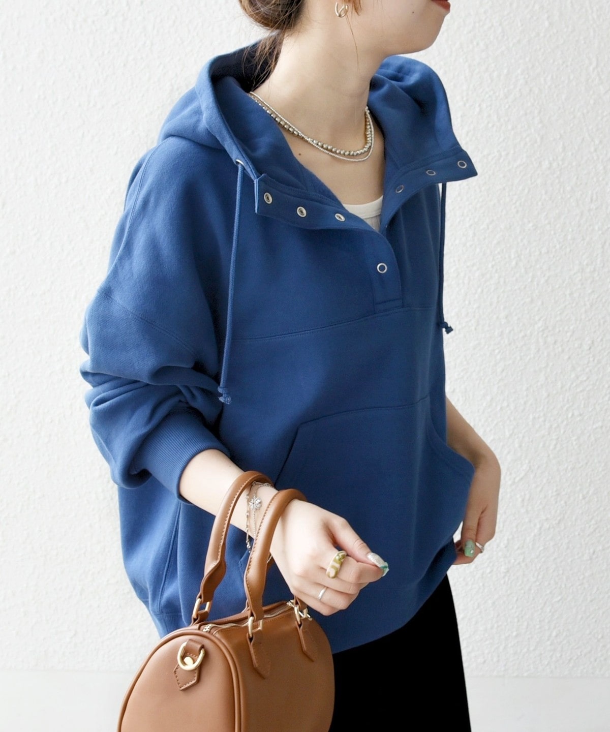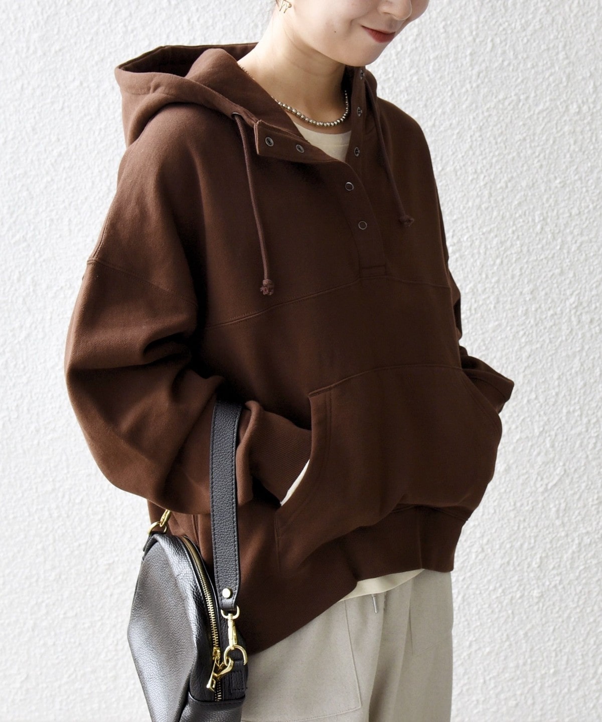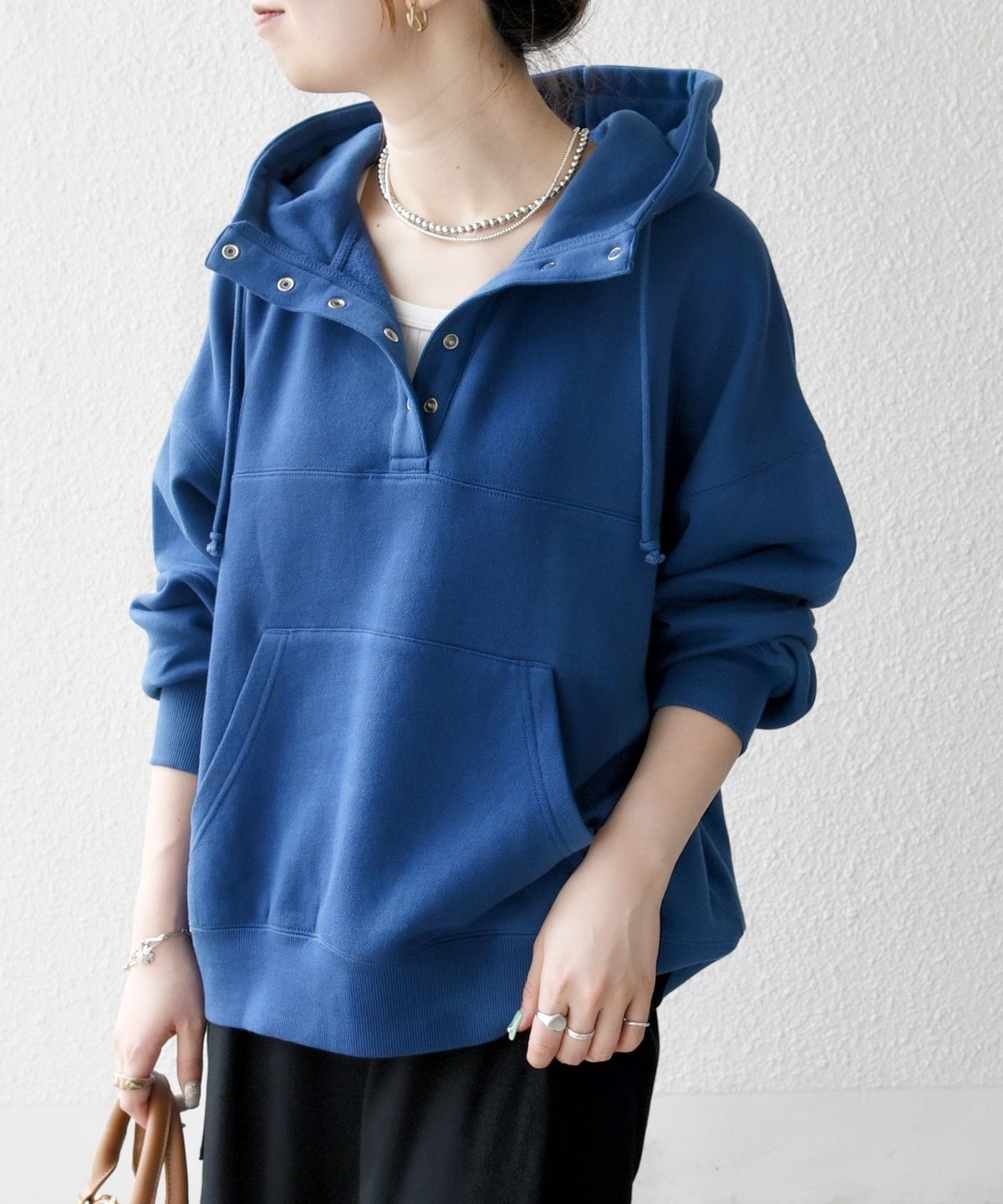 ゆったりとしたオーバーサイズのシルエットと、ソフトな肌触りが魅力のスウェットフーディー。