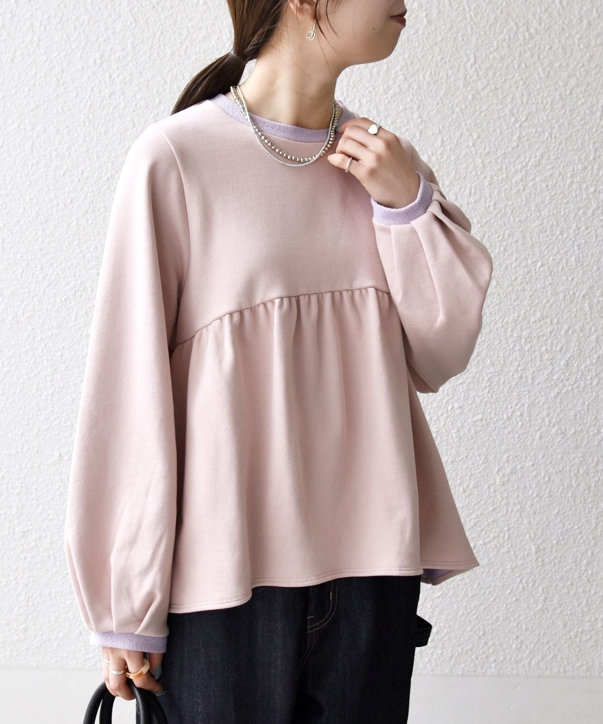 1. 《予約》SHIPS any:〈洗濯機可能〉裏毛 バイカラー ペプラム スウェット プルオーバー ピンク