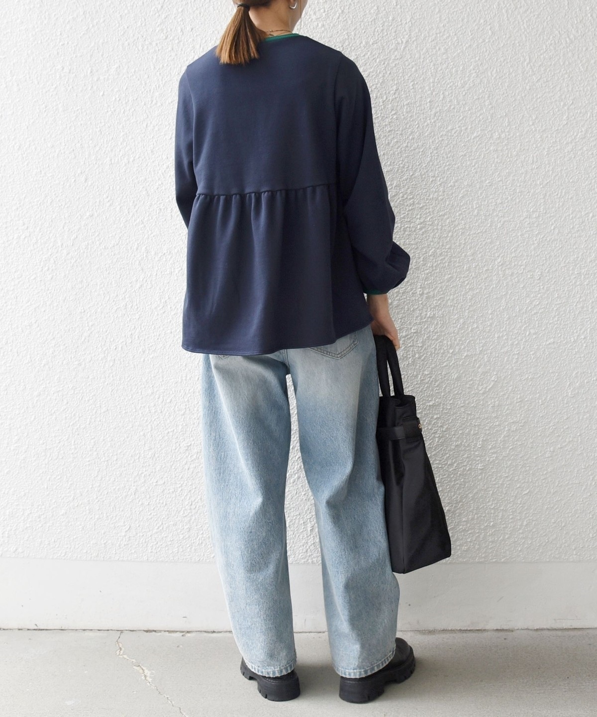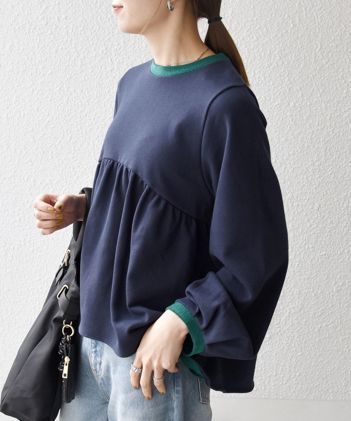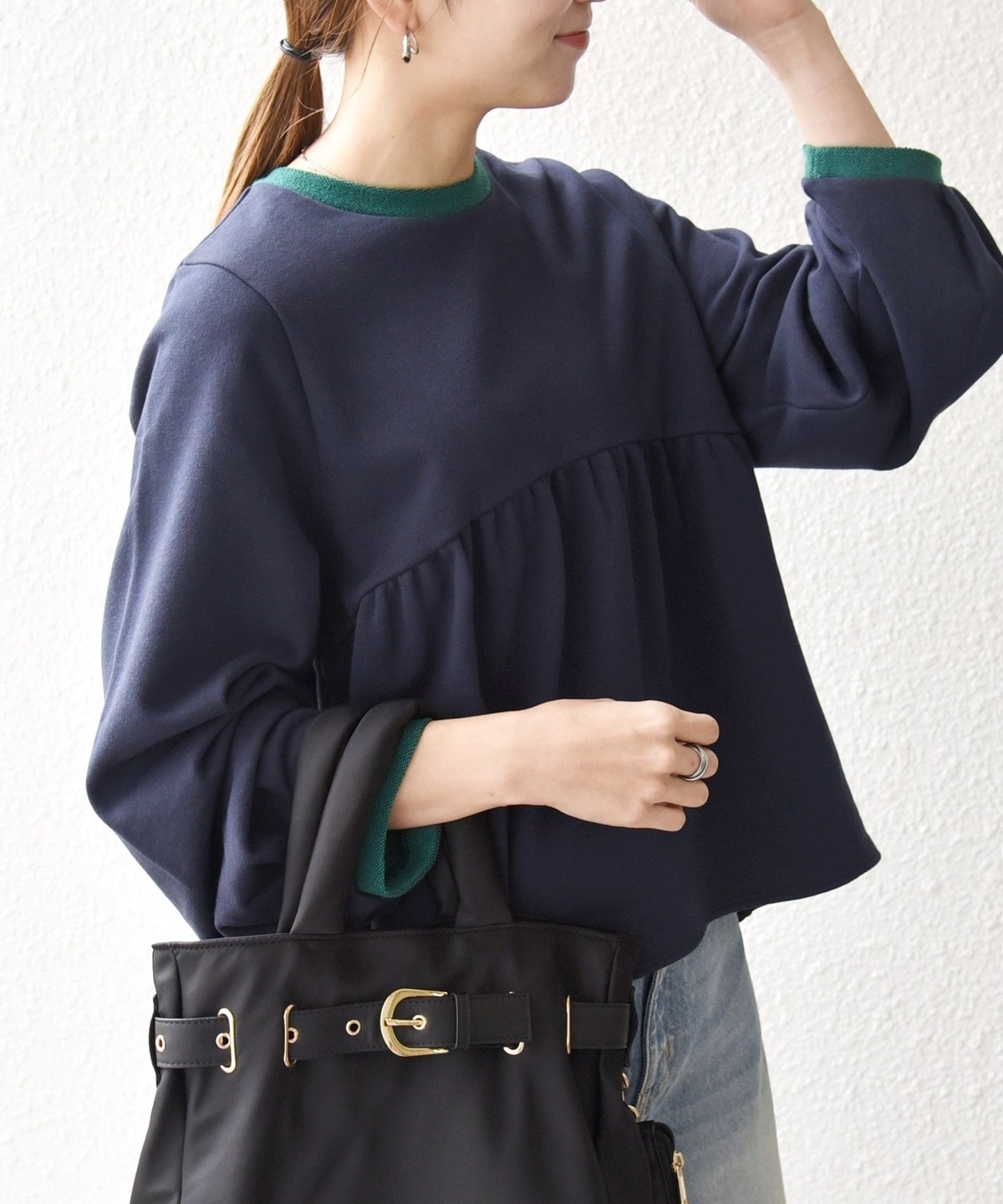 23. 《予約》SHIPS any:〈洗濯機可能〉裏毛 バイカラー ペプラム スウェット プルオーバー