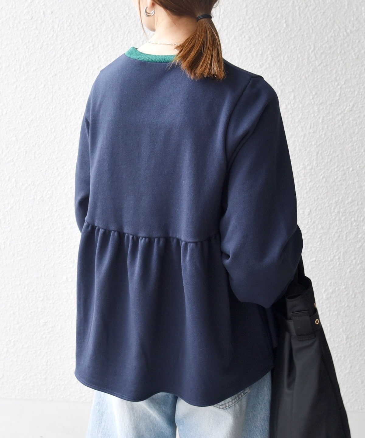 26. 《予約》SHIPS any:〈洗濯機可能〉裏毛 バイカラー ペプラム スウェット プルオーバー