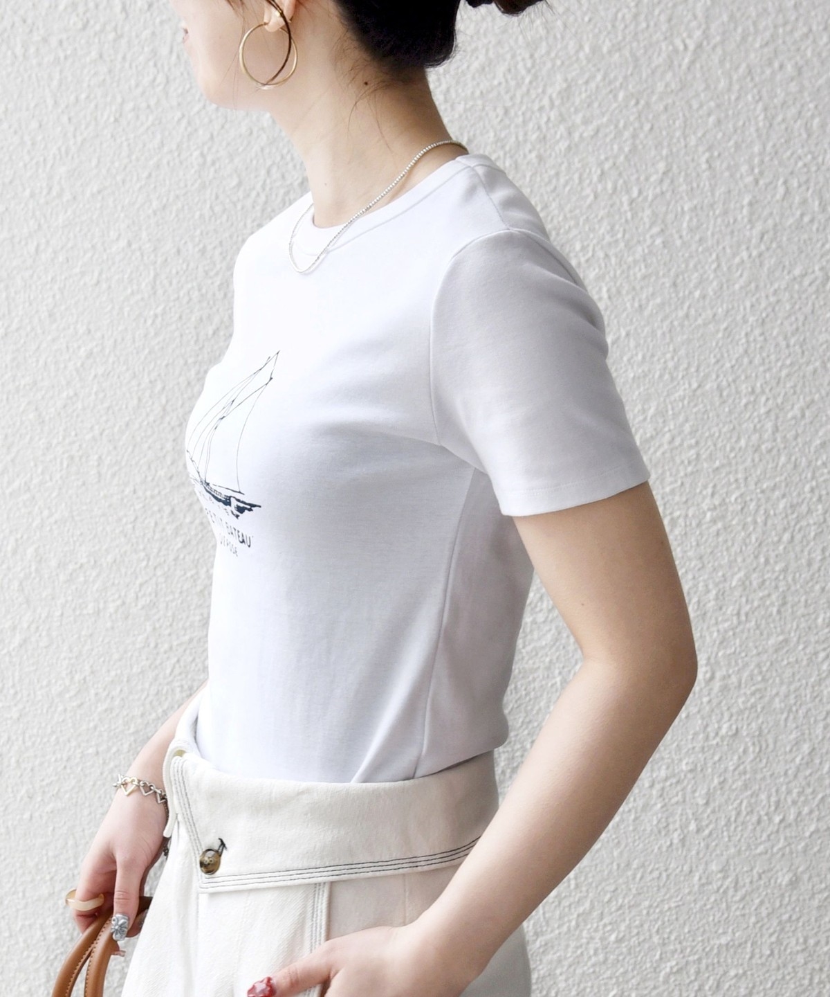 今季トレンドのマリン要素を取り入れた、ヨットプリントの別注デザイン。