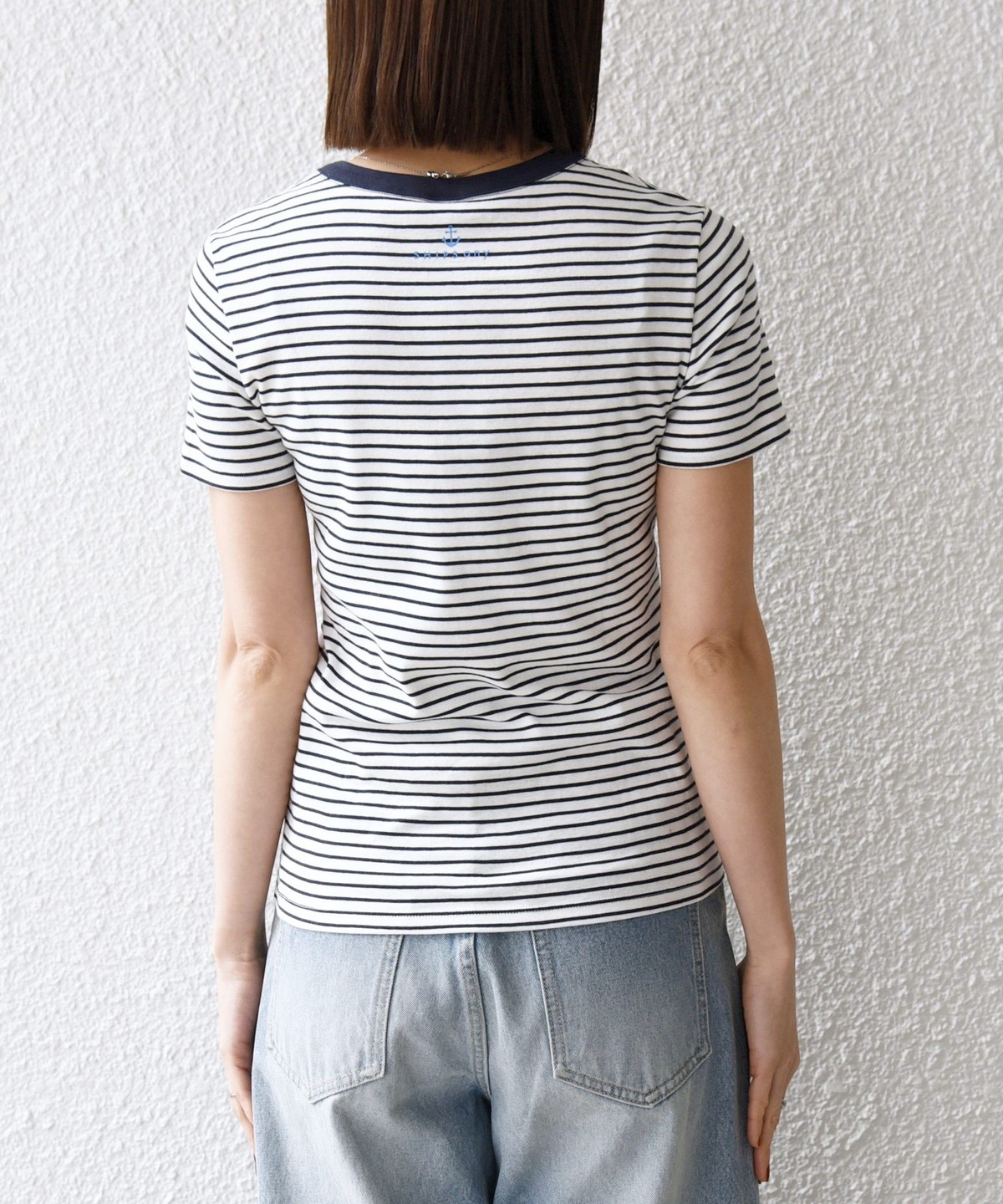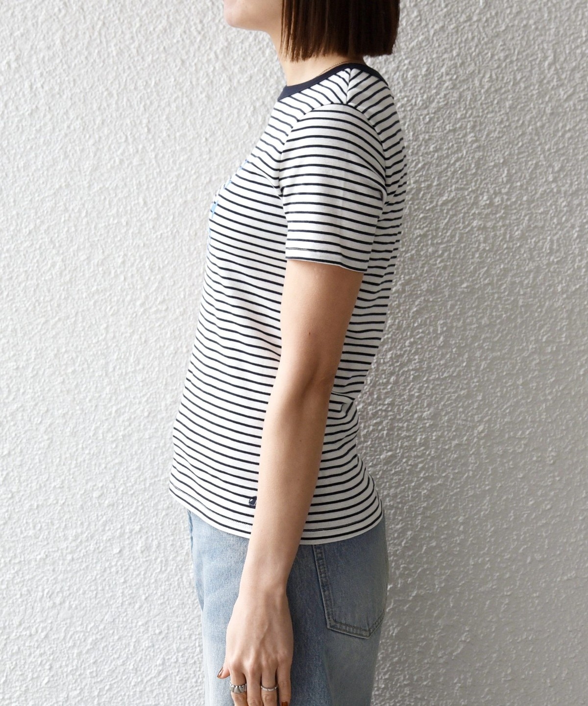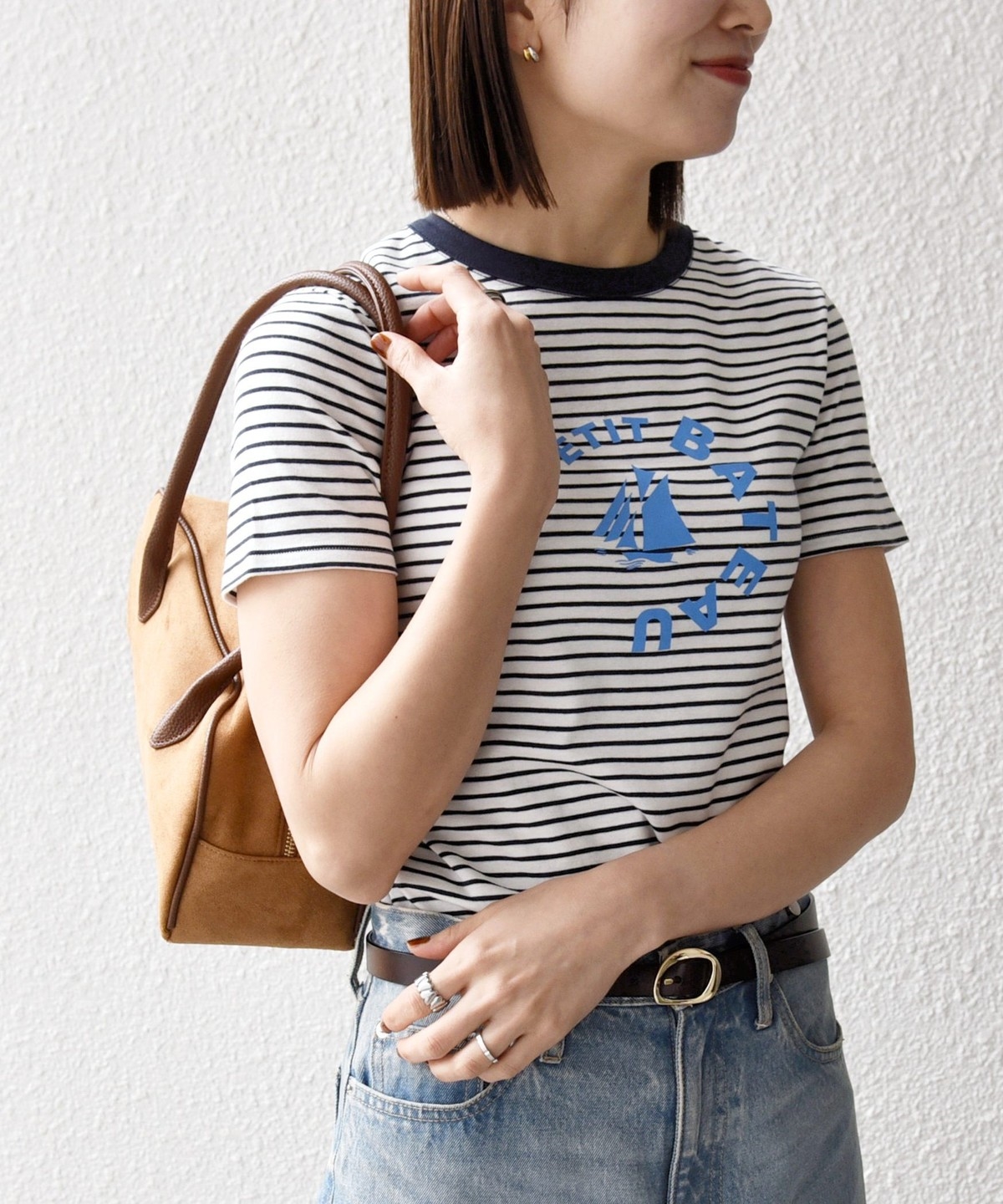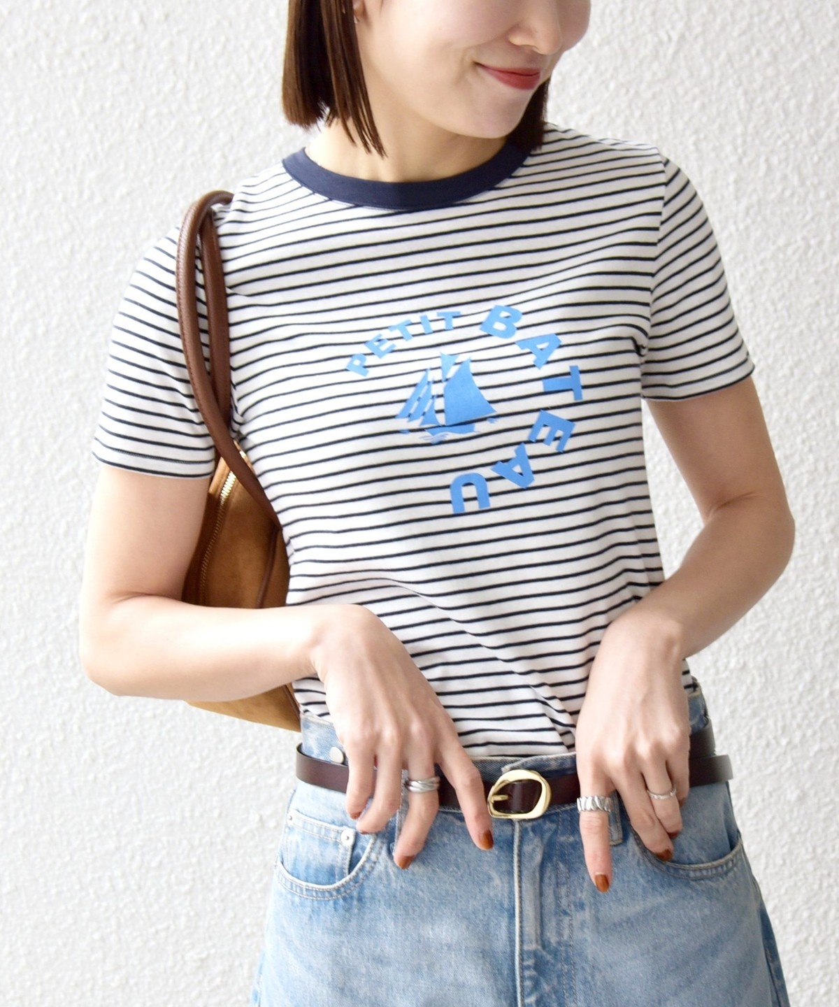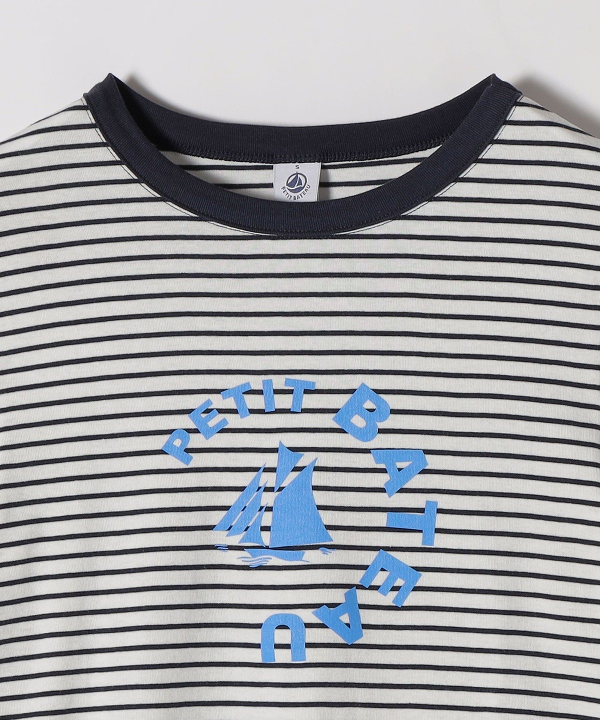 《予約》【SHIPS any別注】PETIT BATEAU: ロゴ プリント コンパクト ボーダー TEE 26SS