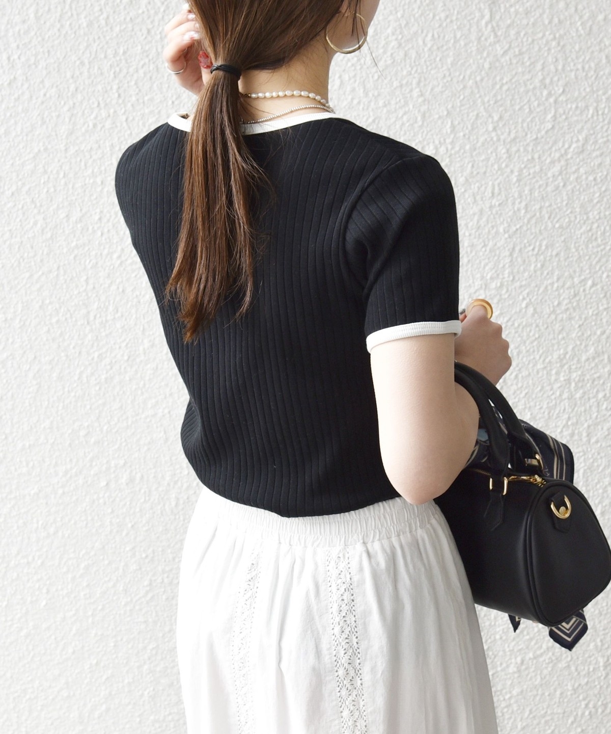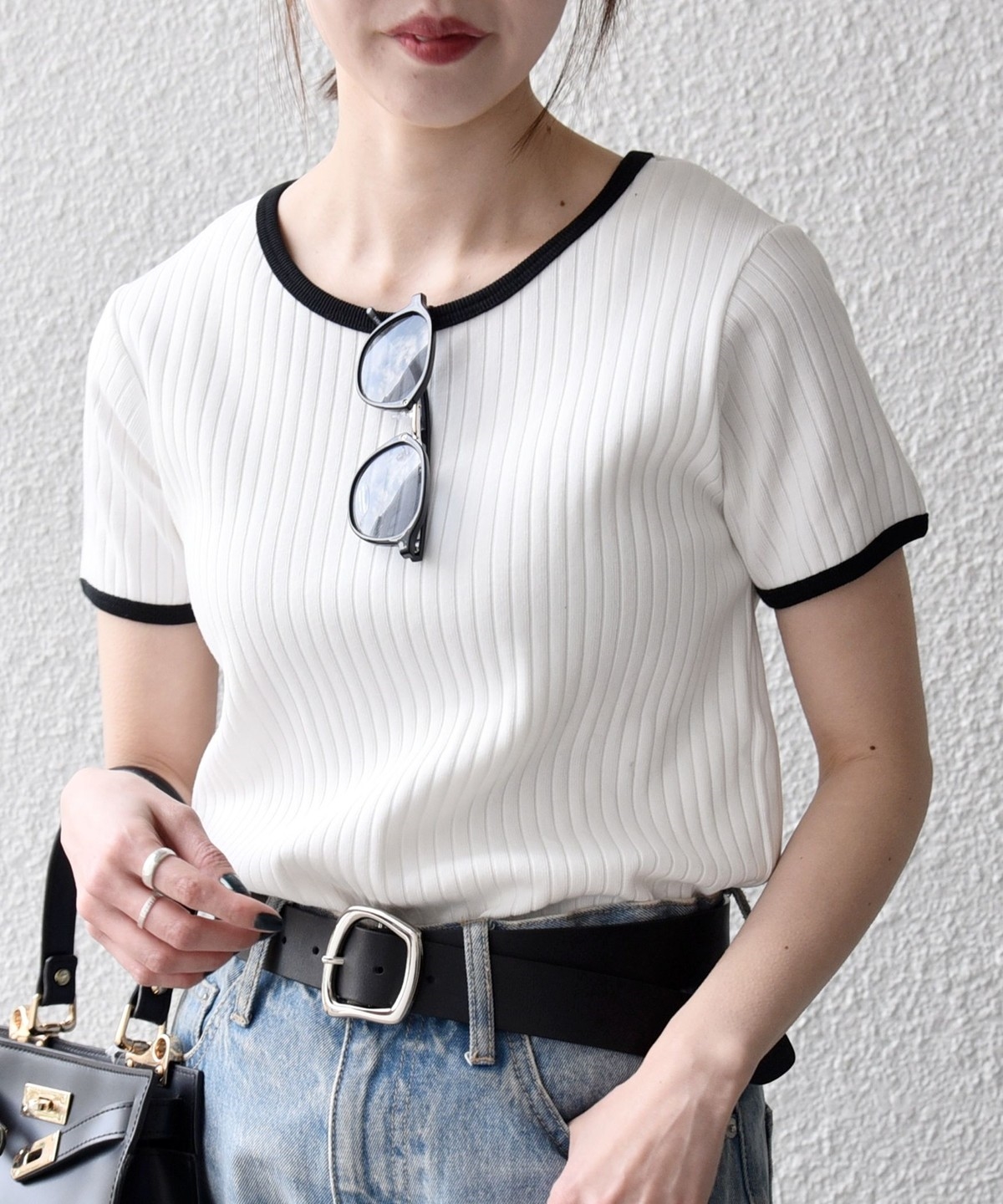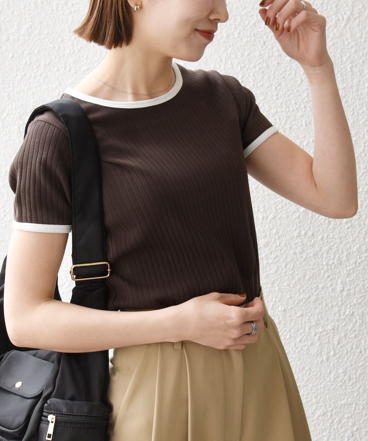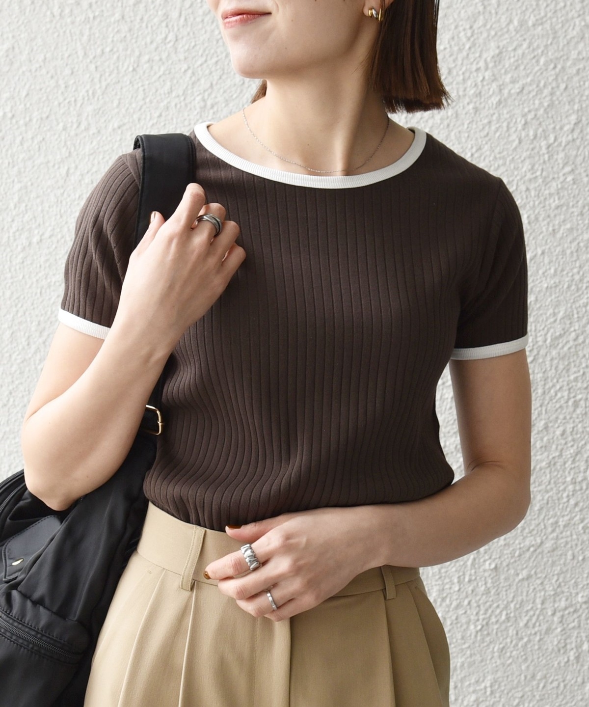ミニマルなシルエットながらフィットしすぎず、薄着の季節も一枚で使いやすいアイテムです。
