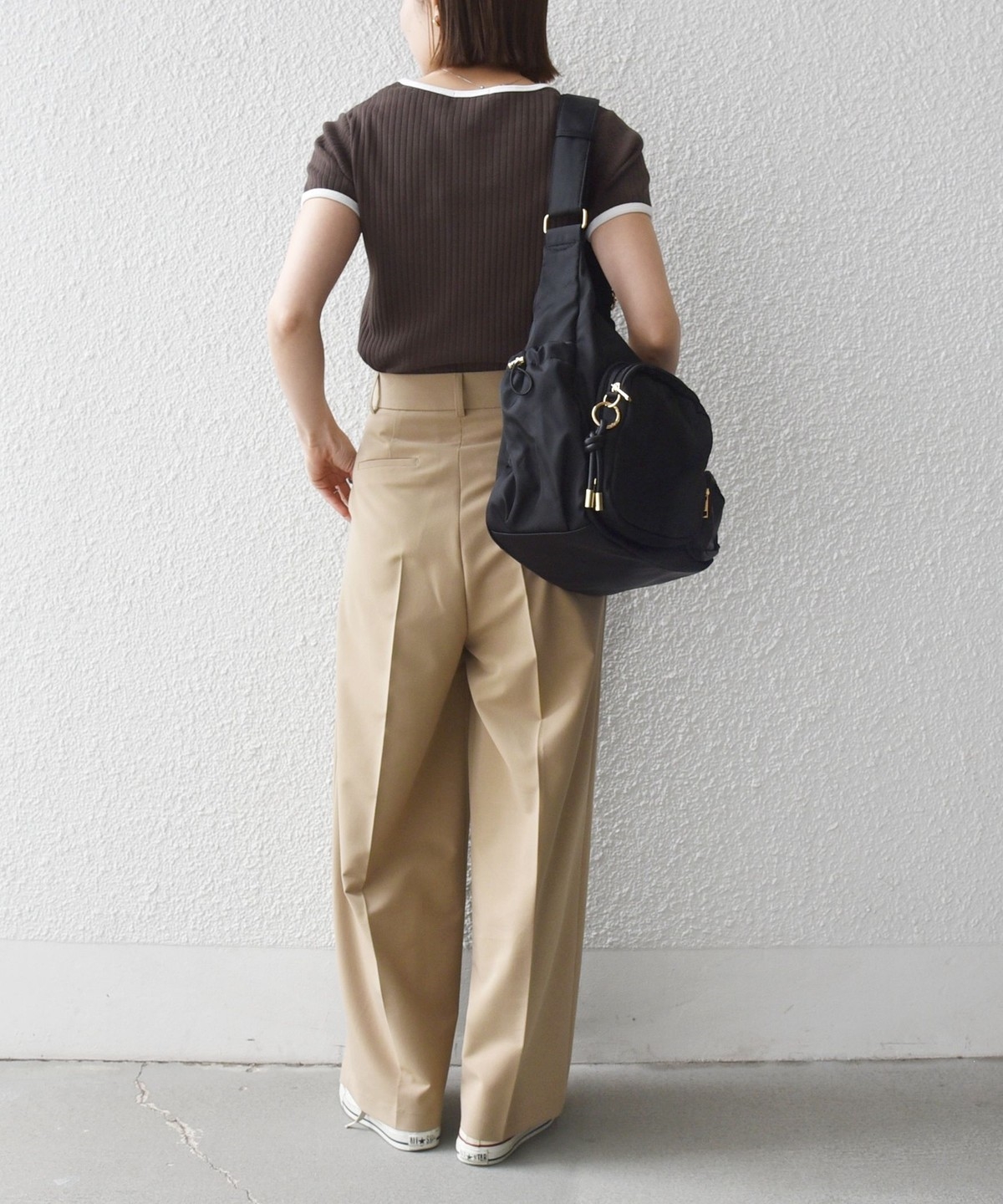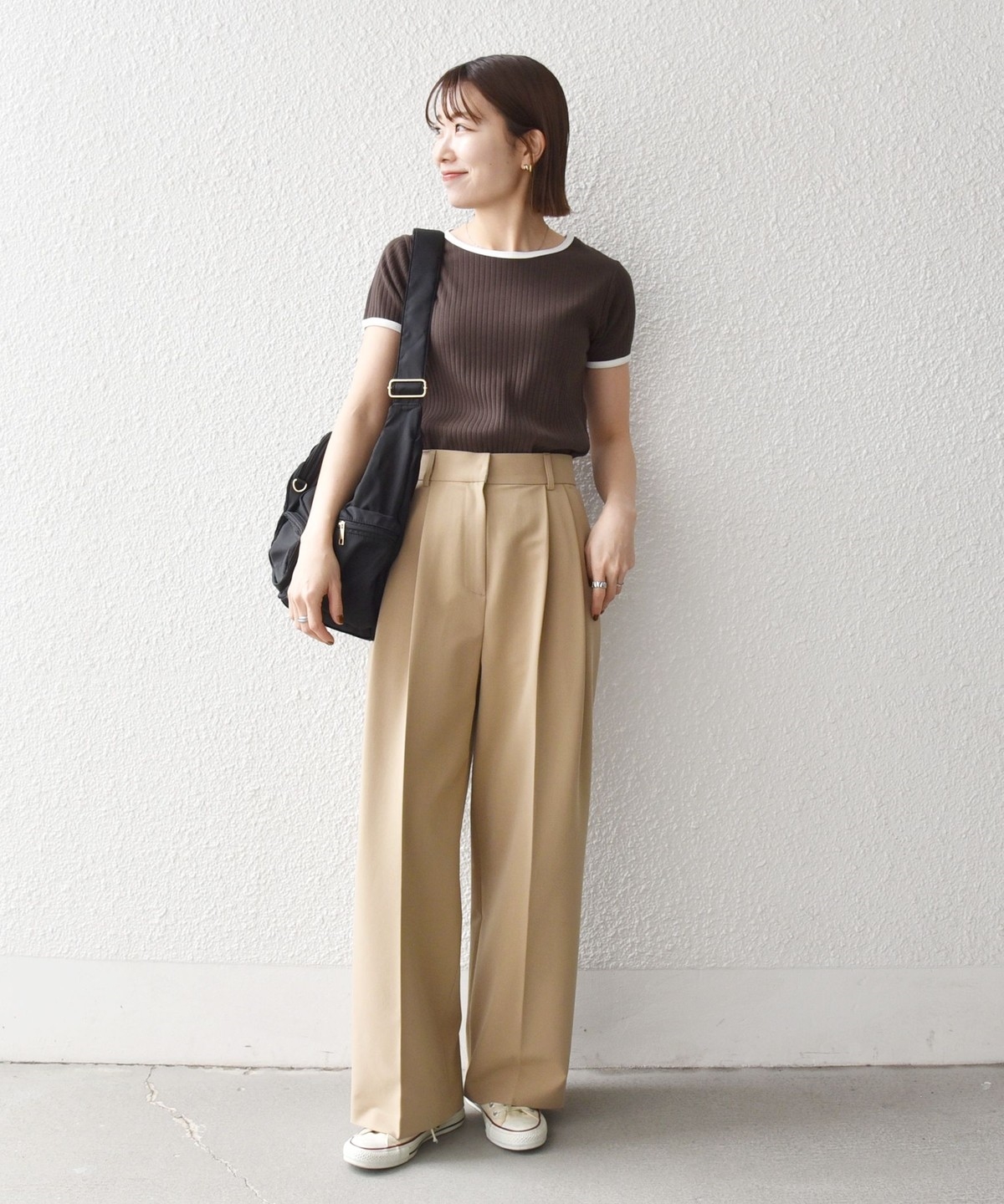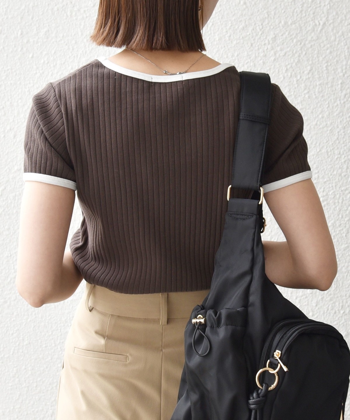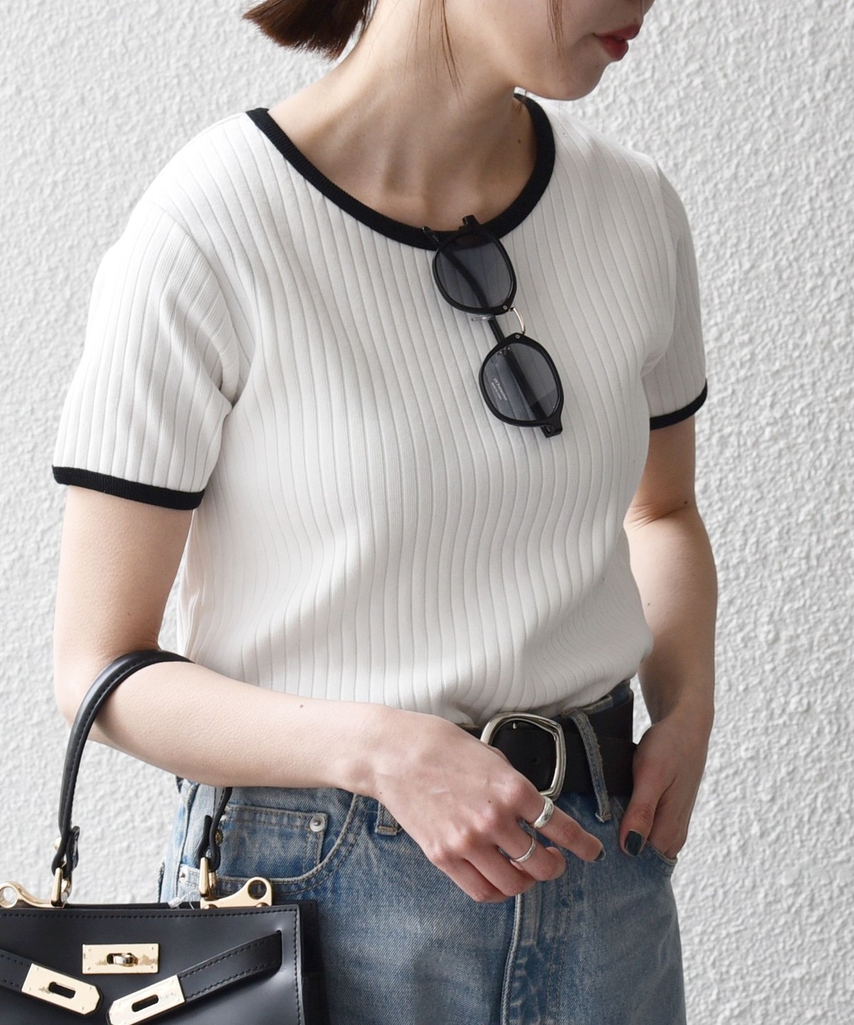 ミニマルなシルエットながらフィットしすぎず、薄着の季節も一枚で使いやすいアイテムです。