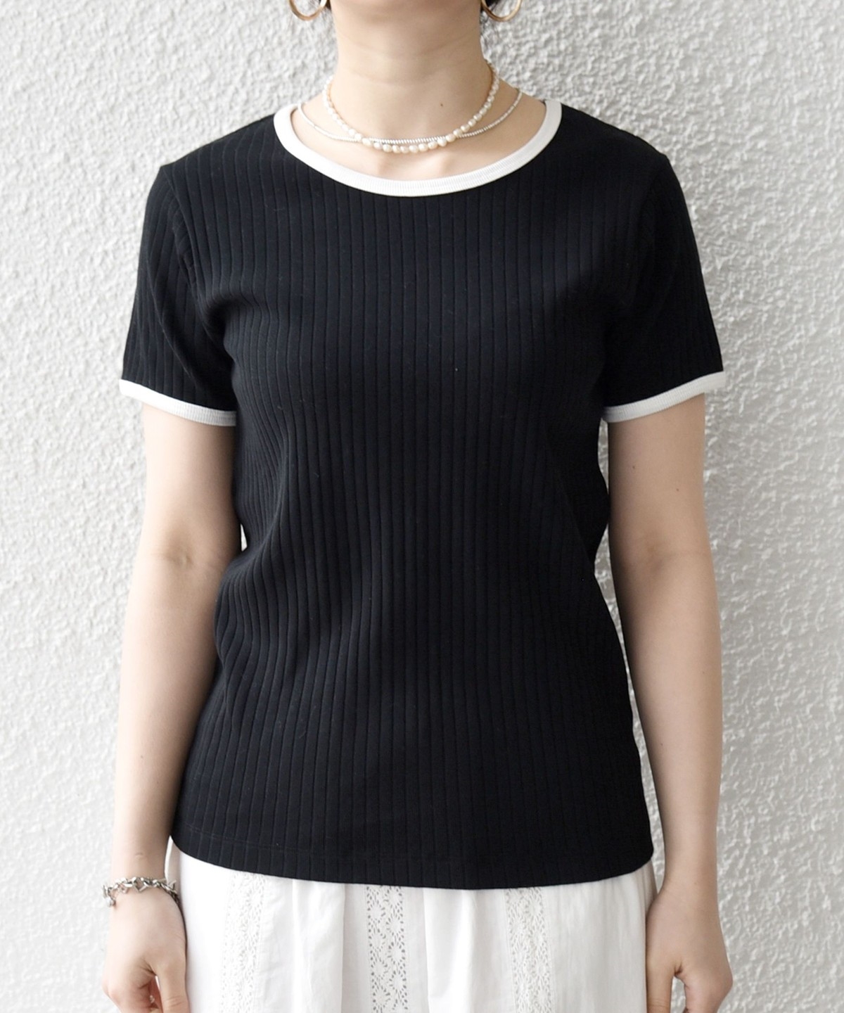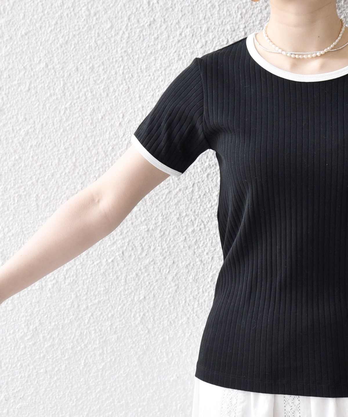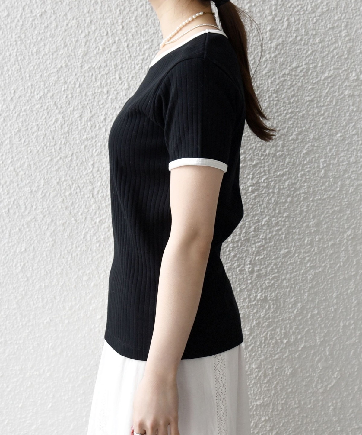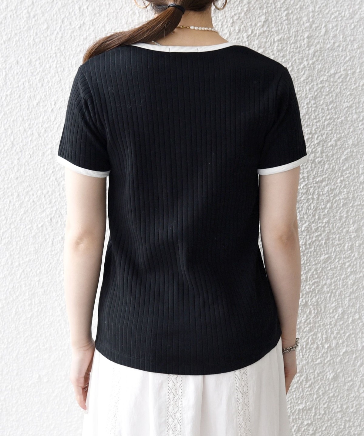 《予約》SHIPS any:〈洗濯機可能〉テレコ リブ バイカラー ショートスリーブ TEE