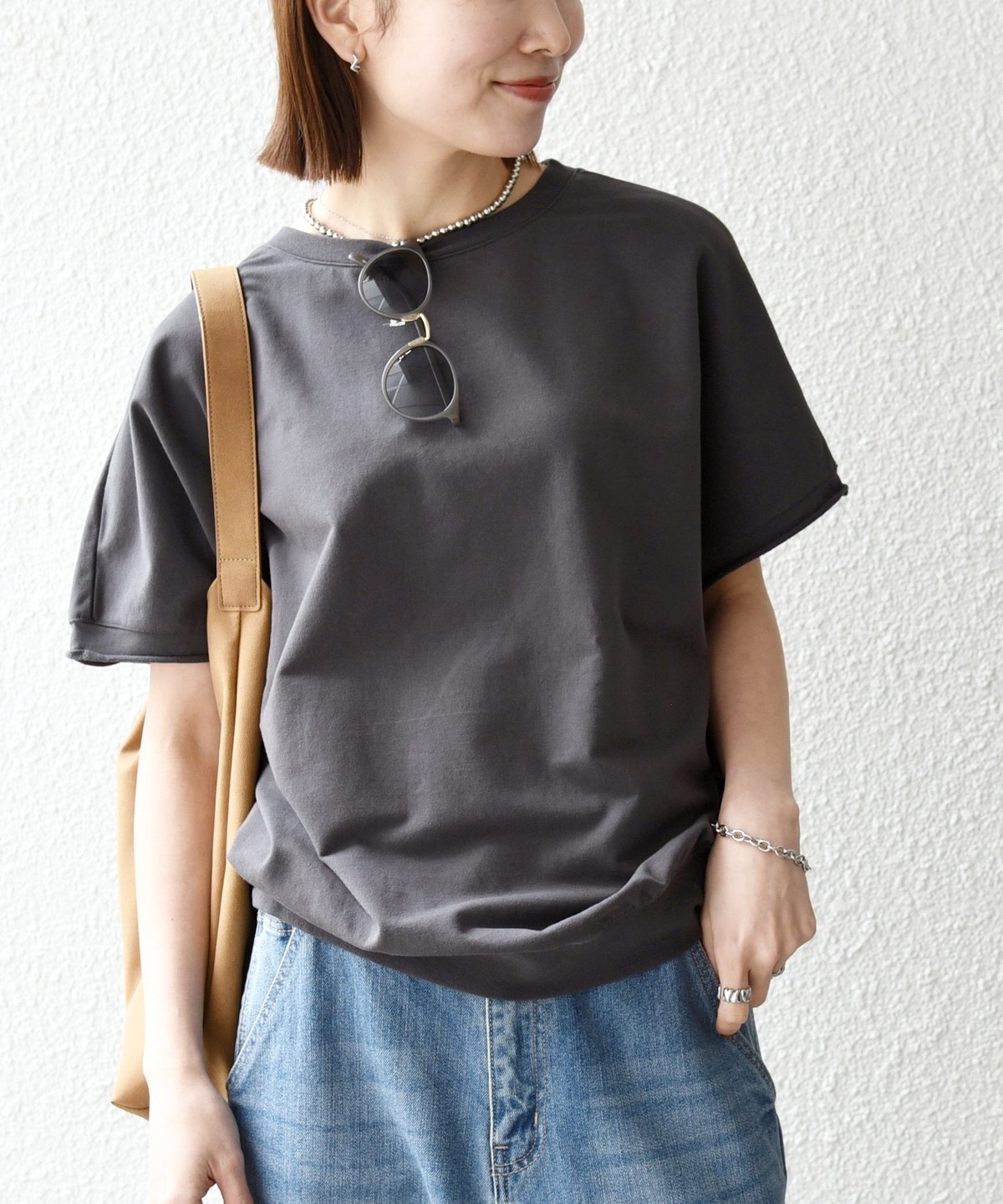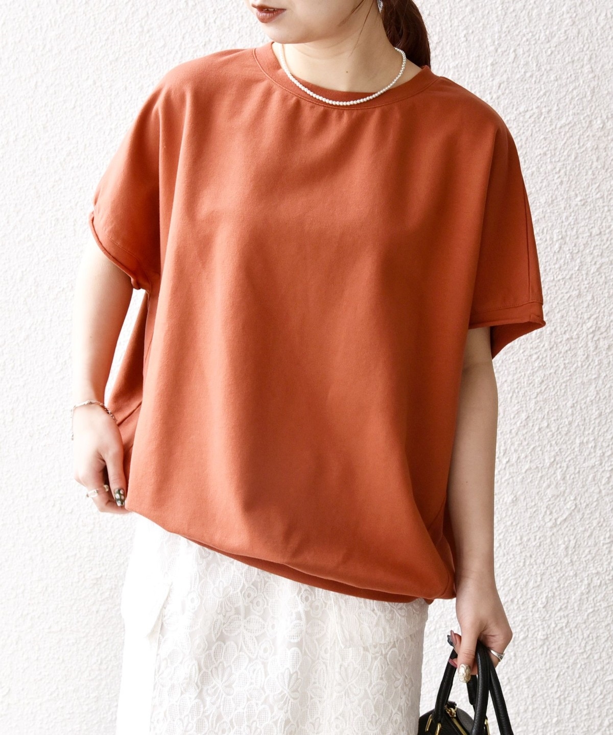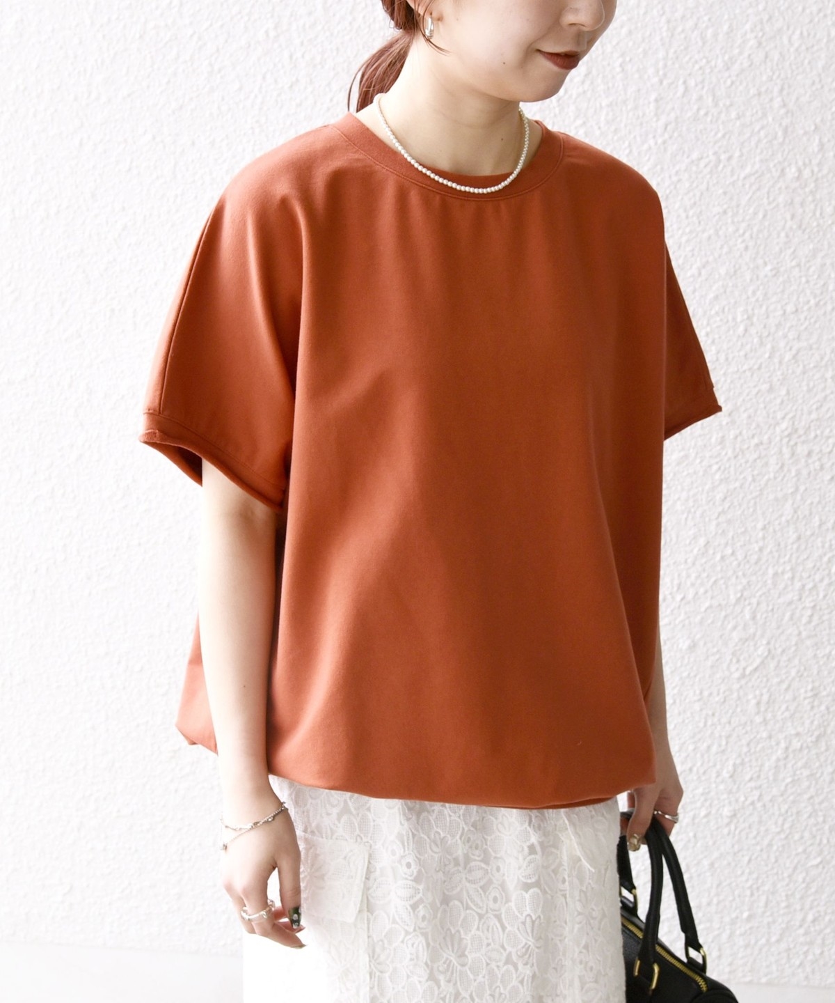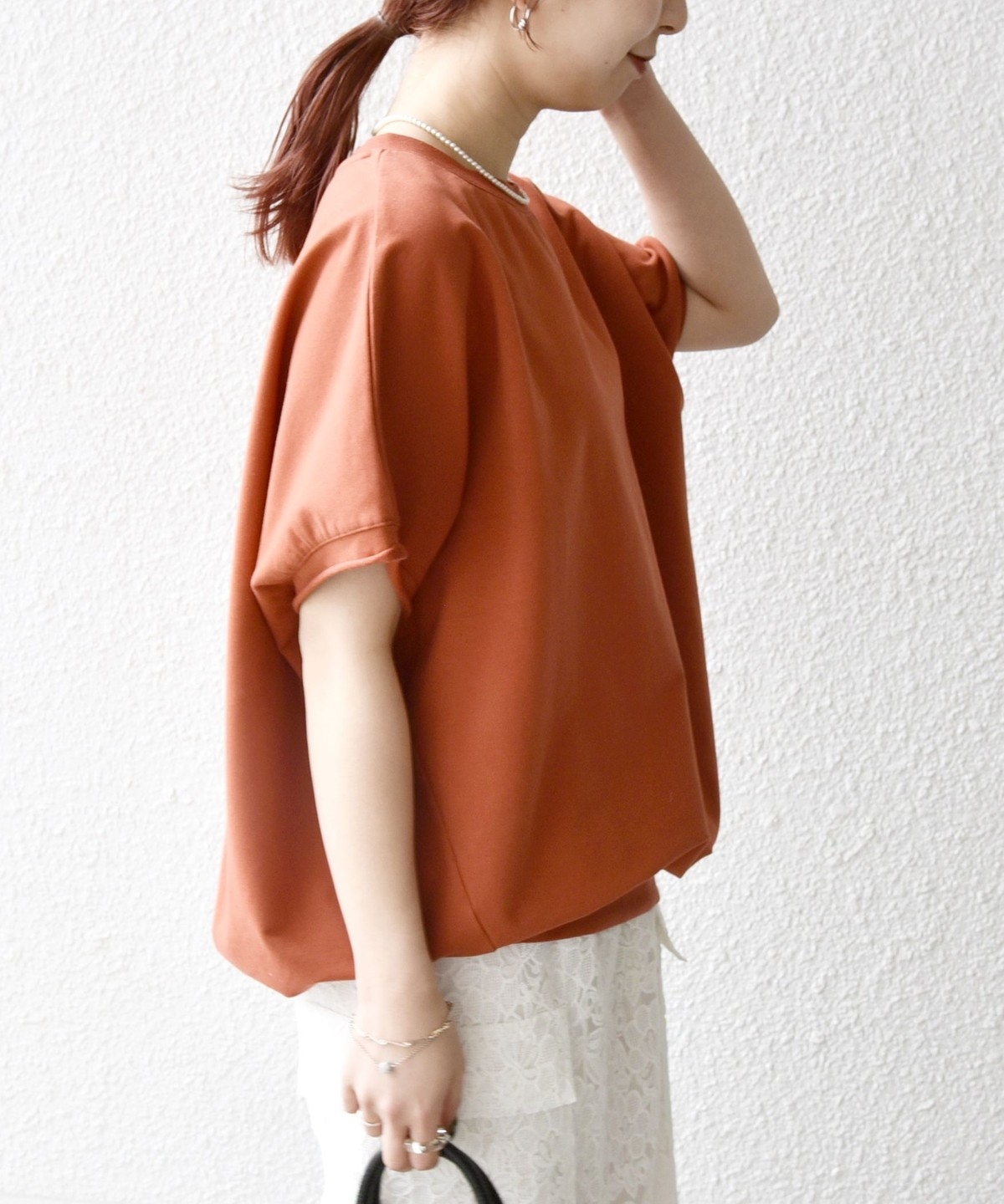 丸みのあるコクーンフォルムが可愛い半袖のカットソー。